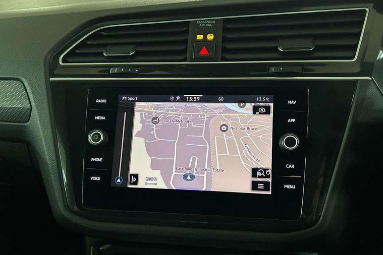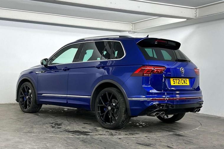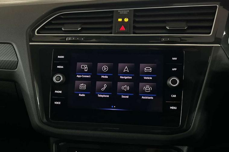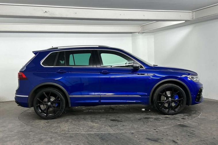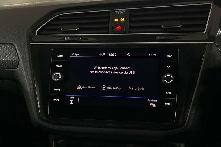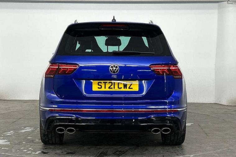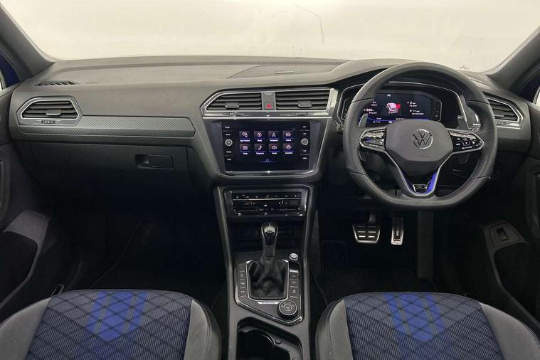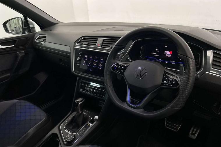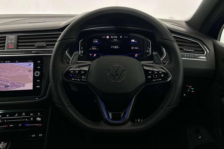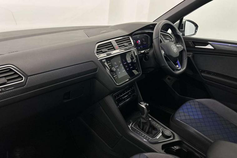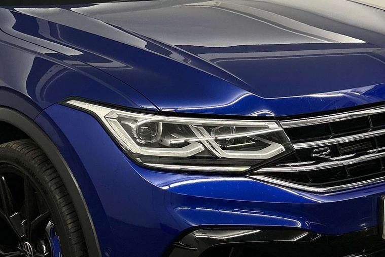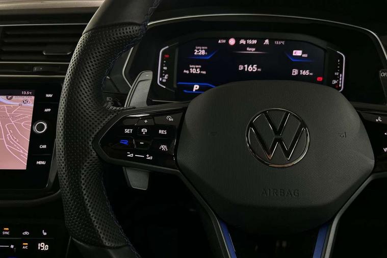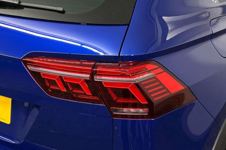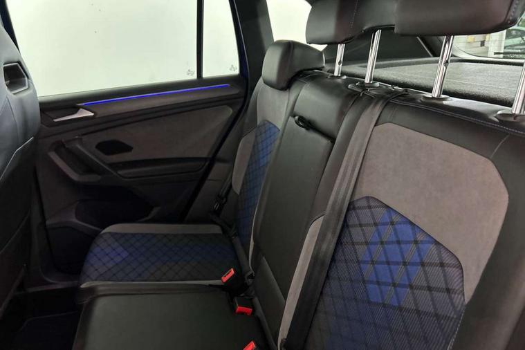 Adaptive cruise control ACC stop and go including speed limiter, App-Connect incl. App-Connect Wireless for Apple CarPlay and Android Auto, Bluetooth phone integration system, Digital Cockpit Pro - Active info display, Distance control assist, Driver alert system, Driver profile selection, Dynamic road sign display, eCall emergency call system, Electromechanical speed sensitive power steering, Keyless entry with full electric tailgate operation, Lane keeping system Lane Assist, Lights on warning, Multifunction front facing camera, Outside temperature display, Premium multifunction display with multi colour display, Service interval indicator, Start/stop system with regenerative braking, Tailgate/trunk lid unlocking from outside, Warning sound and light for doors and tailgate open, ACC - Adaptive chassis contol with adaptive dampers, Battery regeneration during braking, XDS electronic differential lock for improved traction and handling, 2 USB-C ports in the front, 1 USB-C charging socket on the center console in the rear, Diversity antenna for FM reception, Radio, SD card slot, Simultaneous pairing of 2 compatible mobile devices, SMS functionality - read, compose and send SMS messages using touch-screen display, Title and cover art display, Auto dimming interior rear view mirror, Automatic headlight control system, Body colour door handles, Chrome matt mirror covers, Chrome moldings on the side windows, Coming/leaving home lighting function, Dynamic headlight range control, Front and rear electric windows, Heated rear window, High level 3rd brake light, IQ light-Adv high beam, Dynamic light assist for LED matrix headlamp+LED separate DRL+DCL, dark red rear LED tech, Poor weather light+ cornering light, Laminated safety glass windshield, heat and sound insulating, LED rear number plate lights, License plate carrier in front and rear, Poor weather light and cornering light, Power adjustable, folding and heated door mirrors with surround lighting, front passenger exterior mirror lowering function, Privacy glass for rear side windows and rear window, R-Logo light projection, R-Logo on radiator grille with side panels and rear, R-specific diffuser, painted black with cut out for trailer hitch, R-Specific front and rear bumpers, Rain sensor windscreen wipers, Rear fog lamp, Rear spoiler in R style, Rear windscreen washer and wiper with interval delay, Side and rear windows in heat insulating glass, Silver anodised roof rails, Trailer Stability Programme, Windscreen wipers/ intermittent wipe + 4 position delay, 12V outlet in center console rear and in luggage compartment, 2 cup holders in front, 2 LED front reading lights, 2 LED rear reading lights, 3 rear headrests, 4 load lashing points, 40:20:40 split folding rear seats, Air Care Climatronic 3 zone automatic climate control with enhanced air filter and controls in the rear, Backrest release for left front seat, Black headlining, Door and side trim panel in foam film, insert in leatherette, Floor mats with R-Logo and stitching, Front footwell illumination, Front seats head restraints (x-adjustment), Height adjustable front seats, Height/reach adjust steering wheel, Instrument lighting white adjustable panel illumination, Interior light with delay, Isofix Preparation 2 Rear child seats, Leather gear knob, Lighting door sill trim at front with R Logo, Lockable cooled glovebox, Luggage compartment lighting, Pedals and footrest in stainless steel, R Performance steering wheel with R button, larger paddle shifters, blue stiching and blue steering wheel clip, R Specific key caps, R-specific sport skin with R Logo in active Info dsiplay, R-taster (direct selection of race mode/ flap control), Rear bench seat asymetrically split folding, longitudinally movable and folding with load-through hatch and center armrest, Remote unlocking for rear seat backrest, Removable luggage cover, Safety optimised front head restraints, Sliding/reclining rear seats, Standard rear seat release, Storage compartment in driver's door, Storage compartment in passenger's door, Storage compartment in rear doors, Storage compartments in luggage area left and right, Storage tray on dashboard, Sun visors with illuminated vanity mirrors, Top front comfort seats, Top sports seats integrated headrest, blue R-Logo in front seats, seat centre panels and outer rear seats in fabric inner side bolster art Velors, Variable boot floor, height adjustable and removable, Ambience pack - Tiguan, Driver assistance pack plus - Tiguan, Easy open and close pack with safelock - Tiguan, 3 point seat belt for centre rear seats, 3 point seat belts with seat belt pretensioners for the outer rear seats, Active bonnet, Curtain airbags for front and rear passengers, Driver/Front Passenger airbags, Drivers knee airbag, Electronic parking brake with auto hold, Electronic Stability Control with driver steering recommendation, ABS, ASR, EDL, EDTC and trailer stabilization, Front assist with autonomous emergency braking (for Adaptive Cruise Control ACC up to 130 mph), Front disc brakes, Front passenger airbag deactivation, Front side airbags, Height adjustable front 3 point seatbelts + pretensioners, Hill hold control, Pedestrian monitoring system, Proactive passenger protection system in combination with front assist, Rear disc brakes, Rigid safety cell with front and rear crumple zones, Two tone horn, Warning sound and light for front seat belts if unfastened, Warning triangle, Anti theft alarm system with interior monitoring, backup horn and towing protection, Anti theft wheel bolts, Central locking system with safelock radio remote control and 2 remote control folding keys, Electronic engine immobiliser, 21" Estoril black with diamond turned surface superlight alloy wheels with Airstop tyres, Tool kit, Tyre mobility kit Includes 12V compressor and tyre sealant,
