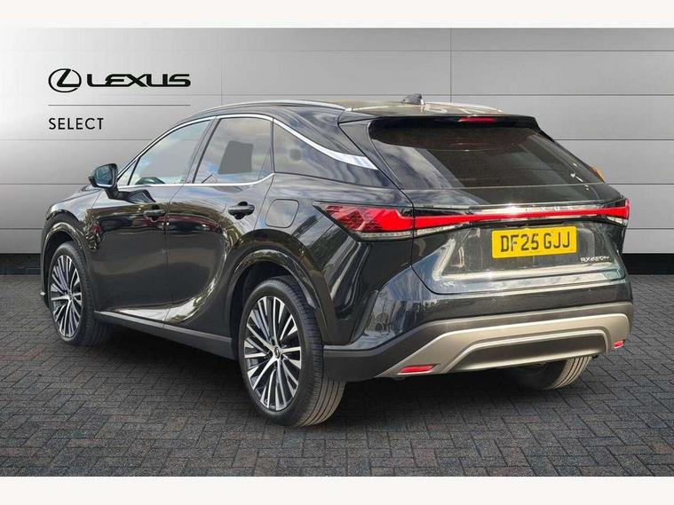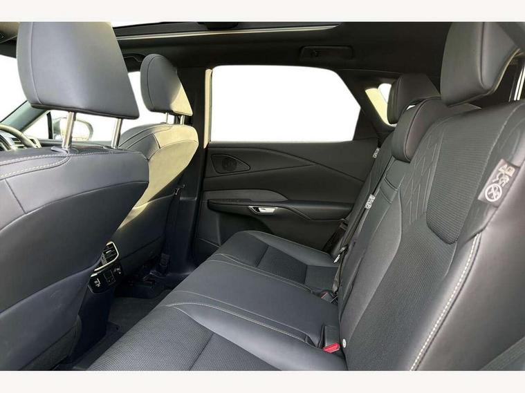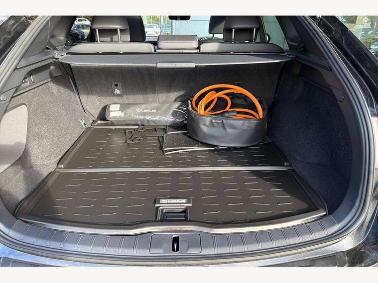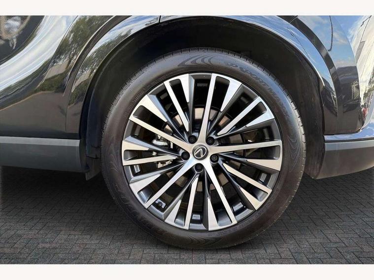 360 degree panoramic view monitor, Bluetooth mobile phone connectivity, BSM - Blind spot monitoring, Drive mode selector, Driver monitoring system, E-call, Head up Display, Intelligent clearance sonar, Lexus link connected services including over the air updates, MM21 Lexus link pro - 14" HD touchscreen with embedded and cloud based navigation, voice assistant, connected services, over the air and always online, Push button starter, Rear cross traffic alert, Speed sensitive electric power assisted steering, Ultrasonic parking sensors, Wireless Apple CarPlay and wired Android Auto, Wireless Smartphone charger, 3 pin to Type 2 10A charging cable, 6.6 kW onboard charger, E-Four Automatic transmission, Type 2 AC charging, Type 2 mode 3 32A charging cable, Vehicle Stability Control (VSC), 12 speakers audio, 5 USB ports (3 front USB C and 2 rear USB C), DAB Digital radio, 3 projector bi-beam LED headlight with auto high beam, Auto dimming rear view mirror, Auto headlights, Front and rear one touch power windows with voice command, Front and rear silver window frame mouldings, Glove and towel set, Headlight washers, Heated, auto-folding door mirrors, auto dimming with rerverse tilt, turn indicators and panoramic view sensors, L-shaped rear light bar, LED brake lights and rear lights with emergency brake signal, LED cornering headlights, LED daytime running lights, LED front and rear fog lights, LED Indicators, Power back door with kick sensor, Privacy UV glass, rear doors and tailgate, Rain sensor windscreen wipers, Rear side wing doors, Rear wash/wipe, Roof rails, Variable front intermittent wipers, 12V accessory port centre console and luggage compartment, 2 cup holders in centre console, 2 way electric lumbar support for driver and front passenger, 2 x Sunvisors with vanity mirror and lamp, 3 rear headrests, 3 seat bench in 2nd row, 40:20:40 split folding rear seats, 64 colour LED ambient interior illumination with 14 pre-set themed colour tones, 8 way electrically adjustable front seats, Charge cable bag, Driver seat memory function, Easy access driver seat, Easy access steering wheel, Front aluminium scuff plates, Front headrests, Front tray in front of centre console, Glovebox, Heated and ventilated front seats, Heated steering wheel, Leather steering wheel, Lever type shft control, Manually adjustable rear seats, Power adjustable steering wheel, Rear resin scuff plates, Single front passenger seat, Smooth leather upholstery, Textile carpet mats, Three zone climate control air conditioning system, Two way opening centre armrest with storage, 2 x Isofix child rear seat restraints, 3 point ELR front and rear seatbelts with pretensioners, ABS, Curtain shield airbags (front and rear), Driver and front passenger 2 stage airbag, Driver/front passenger side airbags, Drivers knee airbag, E-Latch with safe exit assist, EBD + Brake Assist, Electronic parking brake, Electronically controlled braking, Extended lexus safety system+ 3 - lane change assist, front cross traffic assist, Front and rear left/right force limiters and tension reducers, Front and rear left/right seatbelt reminders, Front centre airbag, Hill assist control, Lexus safety system+ 3 - dynamic radar cruise control, pre collision system day and night, lane tracing assist, road sign, Manual child lock in rear doors, Passenger airbag cut-off device, Traction control, Tyre pressure warning, 2 x remote key fobs, Customisable auto door lock, Locking wheel nuts, Motion sensor key, Smart keyless entry, Thatcham category 1 alarm + immobiliser, VIN etching, Black Inlay, 21" Alloy wheels,
