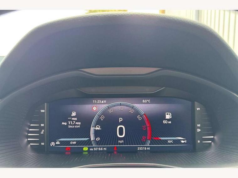Amundsen satellite navigation with 9.2" glass colour touchscreen display, voice control, virtual cockpit, web radio and traffic sign recognition, Bluetooth system, E-call, Front and rear parking sensors, Front assist system, Gesture control, PAS, Rear view camera, Service indicator, Speed limiter, Virtual cockpit with 10.25" display, Wireless SmartLink for apple car play, android auto and mirrorlink, 8 Speakers, Auxiliary input socket, DAB Digital radio, Auto dimming rear view mirror, Body colour bumpers, Body colour door mirrors and handles, Chrome grille surround, Electric folding door mirrors, Electrically adjustable and heated door mirrors, Front and rear electric windows, Headlight range control, Heated rear window, LED rear lights - low functionality, Light sensors, Privacy glass, Rear fog lights, Rear side wing doors, Rear wiper, 12V Accessory socket in centre console, 3 seat bench in 2nd row, Chrome inner door handles, Dual zone climate control, Front head restraints, Glove compartment with illumination, Ice scraper, Isofix child seat fittings on outer rear seats, ISOFIX on front passenger seat, Manual lumbar support for front seats, Rake/reach adjustable steering wheel, Reading lights, Single front passenger seat, Sun visors with illumination on front passenger, Textile floor mats, Third rear headrest, Top tether for front passenger seat, Umbrella in driver's door, 3x3 point rear seatbelts, Airbags - driver and front passenger, ESP, Front passenger airbag deactivation switch, Front side airbags with curtain airbags, Hill hold control, Manual parking brake, Manual rear child locks, One tone horn, Rear disc brakes, Seatbelt reminder for driver an co-driver, Traction control, Tyre pressure monitor, Anti-theft alarm system with interior monitoring, backup horn, towing protection and remote central locking with SAFE system, Anti-theft wheel bolts, Electronic engine immobilizer, Latice curved decorative insert on the dashboard with hot stamping in copper and white ambient lighting white,