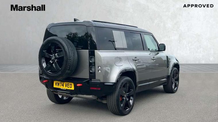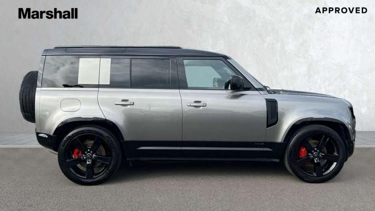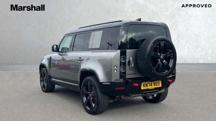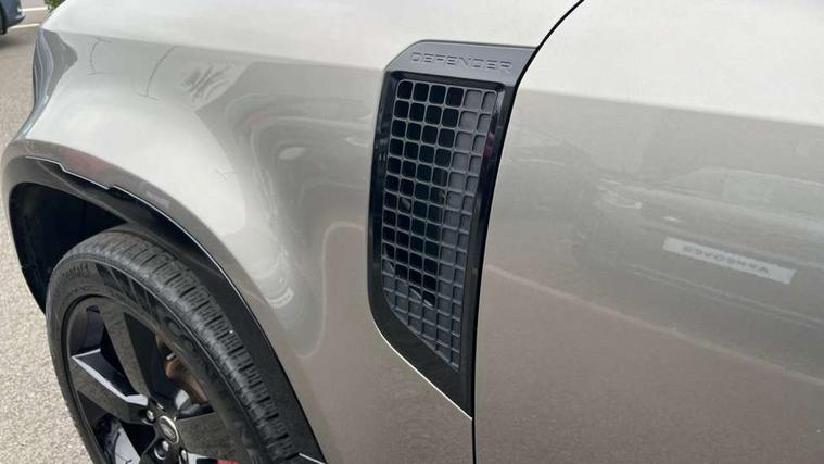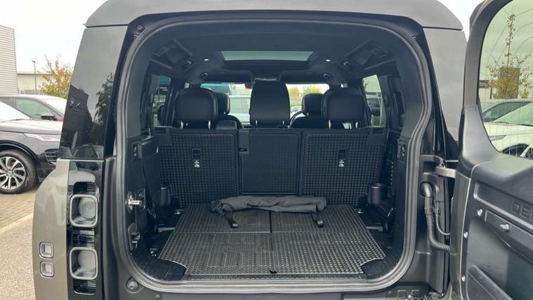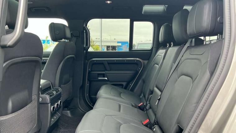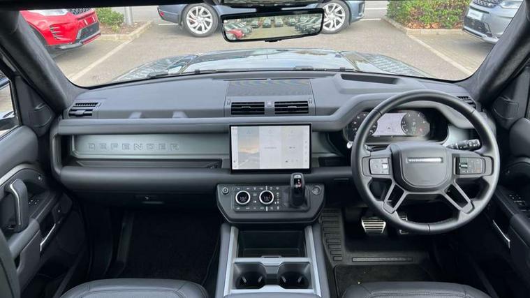 1 x USB-C (power only) & 1 x USB-C (power & data) in Row 1, 2 x USB-C in Row 2, 11.4" touchscreen, 2 x USB-C in Row 3, 360 degree parking aid, 3D Surround Camera with 360 View, 180 Rear View, Front Traffic Detection, Forward Vehicle Guidance, Tow Hitch Assist and clear sight Ground View, Adaptive cruise control, Android Auto, Apple CarPlay, Blind spot assist, Bluetooth system, Brake pad wear indicator, Clear exit monitor, Connected navigation pro, Driver condition monitor, Electric power assisted steering (EPAS), Head up Display, Interactive driver display, Lane keep assist, Push button start, Rear collision monitor, Rear traffic monitor, Traffic sign recognition with adaptive speed limiter, Trip computer, Wade Sensing, Wireless device charging, 8 speed automatic transmission, Adaptive dynamics, All terrain progress control, All wheel drive system, Configurable Terrain Response, Electronic active differential with brake torque vectoring, Electronic air suspension, Terrain Response 2, Twin speed transfer box, DAB Radio (Digital Audio Broadcasting), Meridian 700w surround sound audio system with 15 speakers, Pivi pro connected, Automatic headlight levelling, Automatic headlights, Centre high mounted stop light, ClearSight interior rear view mirror, Darkened LED tail lights, Electric heated/power fold door mirrors with approach lights and auto dimming driver side, Electric windows with one touch open/close and anti-trap, Follow me home lighting, Front fog lights, Heated rear window with timer, Heated windscreen, Illuminated metal treadplates with brand name script, Matrix LED headlights with signature DRL, Privacy glass, Puddle lights, Rain sensing windscreen wipers, Rear fog lights, Rear side wing doors, Rear wiper, Side hinged tailgate, Sliding panoramic roof, Standard tail door, Trailer stability assist, X badge, 12V power socket in loadspace, 14 way heated and cooled electric memory front seats with 4 way manual winged headrests, 2 seat bench in 3rd row, 3 seat bench in 2nd row, 60:40 load through climate rear seats with winged headrests, manual slide and recline and centre armres, Alpine lights, Bright metal pedals, Configurable cabin lighting, Domestic plug socket, Durable rubber cabin flooring, Durable rubber loadspace flooring, Electric reach + rake adjustable steering column, Electrically adjustable steering column, Footwell lights, Front passenger isofix child seat attachment, Heated steering wheel, Loadspace cover, Loadspace Hook, Multifunction steering wheel, No flat load floor storage, Nubuck edged carpet mats, Overhead stowage for sunglasses, Rear headrests, Rear ISOFIX, Rear reading lights, Signature interior upgrade, Single front passenger seat, Soft close tail door, Storage glovebox, Sunvisors with illuminated vanity mirrors, Twin front cupholders, Family Comfort Pack - Defender 7 Seat, Non-smoker package, Online pack with data plan - Defender, 7 three point seatbelts, ABS, Brake hold function, Cornering brake control (CBC), Cross car beam in metallic grey powder coat brushed finish, Customer configurable autolock, Driver and passenger airbags, DSC - Dynamic Stability Control, EBD - Electronic brakeforce distribution, Electric parking brake (EPB), Emergency brake assist, Emergency braking, ESP + traction control, Front airbags with passenger seat occupant detector, HDC - Hill descent control, Hill launch assist, Low traction launch, Orange brake calipers, Power operated child locks, Remote for (e-Call, Optimised assistance call, InControl app, Climate, beep and flash and door), RSC - Roll stability control, Seat belt reminder, TPMS (Tyre pressure monitoring system), Alarm, Immobiliser, Intrusion sensor, Keyless entry, Locking wheel nuts, Secure tracker pro,