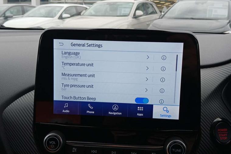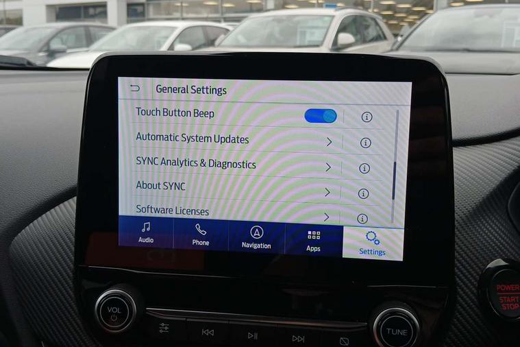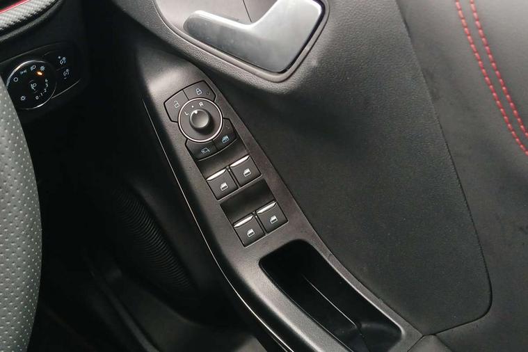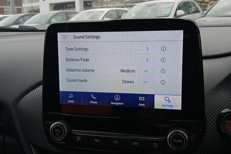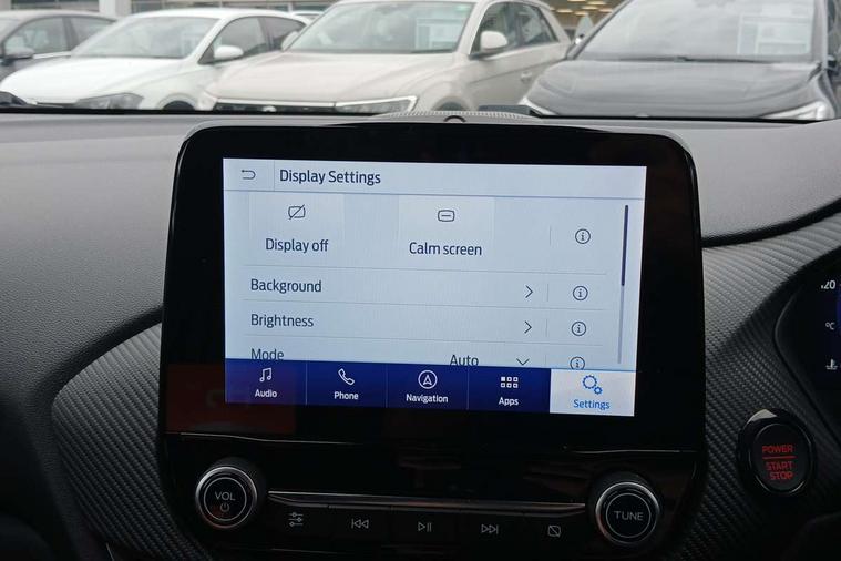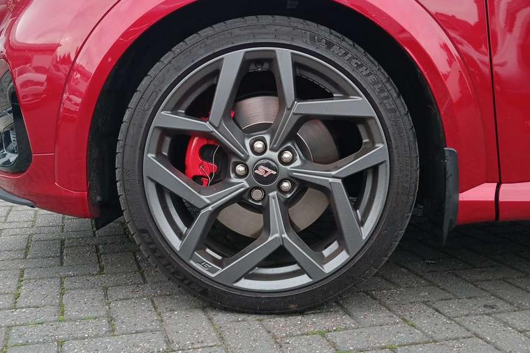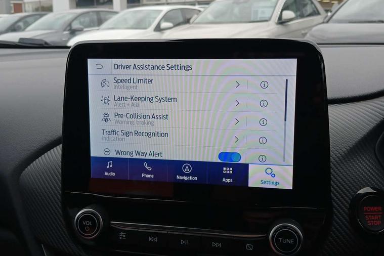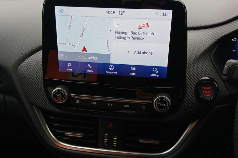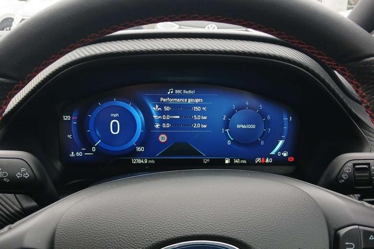 Cruise control with Intelligent speed assist, Driver impairment monitor, Emergency call service, Ford easy fuel, Front and rear parking sensors, Full digital 12.3" instrument cluster, Lane keeping aid with lane departure warning, Power assist steering, Selectable drive modes (normal, sport, eco, track), Speed sign recognition, Engine sound enhancer, ST suspension, Automatic headlights with auto high beam, Automatic rain sensing wipers, Dual chrome exhaust, Fixed LED signature headlamps, Front fog lamps, LED daytime running lights, LED rear lamps, Power foldable heated door mirrors with puddle lamps and puma logo protection, Privacy glass to side rear windows and tailgate glass, Quickclear heated windscreen, Rear side wing doors, Rear wiper, ST scuff plates, Third brake light, Unique ST body styling kit including contrast black roof, large rear spoiler and wing mirrors, plus Ford Performance embossed splitter, 3 seat bench in 2nd row, Alloy sports pedals, Centre console with armrest and stowage, Ford megabox extended bootspace, Ford Performance sensico partial premium leather upholstery with metal grey stitching, Front and rear floor mats, Front and rear head restraints, Manual 6 way driver seat adjust with lumbar adjustment, Manual 6 way passenger seat with lumbar seat adjustment, Single front passenger seat, ST flat bottomed steering wheel with metal grey stitching, ST logo projection, Unique ST gear shift knob, Wireless charging pad with electronic air temperature control (EATC), B&O Premium Audio system + Ford SYNC 3 navigation pack - Puma, Winter pack - Puma, 3 rear seatbelts, Child safety lock, Electronic stability control (ESC) and hill start assist, Pedestrian/cyclist detection & post-collision braking, Pre collision assist system, Red brake calipers, Tyre pressure monitoring system (TPMS), Keyless entry and power start button, Thatcham alarm, Carbon look interior deco spears, 19" 5 Spoke magnetite dark finished alloy wheel, Tyre inflation kit,