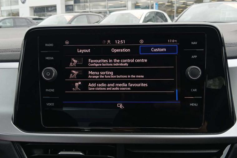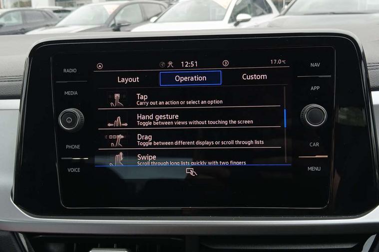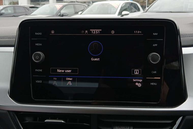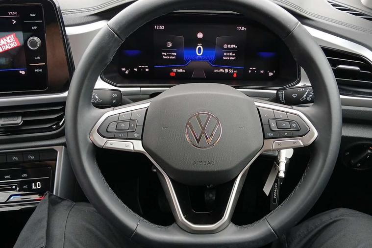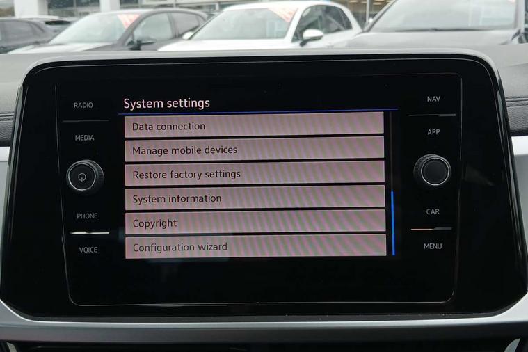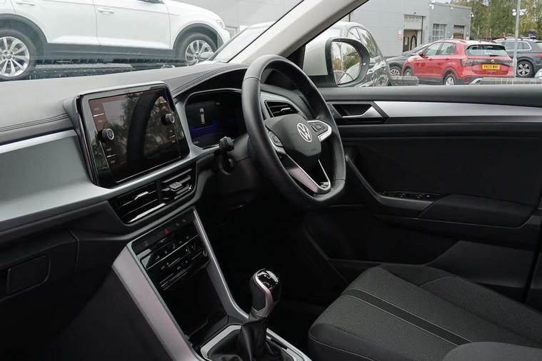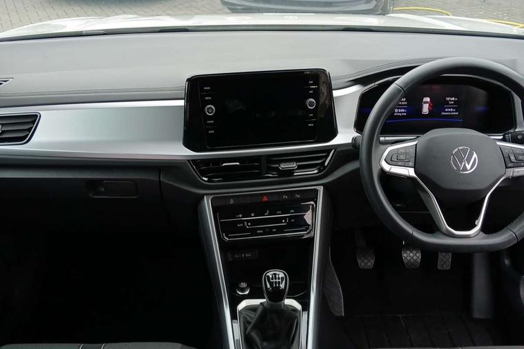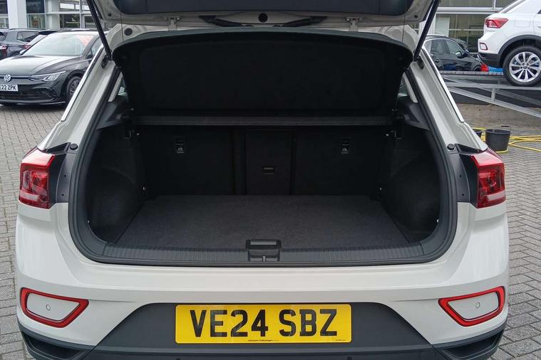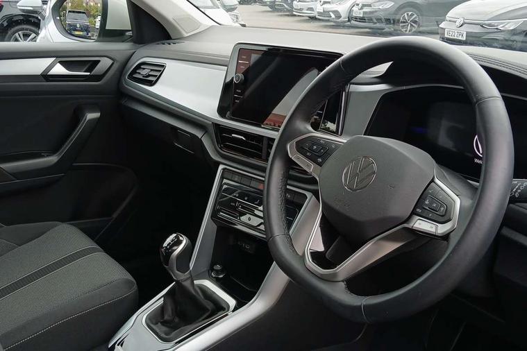 Advanced driver attention and drowsiness monitor, Bluetooth mobile phone interface, Dynamic road sign display, Emergency call service, Lane keeping system Lane Assist, Modified key software - reduce switch off time for key status change to Long no motion, Online services, Park assist including front and rear parking sensors, Power assisted speed sensitive steering, Service interval indicator, Tailgate/trunk lid release from outside, Think blue trainer driver tips and journey analysis, Warning sound and light for front seatbelts unfastened, Wireless app connect, Battery regeneration during braking, Front shock absorption, Rear shock absorption chassis with increased ride height, Start/stop function with battery regeneration, DAB Digital radio, Diversity antenna for FM reception, Music playback - MP3, WMA and AAC files, Premium USB cable in choice of either Apple or Android smartphone compatibility, SD card slot, Simultaneous pairing of 2 compatible mobile devices, Title and cover art display, We Connect and We Connect Plus functionality, 3rd brake light, Auto dimming interior rear view mirror, Automatic hazard lights activation under emergency braking, Automatic headlight control with LED separate daytime running lights with coming/leaving home function, Black roof rails, Body coloured bumpers and radiator grille with chrome trim and front fog lamps with chrome bezel, Body coloured exterior mirror housings and door handles, Electrically adjustable and heated door mirrors, Extended roof spoiler, Exterior mirrors aspherical on driver side, convex on front passenger side, External USB type C socket and charging sockets, Front windscreen wiper with intermittent wipe and 4 position delay, Heated rear window, LED rear combination lamps, LED rear number plate lights, Power windows with comfort operation and circuit breaker, Rain sensor, Rear exhaust tailpipe, Rear fog light on one side and reversing lights on both sides, Rear side wing doors, Rear wash/wipe with intermittent wipe setting, Remote electrically foldable door mirrors, puddle lights and reverse activated passenger's door mirror, 12V power socket in centre console, 3 rear head restraints, 3 seat bench in 2nd row, 4 load lashing points in luggage compartment, Air care climatronic air conditoning system with active combination filter and 2-zone temperature control, Ambient lighting with mirror logo projection, Cloth upholstery, Door and side trim panel in cloth, Drawer under drivers seat, Driver/front passenger seat height adjustment, Front centre armrest, Front comfort sports seats, Front cupholders x 2, Front reading light, Front seat back storage pockets, Glove compartment door with light, Instrument lighting, white adjustable panel illumination, Interior light delay, Isofix child seat preparation, Leather gearshift handle, Load-through provision with cup holder when folded down ('Unsplit rear seat bench, split folding backrest, with centre armrest), Luggage compartment lighting, Lumbar support for driver's and front passengers seat, Non-folding front passenger seat backrest, Single front passenger seat, Storage compartment in left and right luggage area, Storage compartment in rear doors, Storage compartments in driver and front passenger doors, Sunvisors with illuminated vanity mirrors, Variable boot floor, height adjustable and removable, Driver assistance pack without proactive passenger protection - T-Roc Life/Match, 3 point height adj front seatbelts + pretensioners, 3 point seatbelts in outer rear with ECE label, ABS, Child locks on rear doors, City emergency braking and pedestrian monitoring, Driver and front passenger airbag with front passenger airbag deactivation, Driver and front passenger safety-optimised head restraints, Drivers seatbelt reminder, Electronic parking brake, Electronic Stability Control (ESC) inc EDL (Electronic Differential Lock) and ASR (Traction Control), Front and rear passengers curtain airbag system including front side airbags, Front disc brakes, Hill start assist, Predictive pedestrian protection, Rear disc brakes, Two tone horn, Tyre pressure loss indicator, Volkswagen roadside assistance, Alarm with interior protection, Anti-theft alarm system with interior monitoring, backup horn, and towing protection, Remote central locking with SAFELOCK, radio remote control with 2 remote control folding keys, Pewter matt decorative inserts for intrument panel, centre console and door panels at the front, Trims for alloy wheels,