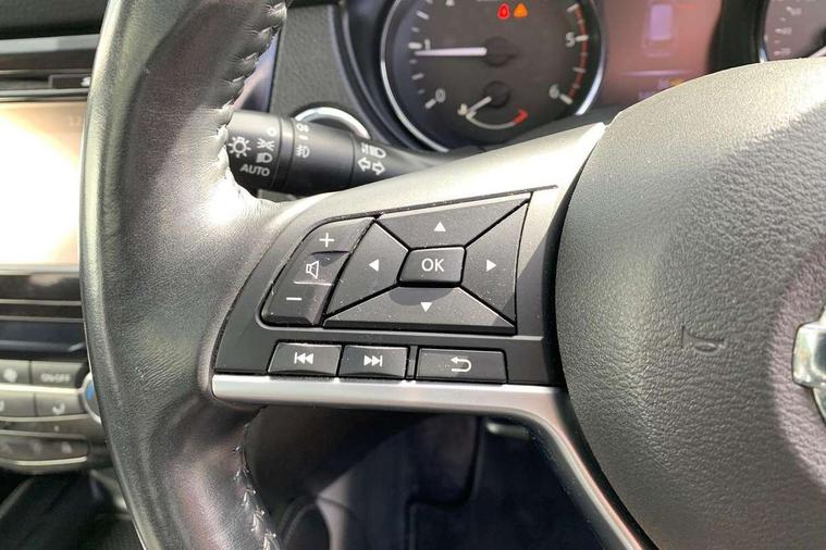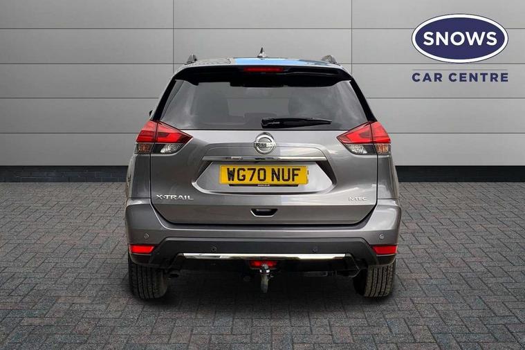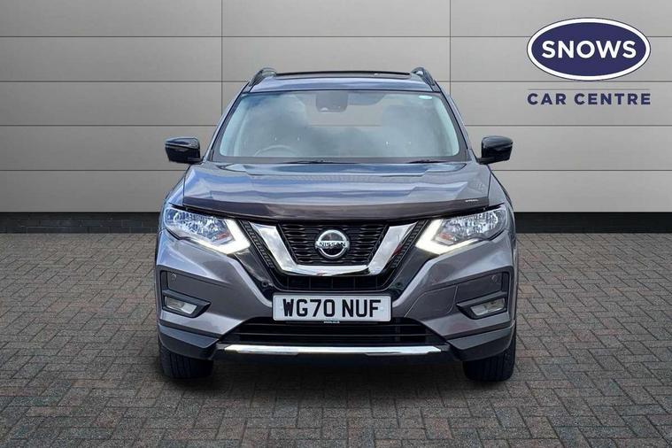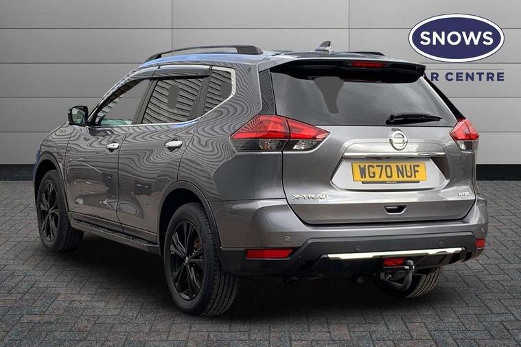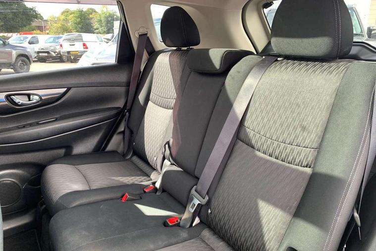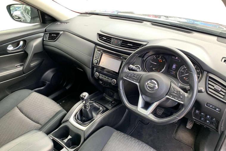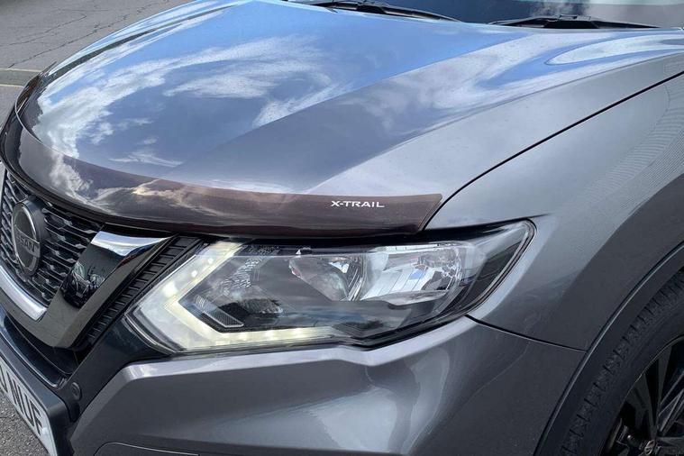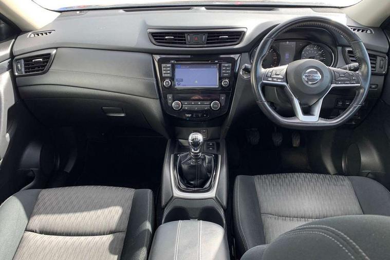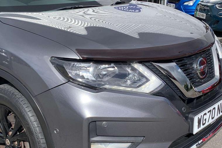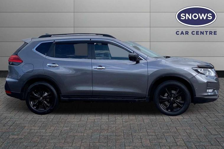 5" TFT driver information centre, Automatic tailgate opening, Blind spot monitoring, Bluetooth phone integration system, Driver attention alert system, Front and rear parking sensors, Intelligent around view monitor, Intelligent parking assist, Lane departure warning system, Moving object detection, Nissan connect evo 7" touchscreen navigation and entertainment system, PAS, Push button start, Rear cross traffic alert, Stand still assist auto hold function, Traffic sign recognition, Trip computer, Nissan chassis control (intelligent ride control, intelligent trace control, intelligent engine brake), 6 speakers, DAB Digital radio, Radio/CD, Smartphone apps, Steering wheel mounted audio controls, USB/aux input socket, Aluminium entry guards with N-TEC naming, Anti dazzle rear view mirror, Automatic headlights, Black roof rails, Chrome door handles, Chrome window surround, Dark V motion grille, Electric folding door mirrors, Electric heated mirrors with side turn signal light, Front and rear electric windows, Front fog lights, Halogen headlights, LED daytime running lights, Metallic black door mirrors, N-Tec badge, Panoramic sunroof with one touch shade, Rain sensing windscreen wipers, Rear privacy glass, Shark fin roof aerial, 3 rear headrests, 60/40 split rear bench seat, Centre console storage box/armrest, Cloth upholstery, Configurable luggage board system, Driver's manual adjustable lumbar support, Dual zone climate control, Front and rear door pockets with bottle holders, Front row ventilated cupholders, Front/rear armrests, Height adjustable front headrests, Individual rear reading lights, Isofix child seat attachment, Leather D shaped steering wheel, Leather steering wheel and gear knob, Manual adjust driver/passenger seats, Pollen filter, Tilt/telescopic adjustable steering wheel, Drive assist pack - X-Trail, 3 point seatbelts on all seats, 6 airbags - Driver, front passenger, curtain and side airbags, ABS, Child locks on rear doors, EBD + Brake Assist, Electric parking brake, ESP + traction control, Intelligent emergency braking with pedestrian recognition, Seatbelt warning, Tyre pressure monitoring system, Immobiliser, Intelligent Key, Remote control door locking with superlocking, Thatcham Cat.1 alarm, 18" Black alloy wheels, Full size spare wheel,