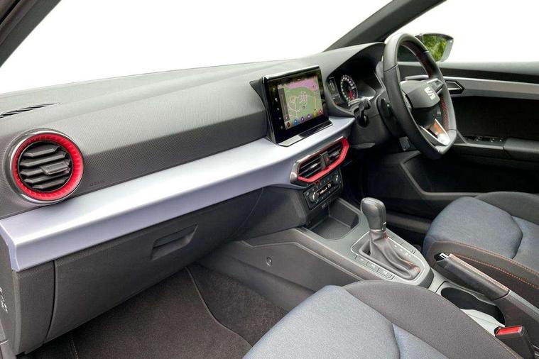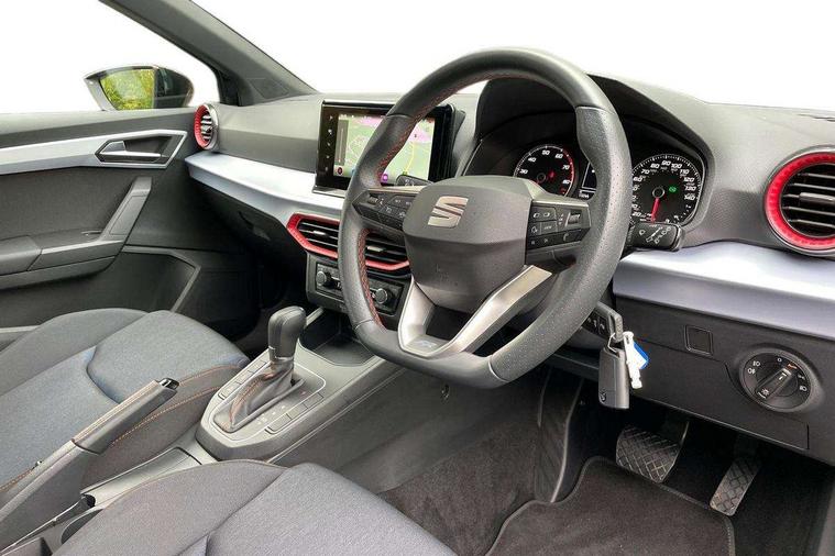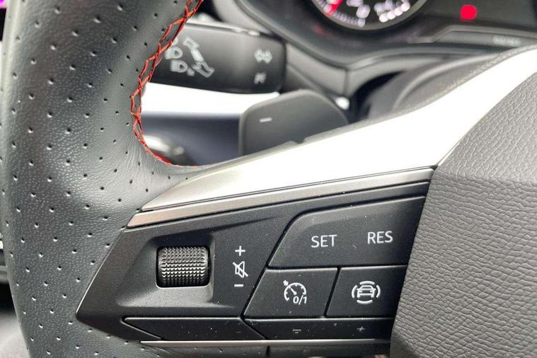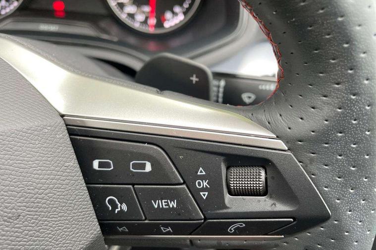 'Lights On' Reminder warning buzzer, 8" Digital cockpit, 9.2" touchscreen navigation system with type C USB socket, Voice control and DAB/AM/FM radio, Auto start and stop system, Bluetooth audio streaming with handsfree system, Digital clock, E-call, Full link smartphone integration with mirror link, wireless apple carplay, Google android auto + USB Type C cable for apple and android devices, Lane assist, Low fuel warning light, Outside temperature gauge, Power Steering, Seat connect with safety, service, remote and online, SEAT drive profiles and ECO function, SEAT logo boot release, Speed limiter, Trip computer, Sports suspension, Auxiliary input socket, Radio/MP3 player, SD card slot, Steering wheel mounted controls, Anti theft roof antenna, Auto dimming rear view mirror, Automatic rain sensing wipers, Black door mirrors, Body colour bumpers, Body colour door handles, Brilliant black window surrounds, Dark tinted rear windows, Electric adjustable/heated/folding door mirrors, Electric front windows, Electric headlight adjustment, Electric rear windows, Front/rear fog lights, FULL LED automatic headlights with dynamic headlight range control, coming and leaving home, LED daytime running lights, LED tail lights, Rear roof spoiler with FR twin exhausts, Rear side wing doors, Rear wiper, Third brake light, 3 seat bench in 2nd row, 60/40 split folding rear seat, Ambient interior lighting, Chrome detailing and black headlining, Cloth upholstery, Dual zone climate control with combination filter, Front courtesy lights, Front cupholders x 2, Front reading lights, Gear shift indicator, Glovebox, Height adjustable front and rear headrests (five), Height adjustable front seats, Height/reach adjust steering wheel, Illuminated air vent surrounds, Illuminated boot, Instrument lighting with brightness control, Isofix, Leather multifunction flat bottomed sports steering wheel, Passenger sunvisor, Single front passenger seat, Sports seats, Sunvisors with mirror and driver side card holder, 3 point seatbelts on all 3 rear seats, ABS, Active front headrests, Child locks on rear doors, Electronic stability control, Energy recovery system, Front assist forward collision warning and autonomous emergency braking, Front driver and passenger side airbags with curtain airbag and front passenger airbag deactivation, Hill hold control, Multi-Collision braking, Seat belt reminder for front and rear seats, Tiredness recognition system, Tyre pressure monitoring system, Electronic engine immobiliser, Locking wheel bolts, Perimeter alarm and interior monitoring with backup horn and tow away protection, Remote central locking + deadlocks, 17" Alloy wheels in Brilliant silver,