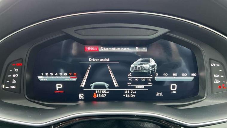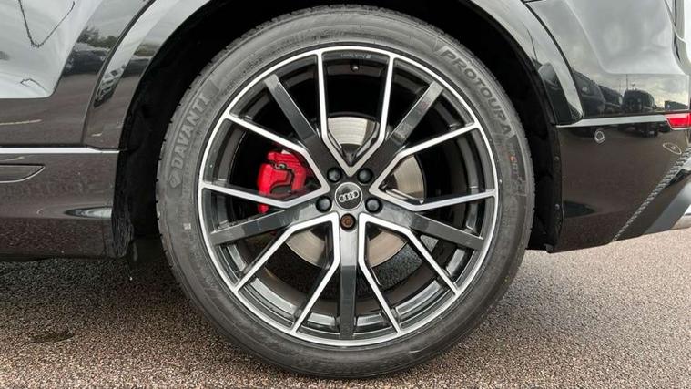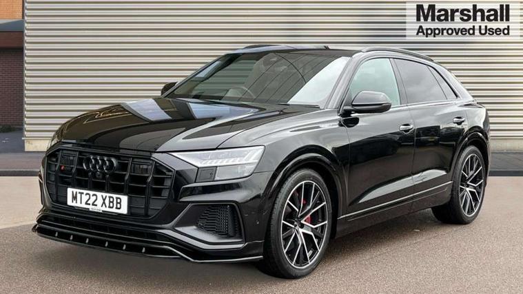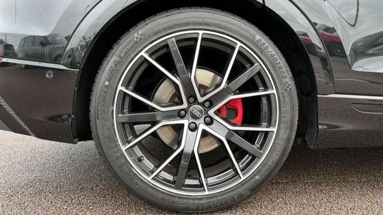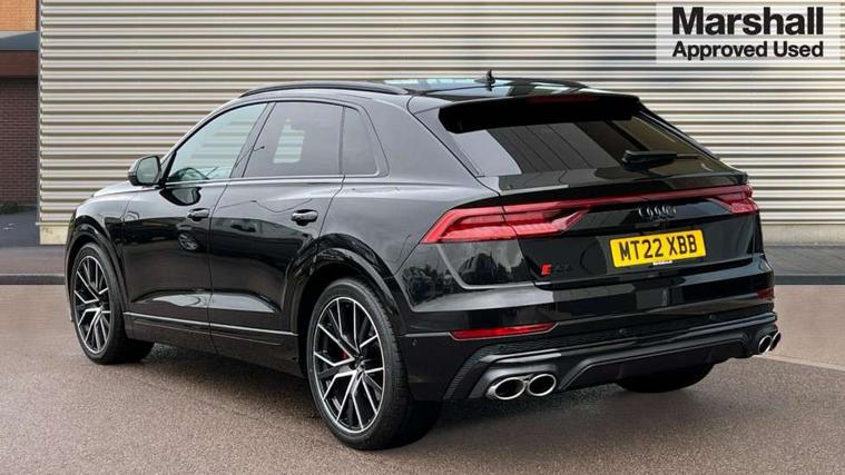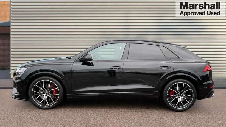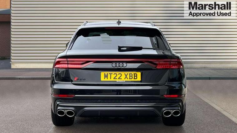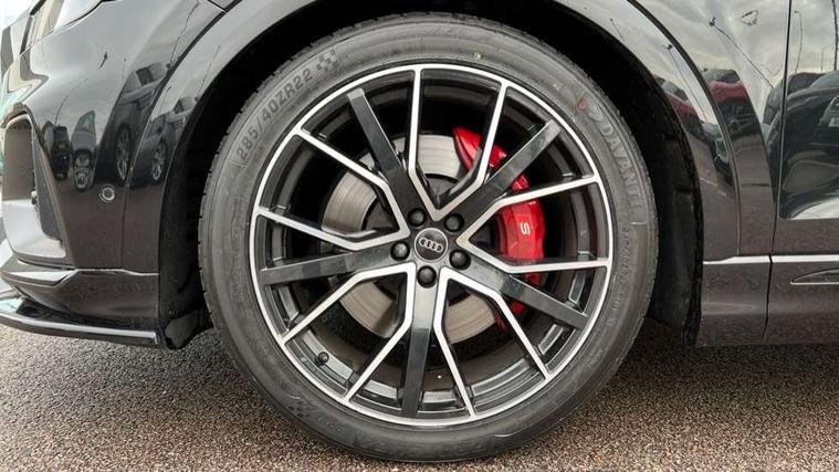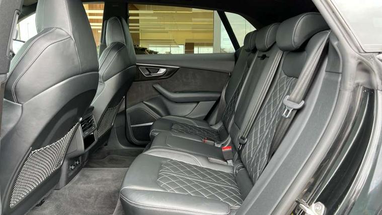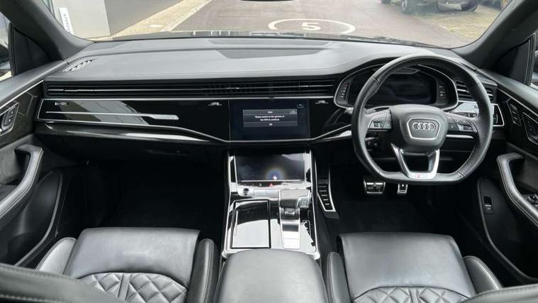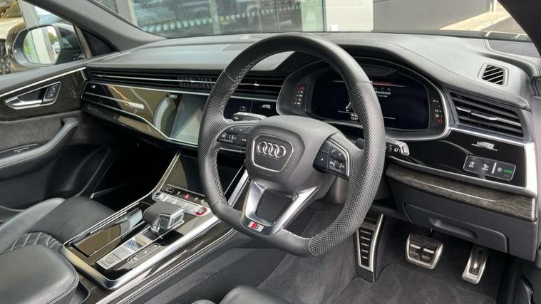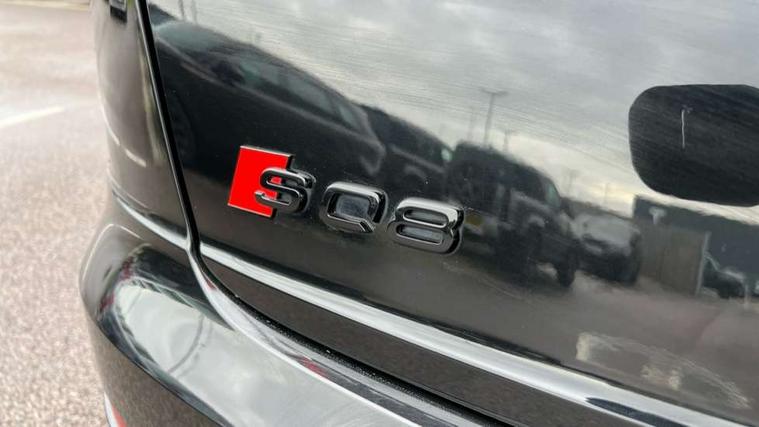 10.1" and 8.6" Dual colour touchscreens, All wheel steering, Audi connect safety and service (e-call), Audi connect with Amazon Alexa Integration, Audi drive select, Audi parking system plus includes 360 degree display with front and rear sensors, Audi smartphone interface includes wireless Apple carplay/Android Auto, Audi virtual cockpit - 12.3" high resolution LCD display with fully customisable instrument cluster, Automatic start/stop system, Electro-mechanical PAS, Low washer fluid indicator, MMI - Multi Media Interface control system, MMI navigation plus with MMI touch, Natural voice recognition, On board computer, Operating buttons in black, glass look with haptic feedback, Power operated tailgate, Rear view camera, Service interval indicator, 48V Mild hybrid technology, 85 litre fuel tank, Quattro all wheel drive with self locking centre differential, S specific Adaptive air suspension, Audi music interface with 2 USB ports with charge and data functions, Audi sound system with 6 channel amplifier, 180 watt amplifying capacity and 10 loudspeakers including subwoofer, Aux-in socket, DAB Digital radio, 3rd brake light, Acoustic windscreen, Audi Beam uses LEDs to project the Audi logo, Audi HD Matrix LED headlights with dynamic front and rear indicators, Auto dimming frameless rear view mirror, Body coloured bumpers, Coming/leaving home lighting function, Electric front+rear windows, Electrically folding auto dimming/adjustable/heated door mirrors with memory function, LED side indicators and kerb view function for passenger side, Gloss black finish for exterior Audi rings and SQ8 logo, Headlight washers, Heat insulating glass in windshield, LED signature daytime running lights, Platinum grey front spoiler lip and diffuser insert, Privacy glass - dark tinted rear and rear side windows from B-pillar backwards, Rain and light sensors, Rear side wing doors, Rear wiper, S specific dual brach chrome tailpipes on both the left and right, S specific front and rear bumpers, S specific side skirts in matt selenite silver, Side air inlet grilles in matt titanium black, Trim and underbody protection in matt selenite silver, 4 zone deluxe automatic climate control, 4-way lumbar support for front seats, 40:20:40 split folding rear bench seat, Black cloth headlining, Comfort front centre armrest, Driver seat memory function, Electrically adjustable front seats, Front head restraints, Front/rear floor mats, Heated front seats, Illuminated door sill trims, ISOFIX child seat mounting for front passenger seat and 2 outer rear seats with top tether child seat mounting for all 3 rear seats, LED interior ambient lighting, Luggage compartment sill protection in stainless steel, Rear centre armrest with 2 cupholders, Rear headrests, Rear seat bench plus, Single front passenger seat, Stainless steel pedals, Sunvisors with illuminated vanity mirrors, Tool kit, Upper and lower interior elements in leather, leather door armrests, Valcona leather upholstery + super sports seats with S embossed logo, Titanium Black Styling Pack - Q8, 3 point seatbelts on all seats, Audi pre sense front, Child locks on rear doors, Driver and front passenger, front side and curtain airbags, Electromechanical parking brake, Electronic Stability Control (ESC) including ABS, ASR and EDL, Front passenger airbag deactivation, Hill descent control, Hill hold assist, Predictive pedestrian protection, Seatbelt monitoring, Traction control, Tyre pressure loss indicator, Warning triangle and first aid kit, Anti theft alarm with tow away protection, Anti-theft wheel bolts and wheel loosening detection, Immobiliser, Keyless go with remote central locking, Polished oak trim with grey finish inlay, Tyre repair kit,