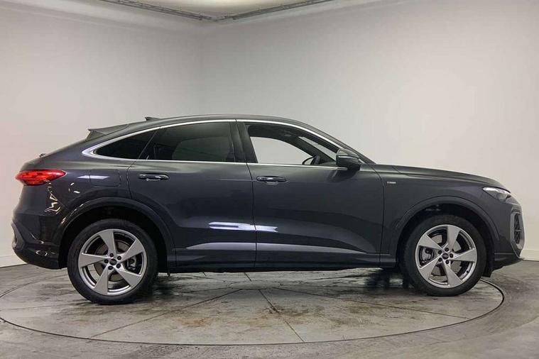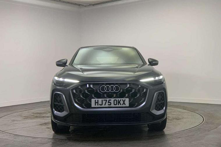 Adaptive cruise control, Advanced driver attention alert, Audi application store, Audi connect emergency call and service, Audi drive select, Audi smartphone interface, Audi virtual cockpit plus with 11.9" OLED colour display, Camera based traffic sign recognition, Fatigue monitor, Front cross traffic intersection assist, Lane departure warning system, MMI navigation plus with high resolution 14.5" OLED touchscreen colour display, Park assist plus, Parking system plus with 360 display, PAS, Reversing camera, Swerve assist and turn assist, Traffic sign based speed limiter, 2 USB-C ports in both the front and rear, Audi sound system impressive sound with 8 loudspeakers including centre speaker and subwoofer, 6-channel amplifier with a total output of 180 watts, DAB Digital radio, Smartphone compartment with wireless charging, Auto dimming rear view mirror, Body coloured door mirrors, Coming/leaving home lighting function, Electrically adjustable heated and folding + automatically dimming exterior mirrors, Front and rear electric windows, Front door sill trims with aluminium inlays, illuminated with 'S' logo, Headlight cleaning system, Heated rear window, High beam assist, High gloss window surrounds, Inlay and front air inlets in matt anthracite chrome, LED headlights plus incl. digital DRL, dynamic coming and leaving home function with turning/all weather/motorway/manouevring and intersection lights, LED rear lights pro incl. dynamic rear indicators and illuminated light strip with animated coming and leaving home function, Logo projection light in exterior mirrors, Privacy glass, Projection light for rear window, Radiator grille in phantom black, Rear and side windows with heat insulating glass, Rear honeycombe grille in matt black with inlay in matt anthracite chrome, Rear side wing doors, Rear wash/wipe, S Line badge on the front wings, S line bumpers in contrasting Volcano grey metallic paint finish, Towbar preparation, Windscreen with acoustic glazing, 3 rear head restraints, 3 seat bench in 2nd row, 3 spoke leather steering wheel with multi-function buttons with touch control, flattened on top and bottom, with S badging and contrast stitching, 40:20:40 split folding rear seat bench with centre armrest and cup holders, Comfort centre armrest, Deluxe 3 zone electronic climate control, Front and rear floor mats, Front seats with manual adjustment for position and 4-way electric lumbar support, Front sport seats with integrated head reastrains, Headlining in black cloth, Heated front seats, i-Size child seat mounting on the front passenger side and outer rear seats, i-Size and top tether on the outer rear seats, Interior trim in aluminium look, Luggage compartment lid, electrically opening and closing, Manual steering column adjustment, S embossed logo on front sport seats, Single front passenger seat, Softwrap in leatherette, Stainless steel pedals and footrest, Steering wheel grips in perforated leather and shift paddles, Ambient lighting package plus - Q5, Storage and luggage compartment pack - Q5, 3x3 point rear seatbelts, ABS, Acoustic vehicle alerting system, Driver and front passenger airbag with passenger airbag deactivation, Electric child safety locks, First aid kit with warning triangle and high visibility vests, Front emergency brake assist, Front side airbags with head airbag system and front interaction airbag, Hill hold assist, Rear seat occupant reminder, Tyre pressure loss indicator, Anti theft alarm, Anti-theft wheel bolts, Remote control key with SAFELOCK and keyless go, Accent surfaces and control buttons in gloss black, Anthracite matt brushed aluminium inlays with linear embossing, Black dashboard with contrast stitching, Upper and lower interior elements in artificial leather, Tyre repair kit,