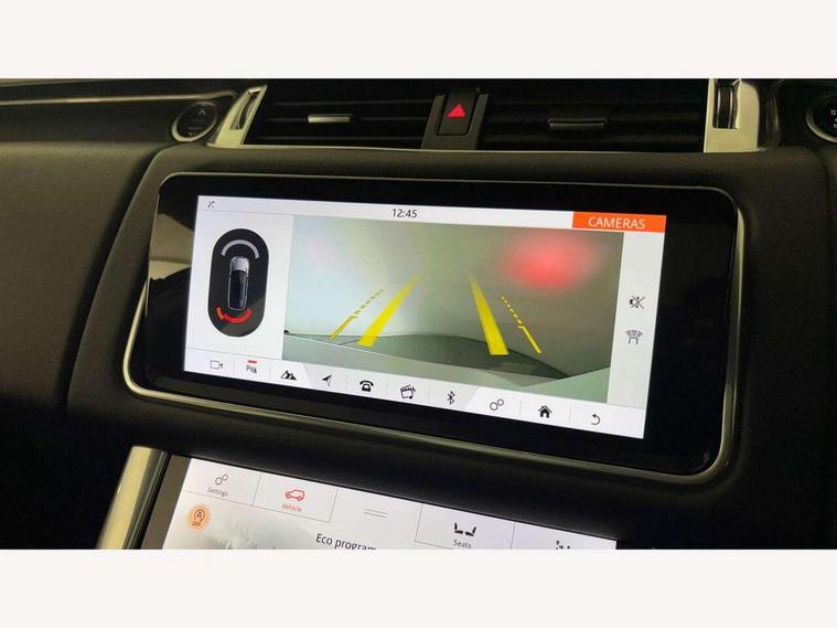 All Terrain Info Centre, Android Auto, Apple car play, Bluetooth connectivity, Electric power assisted steering (EPAS), Incontrol apps in vehicle touchscreen, Interactive Driver display instrument cluster, Mist sensor, Navigation pro system with 10" touch screen, app interface and media storage, Pro services and wifi hotspot, Push button start, Remote premium - Upgraded Incontrol remote app including remote climate control (engine dependent), remote lock + Unlock and remote beep + flash, TFT Virtual Instrument Panel, Touch pro duo system, Trip computer, Gradient release control (GRC), Bluetooth audio streaming, DAB Radio (Digital Audio Broadcasting), Incontrol protect - SOS emergency call with automatic collision detection, optimised assistance call and Incontrol remote app essential, USB/aux input socket, Acoustic front and toughened rear side glass, Acoustic laminated front windows, Adaptive brake lights, Auto dimming interior rear view mirror, Automatic headlights, Body coloured bumpers, Body coloured door mirrors, Centre high mounted stop light, Electric windows with one touch open/close and anti trap, Electrical towing preparation, Engine cover, Follow me home lighting, Front and rear recovery eyes, Front fog lights, Headlight power wash, Heated rear window, Heated windscreen includes heated washer jets, LED rear lamps, Privacy glass (Tinted glass rear of B pillar), Rain sensing windscreen wipers, Rear fog lights, Rear side wing doors, Rear wash/wipe, Remote window closing, Side repeater indicators in mirror, Sport Badge in silver, Standard bonnet, Trailer stability assist, 2 way active front head restraints, 2 way rear head restraints, 3 seat bench in 2nd row, 60/40 load through rear seats, Auto air recirculation, Bright metal foot pedals, Centre console with armrest, Climate control memory, Customer configurable single point entry, Driver's footrest, Front and rear cupholders, Front door storage space, Front map lights, Front seat back map pockets, Front stowage pocket, Front/rear passenger grab handles, Heated steering wheel, Isofix child seat preparation, Leather steering wheel with Atlas inserts, Loadspace light, Loadspace mounting provisions, Lockable glovebox, Multifunction steering wheel, Pollen filter, Power socket, Reach/rake electric adjustable steering column + entry/exit tilt away, Rear centre armrest, Rear ISOFIX, Roller blind loadspace cover, Satin chrome gearshift paddles, Single front passenger seat, Three 12V accessory power outlets, Smartphone pack - Range Rover Sport, 3 point seatbelts on all seats, Anti-lock braking system (ABS), Brake pre-fill technology, Cornering brake control (CBC), Curtain airbags, Customer configurable autolock, DSC - Dynamic Stability Control, Dual stage driver/passenger airbags, EBD - Electronic brakeforce distribution, Electric parking brake, Electronic traction control, Emergency braking includes city, urban AEB and pedestrian, Front seatbelt pretensioners, Gradient acceleration control, Grey anodised brake calipers, Height adjustable front seatbelts, Hill descent control, Hill launch assist, Low traction launch, Passenger seat occupant detector with front airbags, Power operated child locks, Roll stability control, Seatbelt warning, TPMS (Tyre pressure monitoring system), Immobiliser, Intrusion sensor, Keyless entry, Locking wheel nuts, Perimetric and volumetric anti theft alarm, Remote locking, Grand black veneer,