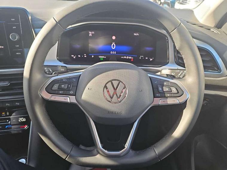 Advanced driver attention and drowsiness monitor, Dynamic road sign display, Emergency call service, Lane keeping system Lane Assist, Mobile phone interface, Modified key software - reduce switch off time for key status change to Long no motion, Online services, Park assist including front and rear parking sensors, Power assisted speed sensitive steering, Rear view camera, Service interval indicator, Tailgate/trunk lid release from outside, Think blue trainer driver tips and journey analysis, Warning sound and light for front seatbelts unfastened, Wireless app connect, Battery regeneration during braking, Front shock absorption, Rear shock absorption chassis with increased ride height, Start/stop function with battery regeneration, DAB Digital radio, Diversity antenna for FM reception, Front and rear 6 speakers, Music playback - MP3, WMA and AAC files, Premium USB cable in choice of either Apple or Android smartphone compatibility, SD card slot, Simultaneous pairing of 2 compatible mobile devices, Title and cover art display, We Connect and We Connect Plus functionality, Auto dimming interior rear view mirror, Automatic hazard lights activation under emergency braking, Automatic headlight control with LED separate daytime running lights with coming/leaving home function, Black roof rails, Body coloured bumpers and radiator grille with chrome trim and front fog lamps with chrome bezel, Body coloured exterior mirror housings and door handles, Electrically adjustable and heated door mirrors, Extended roof spoiler, Exterior mirrors aspherical on driver side, convex on front passenger side, External USB type C socket and charging sockets, Front windscreen wiper with intermittent wipe and 4 position delay, Heated rear window, LED 3rd brake light, LED rear combination lamps, LED rear number plate lights, Power windows with comfort operation and circuit breaker, Privacy glass for rear side windows and rear window, Rain sensor, Rear exhaust tailpipe, Rear fog light on one side and reversing lights on both sides, Rear side wing doors, Rear wash/wipe with intermittent wipe setting, Remote electrically foldable door mirrors, puddle lights and reverse activated passenger's door mirror, 12V power socket in centre console, 3 rear head restraints, 3 seat bench in 2nd row, 4 load lashing points in luggage compartment, Air care climatronic air conditoning system with active combination filter and 2-zone temperature control, Black stitching for floor mats, Ceramique roof liner, Cloth upholstery, Door and side trim panel in cloth, Drawer under drivers seat, Driver/front passenger seat height adjustment, Front centre armrest, Front comfort sports seats, Front cupholders x 2, Front reading light, Front seat back storage pockets, Glove compartment door with light, Instrument lighting, white adjustable panel illumination, Interior ambient lighting and surround lighting, Interior light delay, Isofix child seat preparation, Leather gearshift handle, Load-through provision with cup holder when folded down ('Unsplit rear seat bench, split folding backrest, with centre armrest), Luggage compartment lighting, Lumbar support for driver's and front passengers seat, Non-folding front passenger seat backrest, Single front passenger seat, Storage compartment in left and right luggage area, Storage compartment in rear doors, Storage compartments in driver and front passenger doors, Sunvisors with illuminated vanity mirrors, Variable boot floor, height adjustable and removable, Driver assistance pack without proactive passenger protection - T-Roc Life/Match, 3 point height adj front seatbelts + pretensioners, 3 point seatbelts in outer rear with ECE label, ABS, Child locks on rear doors, City emergency braking and pedestrian monitoring, Driver and front passenger airbag with front passenger airbag deactivation, Driver and front passenger safety-optimised head restraints, Drivers seatbelt reminder, Electronic parking brake, Electronic Stability Control (ESC) inc EDL (Electronic Differential Lock) and ASR (Traction Control), Front and rear passengers curtain airbag system including front side airbags, Front disc brakes, Hill start assist, Predictive pedestrian protection, Rear disc brakes, Two tone horn, Tyre pressure loss indicator, Volkswagen roadside assistance, Alarm with interior protection, Keyless locking and starting system keyless access with safelock, Pewter matt decorative inserts for intrument panel, centre console and door panels at the front, Trims for alloy wheels,