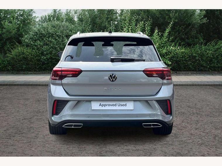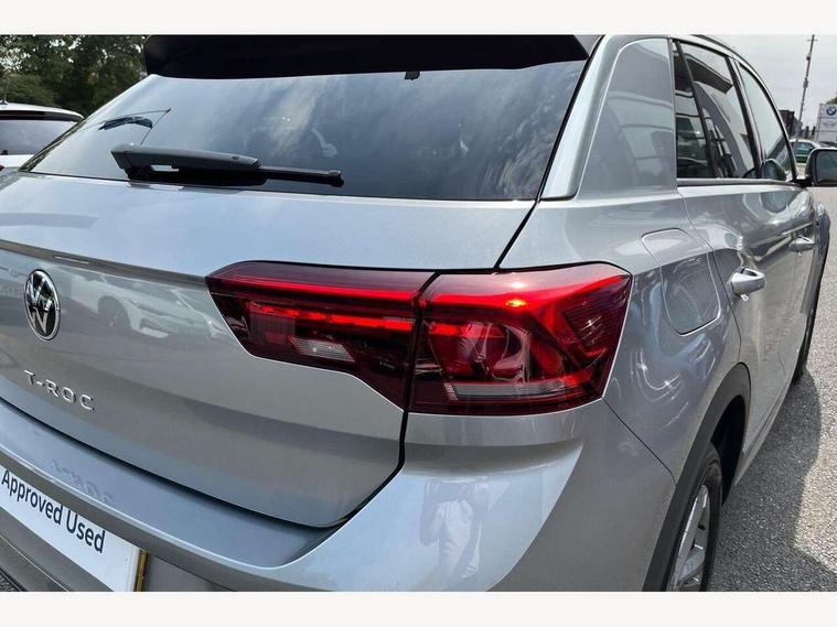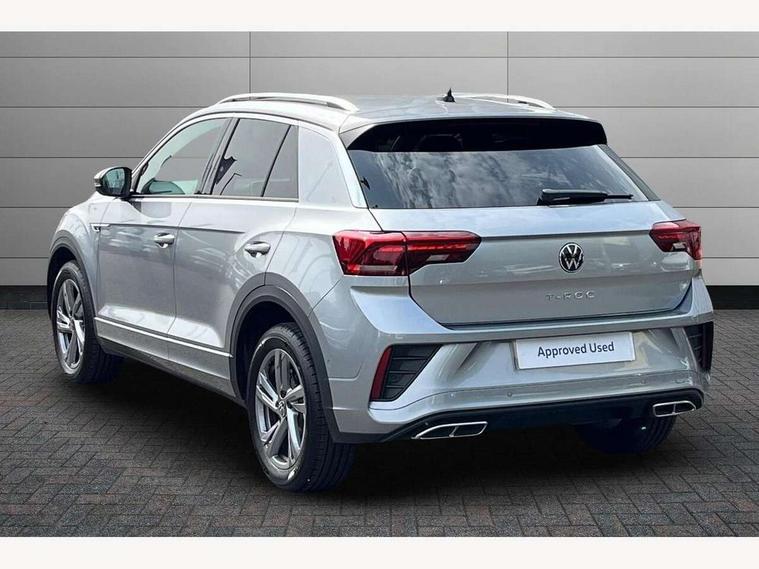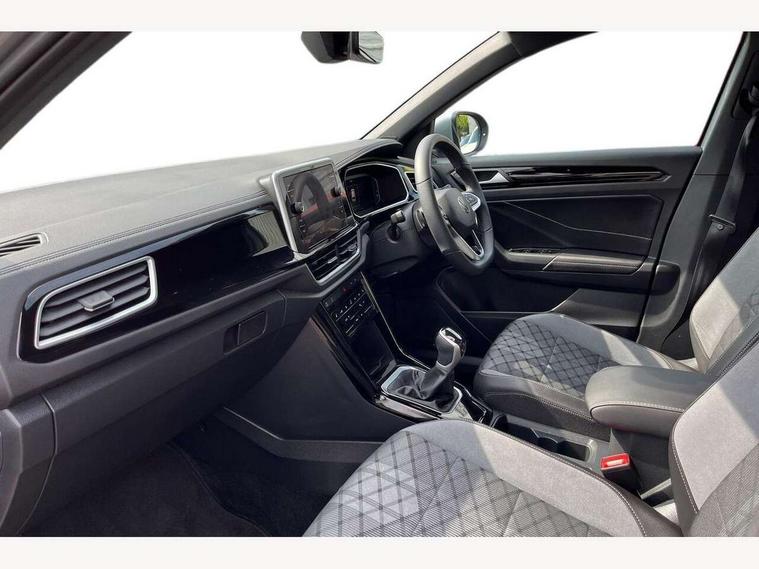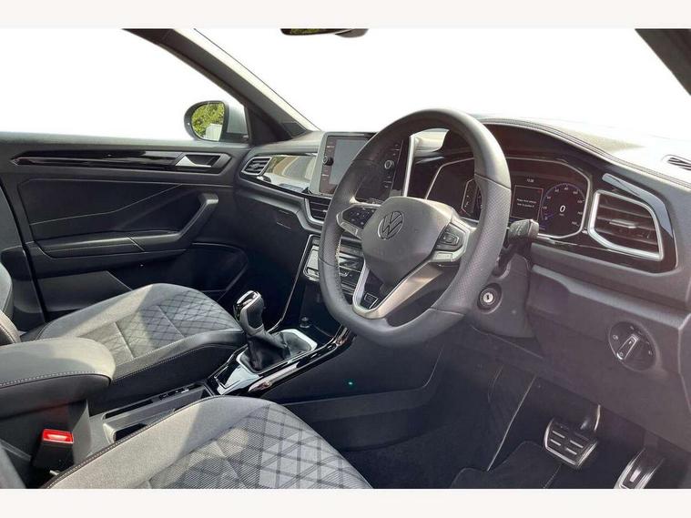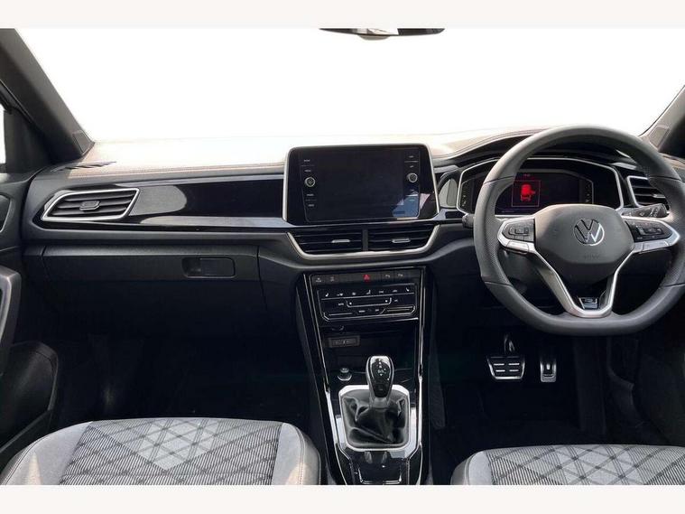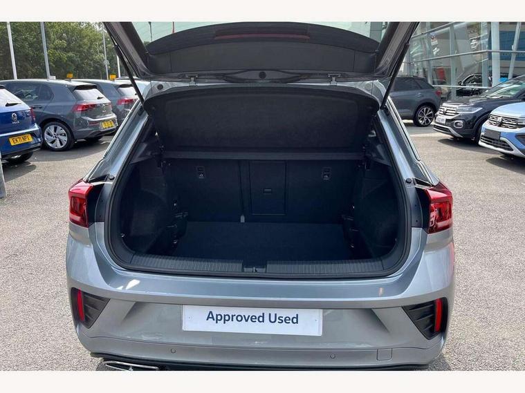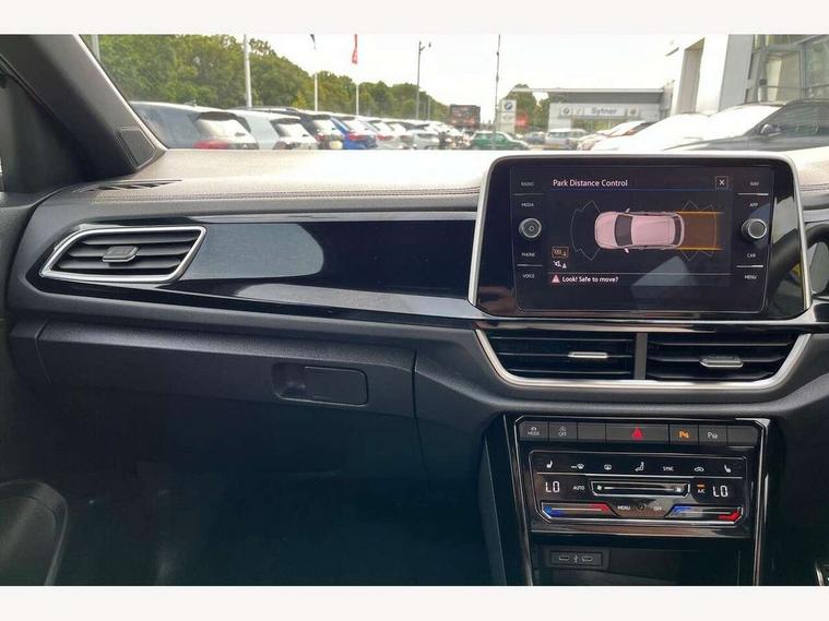 10.25" Digital cockpit pro, Advanced driver attention and drowsiness monitor, Emergency call service, Lane keeping system Lane Assist, Mobile phone interface, Modified key software - reduce switch off time for key status change to Long no motion, Online services, Park assist including front and rear parking sensors, Service interval indicator, Tailgate/trunk lid release from outside, Think blue trainer driver tips and journey analysis, Warning sound and light for front seatbelts unfastened, Wireless app connect, Battery regeneration during braking, Start/stop function with battery regeneration, DAB Digital radio, Diversity antenna for FM reception, Front and rear 6 speakers, Music playback - MP3, WMA and AAC files, Premium USB cable in choice of either Apple or Android smartphone compatibility, SD card slot, Simultaneous pairing of 2 compatible mobile devices, Title and cover art display, We Connect and We Connect Plus functionality, Auto dimming interior rear view mirror, Automatic hazard lights activation under emergency braking, Automatic headlight control with LED separate daytime running lights with coming/leaving home function, Body coloured exterior mirror housings and door handles, Electrically adjustable and heated door mirrors, Extended roof spoiler, Exterior mirrors aspherical on driver side, convex on front passenger side, External USB type C socket and charging sockets, Front windscreen wiper with intermittent wipe and 4 position delay, Heated rear window, LED 3rd brake light, LED rear combination lamps, LED rear number plate lights, Power windows with comfort operation and circuit breaker, Privacy glass for rear side windows and rear window, R-Line design body coloured bumpers, Rain sensor, Rear exhaust tailpipe, Rear fog light on one side and reversing lights on both sides, Rear side wing doors, Rear wash/wipe with intermittent wipe setting, Remote electrically foldable door mirrors, puddle lights and reverse activated passenger's door mirror, 12V power socket in centre console, 3 rear head restraints, 3 seat bench in 2nd row, 4 load lashing points in luggage compartment, Air care climatronic air conditoning system with active combination filter and 2-zone temperature control, Black roof lining, Chrome plated decorative trims, Chrome plated radiator grille inserts, air vent surrounds and light switch surrounds, Door and side trim panel with leatherette insert, Front + rear carpet mats, Front centre armrest, Front cupholders x 2, Front footwell illumination, Front reading light, Front scuff plates with R Line logo, Front seat back storage pockets, Glove compartment door with light, Instrument lighting, white adjustable panel illumination, Interior ambient lighting and surround lighting, Interior light delay, Isofix child seat preparation, Leather gearshift handle, Load-through provision with cup holder when folded down ('Unsplit rear seat bench, split folding backrest, with centre armrest), Luggage compartment lighting, Single front passenger seat, Stainless steel pedals, Storage compartment in left and right luggage area, Storage compartment in rear doors, Storage compartments in driver and front passenger doors, Sunvisors with illuminated vanity mirrors, Variable boot floor, height adjustable and removable, Driver assistance pack without proactive passenger protection - T-Roc, 3 point height adj front seatbelts + pretensioners, 3 point seatbelts in outer rear with ECE label, ABS, Child locks on rear doors, City emergency braking and pedestrian monitoring, Driver and front passenger airbag with front passenger airbag deactivation, Driver and front passenger safety-optimised head restraints, Drivers seatbelt reminder, Electronic parking brake, Electronic Stability Control (ESC) inc EDL (Electronic Differential Lock) and ASR (Traction Control), Front and rear passengers curtain airbag system including front side airbags, Hill start assist, Predictive pedestrian protection, Rear disc brakes, Two tone horn, Tyre pressure loss indicator, Volkswagen roadside assistance, Piano black decorative inserts in dashboard and front door trim panels, Trims for alloy wheels,