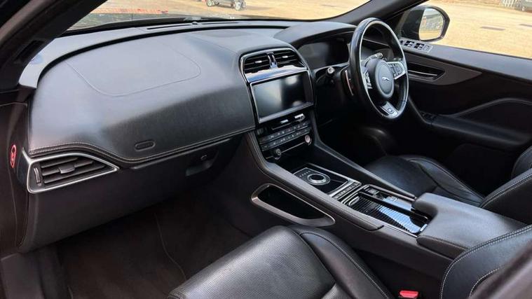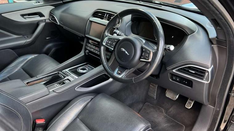 Auto speed limiter, Front parking aid, Lane departure warning system, Outside temperature gauge, Push button starter, Rear parking aid, Service interval indicator, Traffic sign recognition, Trip computer, Variable PAS, Adaptive dynamics, All terrain progress control, Configurable dynamics, Bluetooth connectivity including audio streaming, DAB Digital radio, Dynamic volume control, InControl app, InControl protect, 'S' Body kit, Approach Illumination, Auto dimming rear view mirror, Automatic headlights, Body colour bumpers, Body colour door mirrors, Electric front/rear windows with one touch/auto up/down, Front fog lights, Green tinted heat insulating glass, Headlight washers, Heated rear window with timer, LED tail lights, Rain sensor windscreen wipers, Rear wiper, Trailer stability assist, Variable front intermittent wipers, 12V power point front, 12V power point in luggage area, 2nd row air vents, 3 rear headrests, 40:20:40 split folding rear bench seat, Bright metal foot pedals, Centre armrest console, Fold flat front seats, Front centre armrest with storage compartment, Illuminated glovebox, Illuminated luggage compartment, ISOFIX on outer rear seats, Jaguar sense, JaguarDrive selector, Leather multi function steering wheel, Perforated grained leather upholstery with contrast stitching, Premium carpet mats, Rear armrest with 2 cupholders, Shopping hook in boot, Steering wheel gearshift paddles, Sunvisors with illuminated vanity mirrors, Tie down hooks in luggage area, Twin front covered cupholders, 350mm front brakes, 3x3 point rear seatbelts, ABS, Anti-whiplash front headrests, Autonomous emergency braking (AEB) with forward facing camera, Brake pad warning light, Driver/Front Passenger airbags, DSC - Dynamic Stability Control, Electronic parking brake, Emergency brake assist, Front and rear curtain airbags, Front and rear seatbelt reminder, Front passenger seat occupancy sensor, Front side airbags, Hill start assist, Power child locks, Red painted brake calipers, Torque vectoring brake, Traction control, Tyre pressure monitoring system, Immobiliser, Keyless Start, Perimeter alarm, Remote central locking, Valet mode, Luxtec door trim, Luxtec wrapped instrument panel,