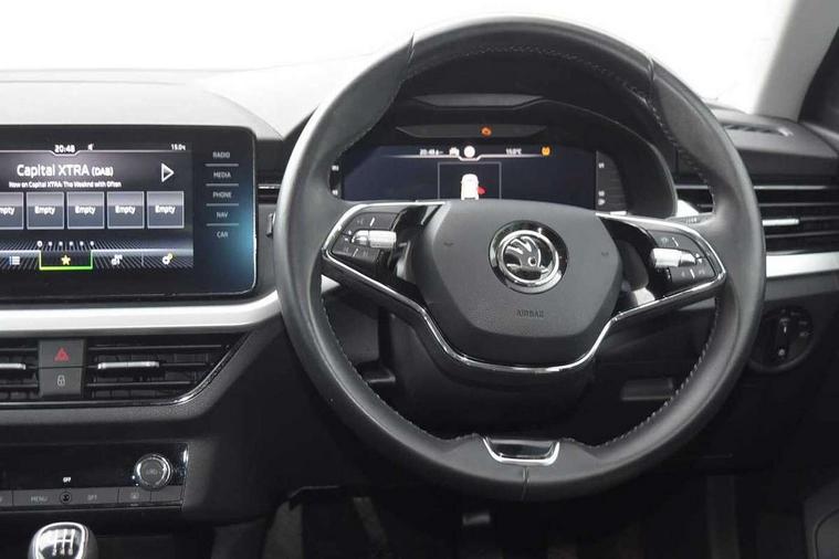 Amundsen satellite navigation with 9.2" touchscreen display, voice control, virtual cockpit and web radio, Bluetooth system, E-call, Front assist system, Lane assist, PAS, Service indicator, Speed limiter, Trip computer, Virtual cockpit with 10.25" display, Wireless SmartLink for apple car play, android auto and mirrorlink, 2 USB - C ports with 1x adaptor cable, Auxiliary input socket, DAB Digital radio, Auto dimming rear view mirror, Body colour bumpers, Body colour door mirrors and handles, Chrome grille surround, Electric folding door mirrors, Electrically adjustable and heated door mirrors, Front and rear electric windows, Headlight range control, Heated rear window, High functionality rear led lights with dynamic indicators, Privacy glass, Rear fog lights, Rear wiper, 12V Accessory socket in centre console, Chrome inner door handles, Dual zone climate control, Front gesture control, Front head restraints, Glove compartment with illumination, Ice scraper, Isofix child seat fittings on outer rear seats, ISOFIX on front passenger seat, Manual lumbar support for front seats, Pollen filter, Rake/reach adjustable steering wheel, Reading lights for driver and front passenger, Sun visor with make up mirror for front passenger, Textile floor mats, Third rear headrest, Top tether for front passenger seat, Umbrella in driver's door, 3x3 point rear seatbelts, Airbags - driver and front passenger, ESP, Front passenger airbag deactivation switch, Front side airbags with curtain airbags, Hill hold control, Manual parking brake, One tone horn, Rear disc brakes, Seatbelt reminder for driver an co-driver, Traction control, Tyre pressure monitor, Alarm with interior monitoring, back up horn and tilt sensor with safe function and towing protection, Anti-theft wheel bolts, Immobiliser, Remote central locking with SAFE system,