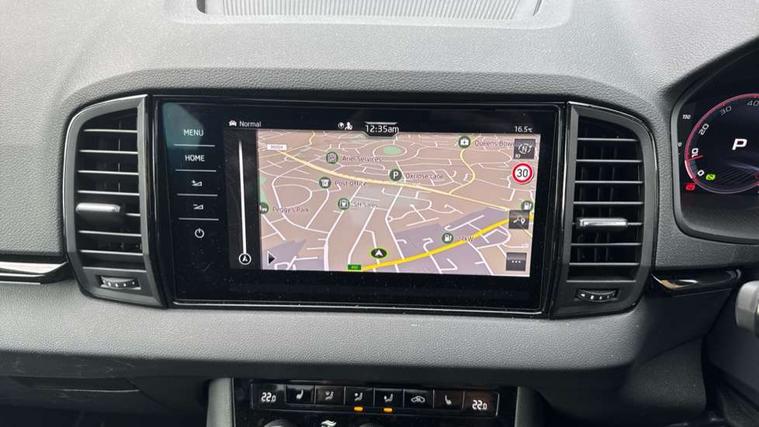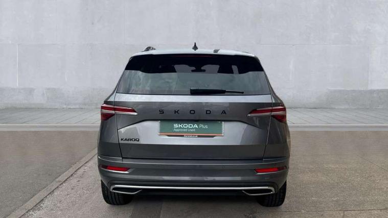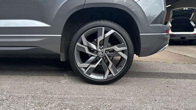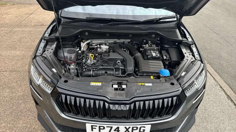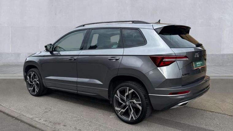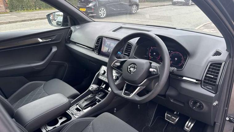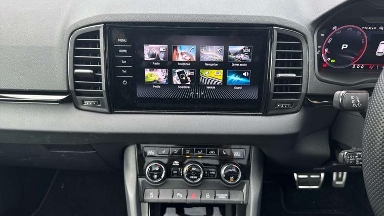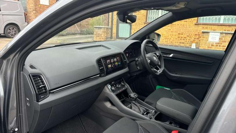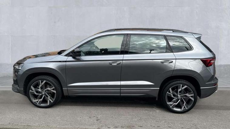 8" Digital display, Advanced driver attention and drowsiness monitor, Emergency services call system, Outside temperature gauge, Sensor for driver assistance systems, Service interval indicator, SmartLink wireless for Apple and wired for Android, Start/stop system with regenerative braking, USB C Port x 2 in front centre console, Virtual Cockpit - 10.25" digital display, Virtual pedal with electrically operated boot door, Wireless smartphone charging, DAB radio with Bluetooth, USB connection, Acoustic glass, Aero front windscreen wipers with intermittent function, Auto dimming rear view mirror with light and rain sensors, Black door mirrors, Black electric window control buttons, Black radiator grille, Black roof rails, Body colour door handles, Electric front and rear windows with child proof lock, Front door steps with SportLine logo, Heated rear windscreen, LED daytime running lights, LED rear lights with high functionality welcome effect and dynamic indicators, Light assistant (coming/leaving home/tunnel light), Panoramic sliding sunroof, Plastic scuff plates in door apertures, Privacy glass, Protective door side sills in body colour, Rear diffuser, Rear side wing doors, Rear spoiler, Rear window wiper with washer system and intermittent control, Safety reflectors on front doors, Skoda lettering on tailgate in black, Sportline badge on front fender, Sportline decorative inserts with badging, Sports front and rear bumpers, Third brake light, Unique dark chrome design logo on alloy wheels, 1.5 litre bottle holders in driver and front passenger door panels, 12V socket in boot, 12v socket in front centre armrest with storage compartment and rear air vents, 2 x Tablet holder, 3 rear height adjustable headrests, 3 seat bench in 2nd row, 3 spoke sports leather heated multifunction steering wheel, 4 foldable roof handles with rear coat hooks, Black floor carpet, Black roof headlining, Chrome inner door handles, Foldable hooks in the boot, Front head restraints, Height adjustable front three point seats belts with tensioners, Height/reach adjust steering wheel, Ice scraper, Illuminated glovebox, Illuminated luggage compartment, Isofix child seat preparation for front passenger seat, Isofix child seat preparation outer rear, Manual lumbar support for front seats, Pen holder, Pollen filter, Rear boot cover, Rear reading lights, Rear seats fixed folding and divided 60:40, Rubbish bin door, Safety vest holder, Single front passenger seat, Skoda lettering on steering wheel, Storage box in upper central dashboard closed, Sunvisors with illuminated vanity mirrors, Textile floor mats, Ticket holder, Titan black interior ceiling, Umbrella under passenger seat, Under passenger seat storage compartment, Ambient Lighting Package - Karoq, Columbus pack - Karoq, LED Interior lighting pack with Skoda welcome logo - Karoq, Light Pack - Karoq, Non Smokers pack, Performance pack - Karoq, Winter plus pack with heated front and rear seats - Karoq, Automatic door unlocking in case of crash, Automatic fuel cut off in case of crash, Driver airbag, Electronic parking brake with auto hold function, Emergency rear braking signal, ESC (incl. ABS+MSR+ASR+EDS+HBA+DSR+RBS+MKB), Front side airbags, Head airbags, Hill hold control, Knee airbags, Passenger airbag with switch-off function, Pedestrian monitor, Seatbelt reminder signalisation and pretensioner for all seats, Three point seatbelts rear, Two tone horn, Tyre pressure monitor, Alarm with interior monitoring, back up horn and tilt sensor with safe function, Electronic engine immobiliser, Keyless entry and start/stop, Remote central locking with 2 remote folding keys, Black air vent surround, Black centre console, carbon door decor, Satin black dashboard, Satin black door trim, 19" Sagittarius anthracite alloy wheels, Anti-theft wheel bolts protection, Breakdown and tool kit,