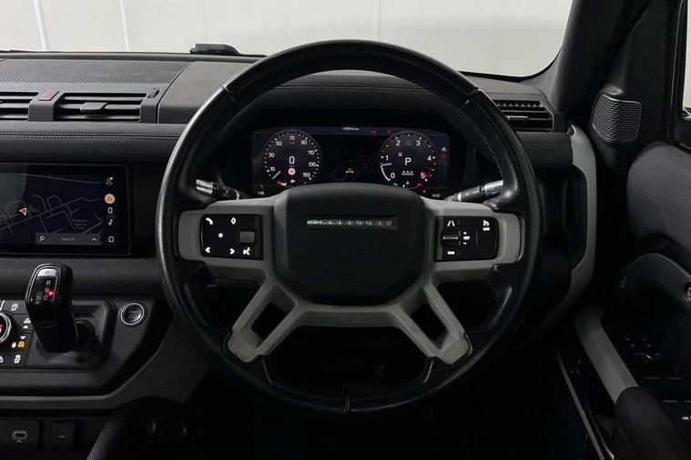 360 degree parking aid, 3D Surround Camera with 360 View, 180 Rear View, Front Traffic Detection, Forward Vehicle Guidance, Tow Hitch Assist and clear sight Ground View, Android Auto, Apple CarPlay, Assisted tailgate with soft close, Blind spot assist, Bluetooth system, Brake pad wear indicator, Clear exit monitor, Click and go integrated base unit, Connected navigation pro, Driver condition monitor, Electric power assisted steering (EPAS), Interactive driver display, Lane keep assist, Push button start, Rear traffic monitor, Traffic sign recognition with adaptive speed limiter, Trip computer, Wade Sensing, Adaptive dynamics, DAB Radio (Digital Audio Broadcasting), Meridian 400w sound audio system with 11 speakers and subwoofer, Pivi pro connected, Automatic headlight levelling, Automatic headlights, Black exposed rear recovery eyes, Centre high mounted stop light, Electric heated/power fold door mirrors with approach lights and auto dimming driver side, Electric windows with one touch open/close and anti-trap, Follow me home lighting, Front fog lights, Heated rear window with timer, Heated windscreen, Illuminated metal treadplates with brand name script, LED tail lights, Matrix LED headlights with signature DRL, Privacy glass, Puddle lights, Rain sensing windscreen wipers, Rear fog lights, Trailer stability assist, X-Dynamic badge, 12V power socket in loadspace, Cabin lighting, Carpet mats, Durable rubber cabin flooring, Durable rubber loadspace flooring, Electric reach + rake adjustable steering column, Footwell lights, Front passenger isofix child seat attachment, Loadspace cover, Loadspace Hook, Multifunction steering wheel, Overhead stowage for sunglasses, Rear headrests, Rear ISOFIX, Rear reading lights, Storage glovebox, Sunvisors with illuminated vanity mirrors, Online pack with data plan - Defender, X-Dynamic exterior pack - Defender, 5 x 3 point seatbelts, ABS, Brake hold function, Cornering brake control (CBC), Customer configurable autolock, Driver and passenger airbags, DSC - Dynamic Stability Control, EBD - Electronic brakeforce distribution, Electric parking brake (EPB), Emergency braking, ESP + traction control, Front airbags with passenger seat occupant detector, HDC - Hill descent control, Hill launch assist, Low traction launch, Power operated child locks, Remote for (e-Call, Optimised assistance call, InControl app, Climate, beep and flash and door), RSC - Roll stability control, Seat belt reminder, TPMS (Tyre pressure monitoring system), Alarm, Immobiliser, Intrusion sensor, Keyless entry and go, Locking wheel nuts,