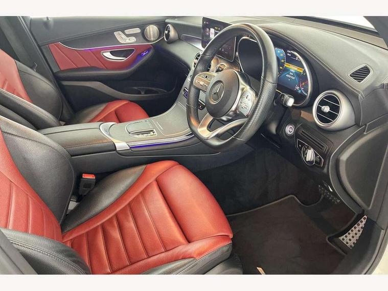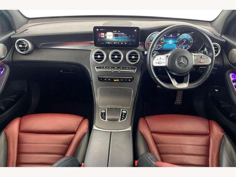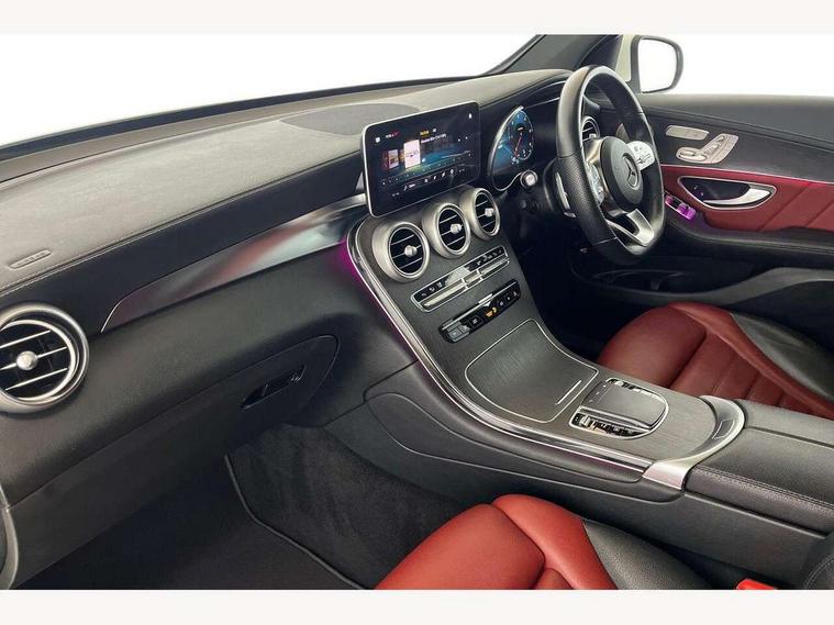 360 degree camera, Attention assist, Bluetooth interface for hands free telephone, Collision prevention assist plus, DYNAMIC SELECT with a choice of driving modes (ECO, Comfort, Sport, Sport+ and Individual), Easy pack automatic powered tailgate, ECO start/stop function, Hard disk navigation, Hey Mercedes Voice activation, Instrument cluster with12.3-inch digital instrument cluster display. High resolution instrument cluster screen with choice of three display styles, MBUX augmented reality for navigation, MBUX Interior assistant, Mercedes connect me with remote online services, Multi function trip computer, Outside temperature display, rear seatbelt status indicator, Parktronic system with rear cross traffic alert and drive away assist, Remote boot release, Service indicator (ASSYST), Smartphone integration with Apple CarPlay and Android auto, Traffic sign assist, Wireless charging, 4MATIC permanent four wheel drive, 66 litre fuel tank, 9G TRONIC plus automatic transmission with steering column gear selector, DIRECT SELECT steering wheel gearshift paddles, Diesel particulate filter, Sports suspension tuned for improved handling and driving dynamics, Burmester surround sound system, MBUX multimedia system with DAB digital radio and touchpad including satellite navigation, Media display 10.25-inch touchscreen display, Pre installation for Mercedes Benz Link, USB ports x 2 in centre console, Adaptive brake lights, Aluminium roof rails, AMG bodystyling - AMG front apron with sporty air intakes and chrome trim element, AMG diffuser-look rear apron with insert in black, Body colour door mirrors, Body coloured bumpers, Electric panoramic glass sunroof, Electric windows one touch open/close, Electrically adjustable and heated door mirrors, Front, side and rear exterior chrome trim, Headlamp assist automatic headlamp activation, LED tail lamp, Motor way mode function and locator lighting, Multi beam LED headlamps with 84 indiviually control LED, daytime running lamps, Active Light, cornering light, enhanced fog lamp, adaptive Highbeam Assist, Privacy glass with dark glass from B pillar backwards, Radiator diamond grille, Rain sensor windscreen wipers, Range adjustable headlights, Rear wiper, Running boards, Tinted glass all round with single layer safety glass, Two chrome plated tailpipe trim elements, 2 way rear head restraints, 3-spoke multifunction sport AMG steering wheel in black nappa leather with flattened bottom section, chrome insert and perforated leather in grip area, 40:20:40 split folding rear seats, Ambient lighting, AMG floor mats with edging and embroidered AMG lettering, AMG sports seats, Artico man-made leather upper dashboard with contrast topstitching, Automatic child seat recognition sensor, Black roof lining, Dividing net - rear, Double cup holder in centre console, Easy-pack removable load compartment cover, Front armrest with storage box, Front door sills with Mercedes Benz lettering, Front head restraints, Heated front seats, Illuminated and lockable glove compartment, Leather upholstery, Rear top tether child seat ISOFIX attachment, Sports pedals with stainless steel surfaces and rubber studs, Steering wheel with touch control buttons, THERMOTRONIC 3 zone automatic climate control, Interior lighting pack - GLC, Keyless Go comfort pack - GLC, Memory pack - GLC, Mirror pack - GLC, Storage pack - GLC, 3 rear 3 point seatbelts, Active bonnet, Adaptive brake system with HOLD function and brake drying in the wet, ASR, Black seat belts, Brake calipers with Mercedes-Benz lettering + perforated brake discs, Child proof door locks, Dual-stage airbags - driver and front passenger, driver knee bag and window bags for driver, front passenger and rear passengers, Electronic parking brake, Electronic stability programme (ESP) with curve dynamic assist and cross wind assist, Front and rear seatbelt reminder, Front passenger seat occupancy sensor, Hill hold function, Tyre pressure monitoring system, Warning triangle and first aid kit, Alarm system/interior protection/immobiliser, Automatic door locking, Remote central locking, Anthracite open pore oak wood trim, 20" AMG 5 twin spoke alloy wheels painted in titanium grey with high sheen finish, Run flat tyres,