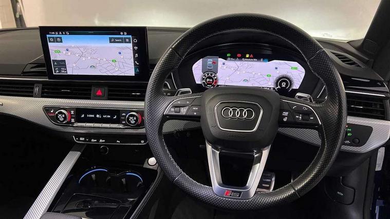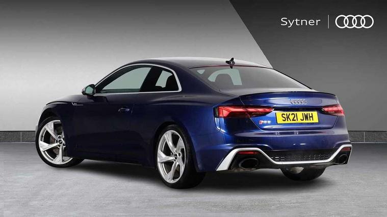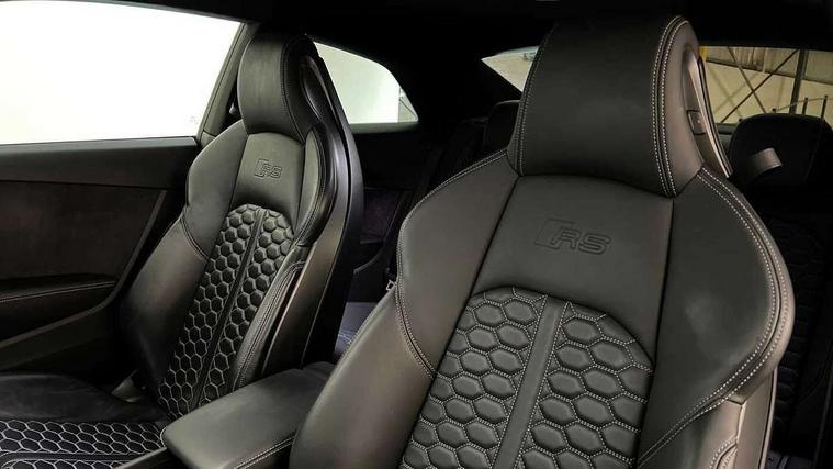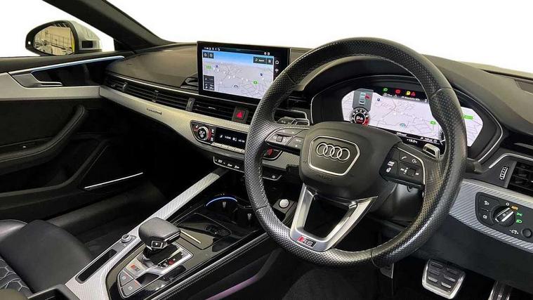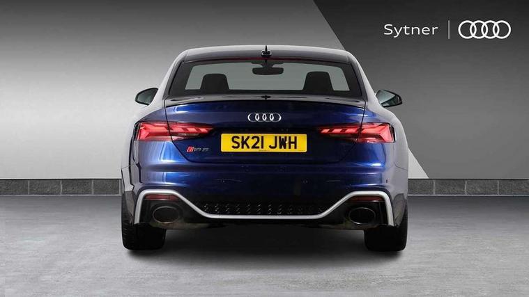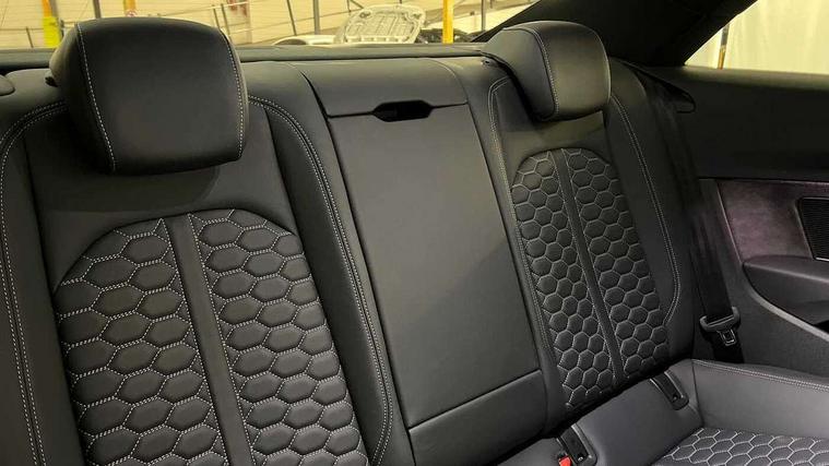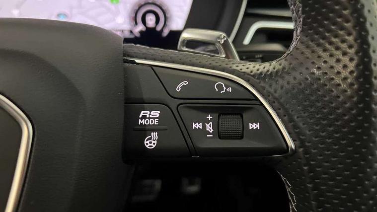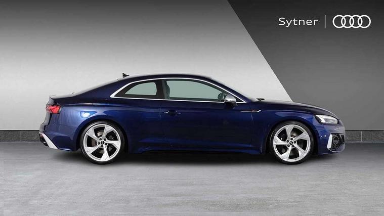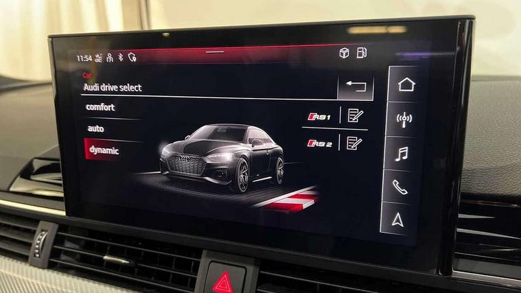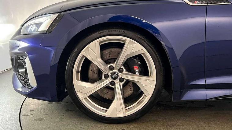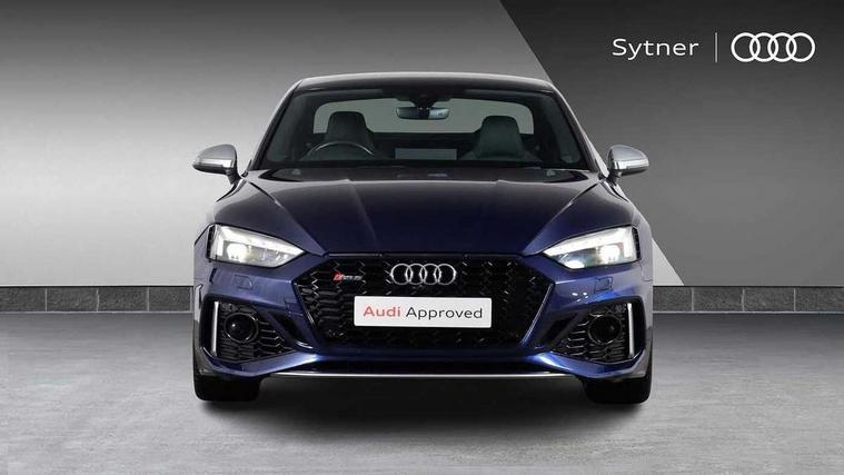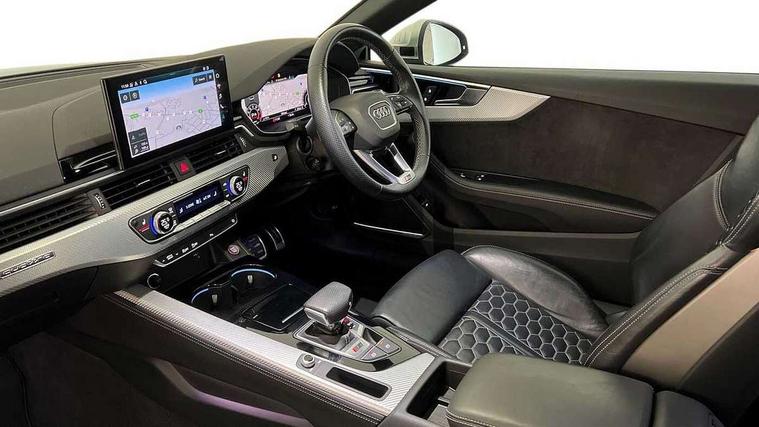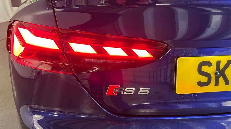 Audi connect safety and service (e-call), Audi connect with Amazon Alexa Integration, Audi parking system plus with front and rear sensors, Audi phone box with wireless charging, Audi side assist, Audi smartphone interface, Audi Virtual Cockpit with RS specific design and 12.3" display, Automatic start-stop system with coasting functionality and efficiency programme, Bluetooth interface, Electromechanical power steering, Email, calendar and text messages displayed via MMI, MMI Navigation plus with MMI touch includes 10.1" high resolution colour MMI display, 3D map, Rear view camera, RS Audi drive select, RS drive modes on steering wheel, Service interval indicator, Voice control system, Quattro sports differential, 2 x USB charging port with aux input socket, Audi sound system, DAB digital radio reception, Audi Beam uses LEDs to project the RS logo, Audi matrix LED headlights with LED rear lights + dynamic front and rear indicators, Auto dimming rear view mirror, Body colour door handles, Electric front windows, Electric rear windows, Electrically folding, adjustable and heated door mirrors with integrated LED side indicators and kerb view function for passenger side, High beam assistant, Larger singleframe grill, LED daytime running lights, Matt aluminium effect door mirror housings, Privacy glass with rear acoustic glazing, Rain and light sensors, RS bumper with quattro lettering, RS5 badges on grille, the front wing panels and rear, RS5 dual branch chrome tailpipes with left and right oval pipes, Windscreen with acoustic glazing, 3 spoke leather heated multi-function plus steering wheel with RS badging, 40:20:40 split folding 2 seater rear seat bench with rear centre armrest, Aluminium shift paddles, Black cloth headlining, Deluxe 3 zone electronic climate control, Electrically adjustable front seats, Fine Nappa leather upholstery, Front centre armrest, Front head restraints, Front/rear floor mats, Heated front seats, Illuminated door sill trims with RS5 logo, ISOFIX child seat mounting and top tether, Leather door armrests and knee pad, Pneumatic massage function, Rear head restraints, RS Specific perforated leather gear lever knob with contrast stitching, RS Super Sports seats with contrast honeycomb stitching, Stainless steel pedals, LED Interior light pack - RS5, RS bodystyling pack - RS5, 2 x 3-point rear seatbelts, 6 airbags - Driver, front passenger, curtain and side airbags, Electromechanical parking brake, Electronic Stabilisation Control (ESC) including ABS, ASR and EDL, Front passenger airbag deactivation, Height adjustable front seatbelts, Hill hold assist, Multi collision brake assist, Pop-up bonnet for pedestrian protection, Pre sense city, RS Model enhanced braking system, Seatbelt monitoring, Tyre pressure warning, Warning triangle and first aid kit, Anti theft alarm system, Anti theft wheel bolts, Immobiliser, Keyless Go, Remote control key with RS emblem, Aluminium race inlays, Tool kit, Tyre repair kit,