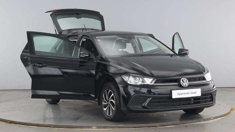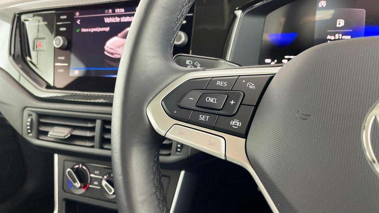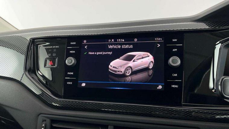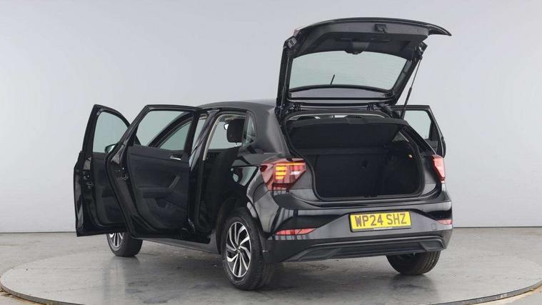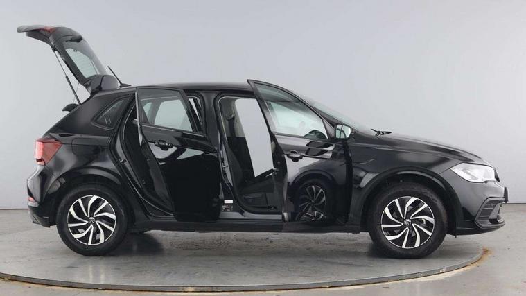 Advanced driver attention and drowsiness monitor, Bluetooth mobile phone interface, Cruise control + speed limiter, Dynamic road sign display, Emergency call service, Lane keeping system Lane Assist, Power assisted speed sensitive steering, Preparation for navigation system with media and internet package, Preparation for We connect and We connect plus, Speedo and rev counter, electronic odometer, trip, service interval display and exterior temperature gauge, Standard rear axle, Trip computer, Warning signal and warning light for front and rear seatbelts not fastened, Washer fluid level indicator, Wireless app connect, Front wheel drive, Rear shock absorpion, Start-stop system with battery regeneration (recuperation - energy recovery during braking), DAB Digital radio, Diversity antenna for FM reception, Front and rear 6 speakers, Automatic dimming interior rear view mirror, Automatic headlight control with LED separate daytime running lights with coming/leaving home function, Body colour bumpers with chrome inserts, Body colour door handles, Body colour door mirrors, Electric front windows, Engine badge deletion, Headlight range adjustment, Heat insulating and laminated safety glass windshield, Heat insulating darkened glass in side and rear windows, Heat insulating glass windscreen, LED Headlights, LED rear combination lamps, Power folding adjustable/heated exterior mirrors and front passenger exterior mirror lowering function, Rain sensor, Rear electric windows, Rear fog light, Rear side wing doors, Rear windscreen washer and wiper with interval delay, Third brake light, 12V power socket in centre console, 2 front and 2 rear reading lights with switch off delay and dimmer, 2 USB-C ports in the front, 2 USB-C charging sockets on the center console in the rear, 3 rear head restraints, 60/40 split folding rear seat and rear seat bench not split, Ceramique roof lining, Chrome plated radiator grille inserts, air vent surrounds and light switch surrounds, Door and side trim panel, Driver and front passenger seat height adjustment, Driver/passenger sunvisors with illuminated vanity mirrors, Front centre armrest, Front seat backrest storage pockets, Front standard seats, Handbrake lever handle in leather, Hartley/Thomas cloth upholstery, Headliner in recycled material, Isofix child seat preparation easy-fit (for two outer rear seats, and front passenger seat) compatible with I-size, Leather trimmed gear knob, Luggage compartment cover, Luggage compartment lighting, Removable luggage compartment floor, Single front passenger seat, Standard climatic zones, Standard pedal cluster, Three spoke leather wrapped multifunction steering wheel, Light and vision pack - Polo, 3 point height adj front seatbelts + pretensioners, 3x3 point rear seatbelts, ABS, Driver and front passenger airbag with front passenger airbag deactivation, Drivers and front passengers safety optimised head restraints, ESC (Electronic stability control) + EDL (Electronic Differntial lock) and ASR (Traction control), Extended and predictive pedestrian/ cyclist protection, Front assist with autonomous emergency braking (for Adaptive Cruise Control ACC up to 130 mph), Front curtain and side airbags with center airbag, Front disc brakes, Hill hold control, Manual child lock in rear doors, Rear drum brakes, Single tone horn, Tyre pressure loss indicator, Alarm with interior protection, Anti-theft alarm system with interior monitoring, backup horn, and towing protection, Anti-theft wheel bolts, Electronic engine immobiliser, Lava stone black gloss/matt decorative inserts in dash and front door panels, Low rolling resistance tyres,