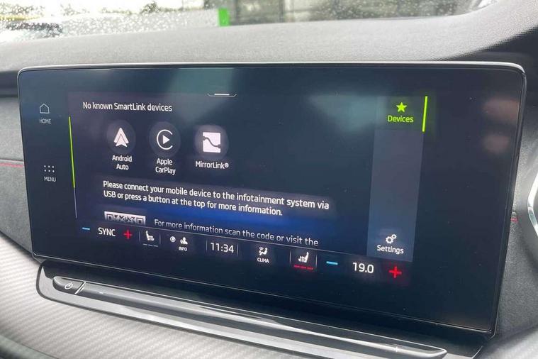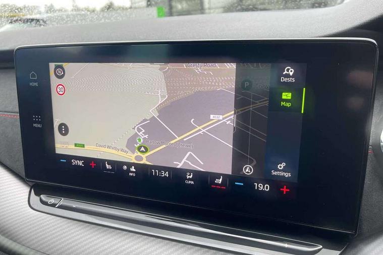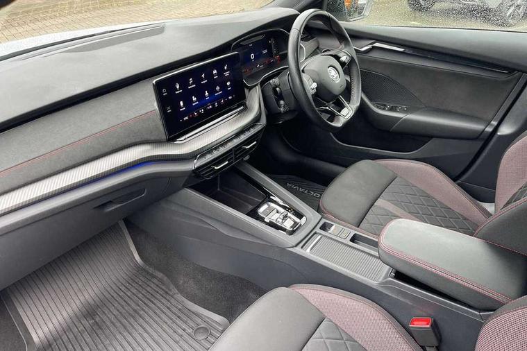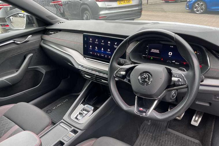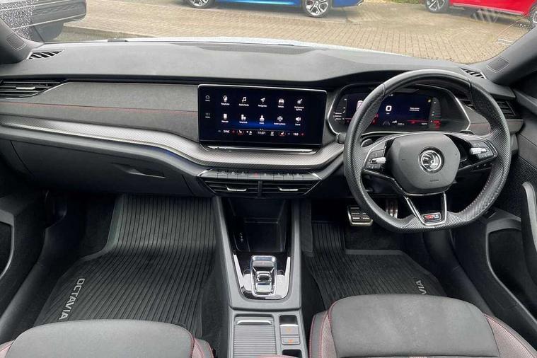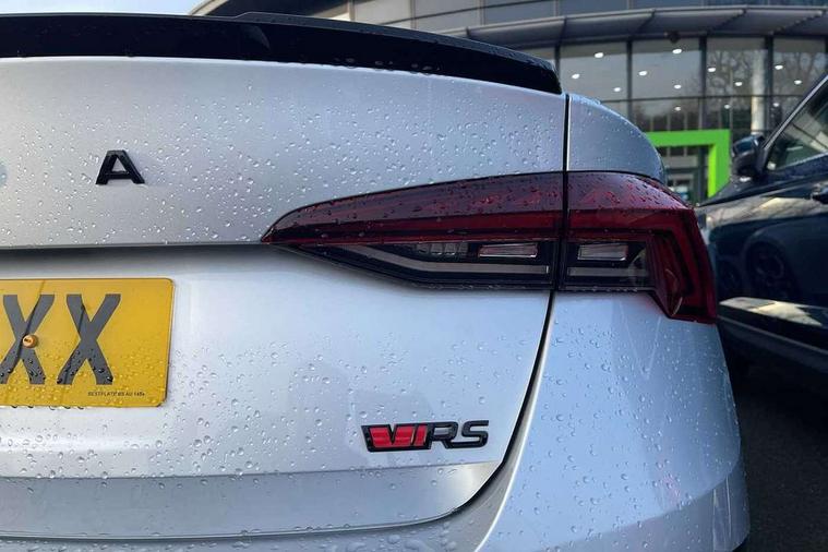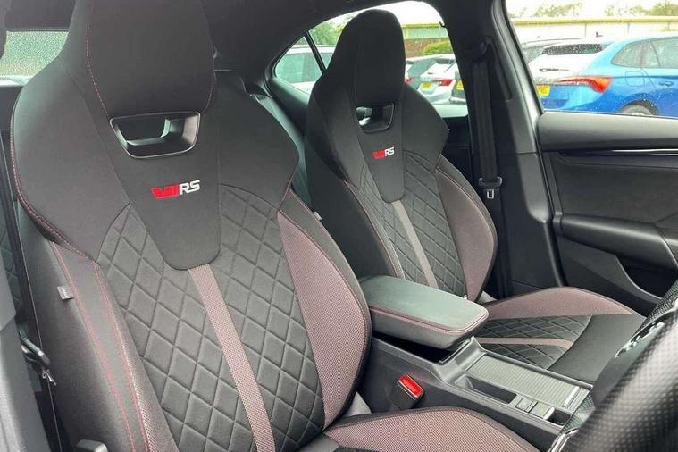 1x USB Type C port in rear view mirror (charging only), 2x USB Type C ports in rear of front centre armrest (charging only), Bluetooth system, Columbus satellite navigation with 10" touchscreen display, Driver fatigue sensor, eCall emergency system, Front and rear parking sensors with manoeuvre assist, Front assist system, Progressive dynamic steering, Speed limiter, Turn Assist, Virtual Cockpit - 10.25" digital display, Virtual pedal with electrically operated boot door (Rear LED lights (high functionality), dynamic indicators, Voice control system, Wireless SmartLink for Apple Car Play, Electronically controlled limited slip differential, Front and rear stabilizers, 2x USB Type C ports (for charging and data transfer), 8 Speakers, DAB Digital radio, Aero front windscreen wipers with intermittent function, Auto dimming rear view mirror, Body colour door handles, Chrome exhaust tailpipes, Door sills with vRS logo, Electric front and rear windows, Exterior gloss black sports styling including front grille, side strip, window surrounds, door mirror and badging, Full LED Matrix headlights with AFS, rear LED lights (high functionality) and dynamic indicators and cornering front fog lights, Headlight washers, Heated rear windscreen, High level third brake light, Ice scraper in fuel cap, LED daytime running lights, Rain and light sensors, Rear fog light on one side, Rear privacy glass, Rear side wing doors, vRS bumpers and lip spoiler, 3 rear headrests, 3 seat bench in 2nd row, 4 foldable roof handles, Aluminium pedals, Black headlining, Black microsuede padded dash panel with red contrast stitching, Chrome inner door handles, Front centre armrest, Front head restraints, Heated front seats, Illuminated glovebox, Leather trimmed gearshift lever, Luggage compartment lighting x1 light, Mechanical rear seat release, Parcel shelf - folding, Single front passenger seat, Sunglasses storage, Textile floor mat set, Three spoke leather sports multifunction steering wheel with paddles, Ticket holder, Umbrella in door panel, Unsplit rear bench seat and split folding backrest, LED interior light pack - Octavia, 3 point front/outer rear seatbelts+pre-tensioners, Alarm with interior monitoring, tilt sensor and back up horn, Automatic door unlocking in case of crash, Automatic fuel cut off in case of crash, Automatic warning lights in case of emergency braking, Curtain airbags and front side airbags, Driver and front passenger airbags, Drivers knee airbag, Electronic parking brake, ESC including ABS, EBV, MSR, ASR, EDS, HBA, DSR, Front and rear disc brakes, Front central airbag, Hill hold control, Hill start assist, ISOFIX on front passenger seat and outer rear seats, Manual rear child locks, Passenger airbag deactivate switch, Pro active services, Red brake calipers, Two tone horn, Tyre pressure monitor, Visual and acoustic seat belt reminder, Warning reflectors in front door, Door locks with immobiliser, Keyless entry and start/stop including rear doors, Remote central locking, Carbon optic decorative inserts, Gloss black air vent surrounds, 19" Altair anthracite alloy wheels,