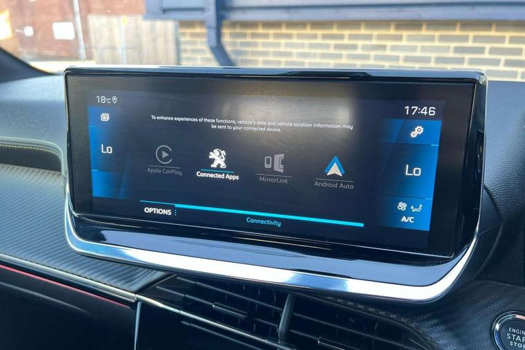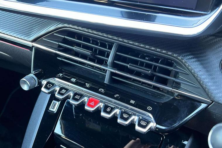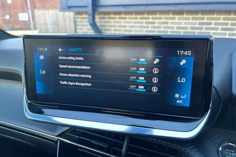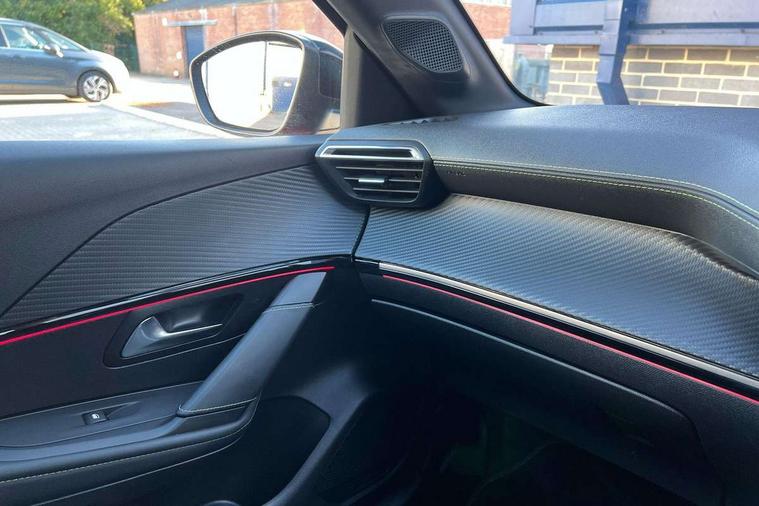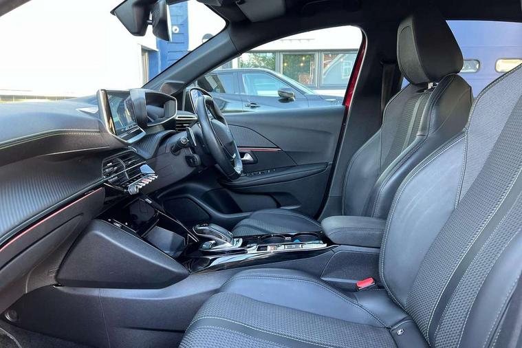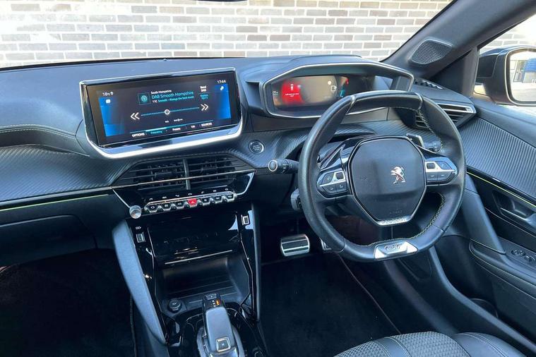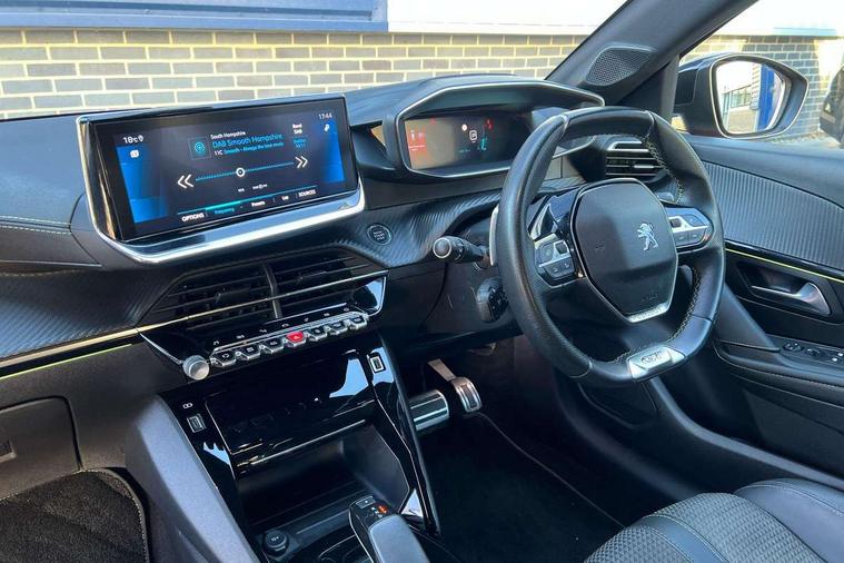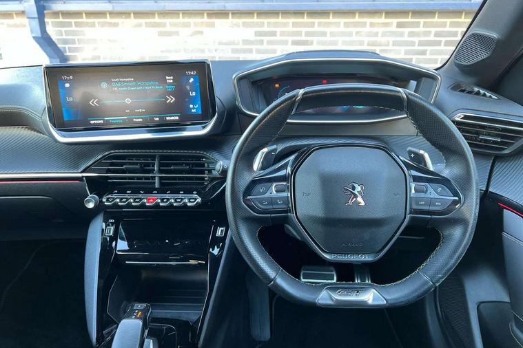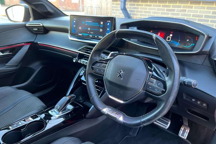 Bluetooth telephone facility, Driver attention warning, Exterior temperature indicator with ice warning, Front and rear parking sensors, Mirror screen with mirror link, apple carplay and android auto, Multi function trip computer, PEUGEOT i-Cockpit with compact steering wheel, PEUGEOT i-Cockpit with configurable 3D headup instrument panel, PEUGEOT SOS and assistance, Push button start, Smart phone docking station, Smartphone charging plate, Speed limit recognition and recommendation, Visio Park 1 with 180 degree Colour reversing camera, 2 front USB socket with USB-C, 2x USB sockets in rear, 6 speakers radio with mp3 compatible, DAB Digital radio, Voice recognition for radio, navigation and telephony features, 2 X Rear number plate lights, Automatic hazard light activation upon heavy brake application, Automatic lights, Automatic windscreen wipers, Body coloured exterior door handles, Dark tinted rear side and tailgate windows, Diamond Black roof, Electric front windows + one touch + anti-pinch, Electric rear windows with one touch/anti-pinch, Electrically adjustable, heated and power folding door mirrors, Extended diamond black rear spoiler, Follow me home headlights, Frameless electrochrome interior rear view mirror, Front windscreen wiper with magic wash cleaning system, Full LED headlights with smartbeam assist, Gloss black finish on B pillar, Gloss black rear cluster connecting strip, Gloss black wheel arch extensions, Gloss black window surround, GT Line model designation badging on C pillar, GT Line model designation badging on tailgate, Headlights left on audible warning, LED daytime running lights with 3 claw headlight with distinctive tooth design, LED side indicator lights integrated into door mirrors, Model designation badges front and rear, Nera black door mirror shells, Radiator grille - Dark chrome chequered and gloss black edge trim, Rear bumper with gloss black finish, Rear full LED 3D peugeot signature claw effect lights with daylight function, Rear lower bumper diffuser effect trim in gloss black, Rear reversing lights, Rear windscreen wiper triggered automatically in reverse gear, Stainless steel door sill scuff plates, Tailgate with heated rear windscreen and wiper blade, Twin chrome exhaust tailpipes, 1/3 to 2/3 split folding rear seats, 12V socket, 8 Colour personalisable ambient lighting, Aluminium pedals and foot rest, Automatic gear lever in full grain leather and satin chrome, Driver and front passenger seat manual adjustment in longitudinal and back rest angle, Driver and front passenger seat mechanical height adjustment, Driver and front passenger sport seats, Dual zone electronic climate control, Electric power steering with reach and rake adjustable steering column, Front and rear carpet mats in black with lime green stitch detail, Front centre armrest with storage compartment, Front LED interior light with 2 reading spotlights and rear interior light with timer, High centre console with 2 cup holders, ISOFIX child seat mounting points on passenger seat, Lime green contrast stitching to armrest, front centre console, door panels and dashboard facia, Map pockets on the backs of the front seats, Mistral full grain perforated leather steering wheel with aikinite stitch detail and satin chrome 'GT' emblem, Piano keys gloss black plated toggle switches to access main functions of the vehicle, Roof lining - Mistral black, Seatbelt unfastened on the move audible and visual alert for front and rear seats, 2x 2nd row ISOFIX child seat mountings, 3 rear 3 point seatbelts, ABS (Anti-lock Braking System) with EBD (Electronic Brakeforce Distribution) and EBA (Emergency Braking Assistance), Active safety brake with night function/cyclists/pedestrians, Child locking functionality on rear doors, Driver and passenger airbags with Passenger airbag deactivation system, Driver/front passenger side airbags, Electric parking brake, ESP with Hill Assist, Front and rear curtain airbags, Front and rear disc brakes, Front optimised safety headrests and 3 x rear retractable headrests with height adjustable, Front three point retractable seatbelts with force limiters, Tyre pressure sensor, Automatic door locking when moving off, Deadlock, Electronic code immobiliser, Thatcham Cat.1 alarm, Carbon effect Dashboard, front and rear door panel finish, 17" Camden diamond cut two tone alloy wheels, Space saver spare wheel,