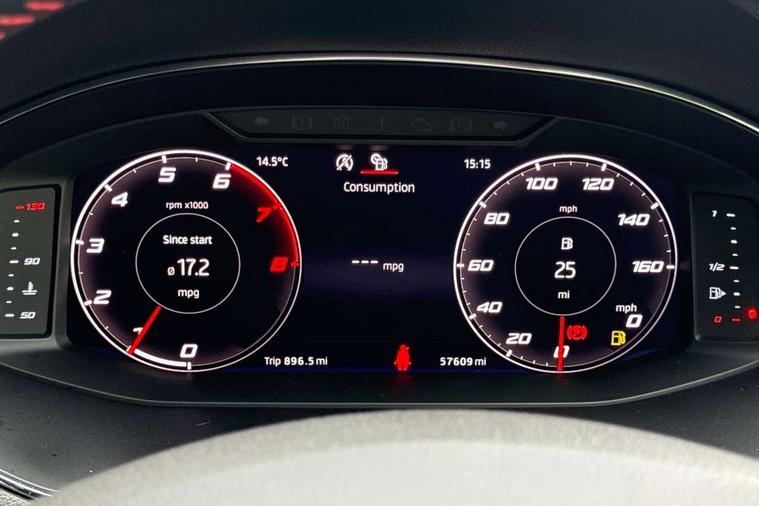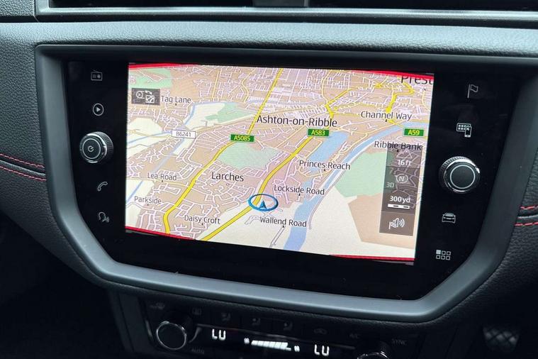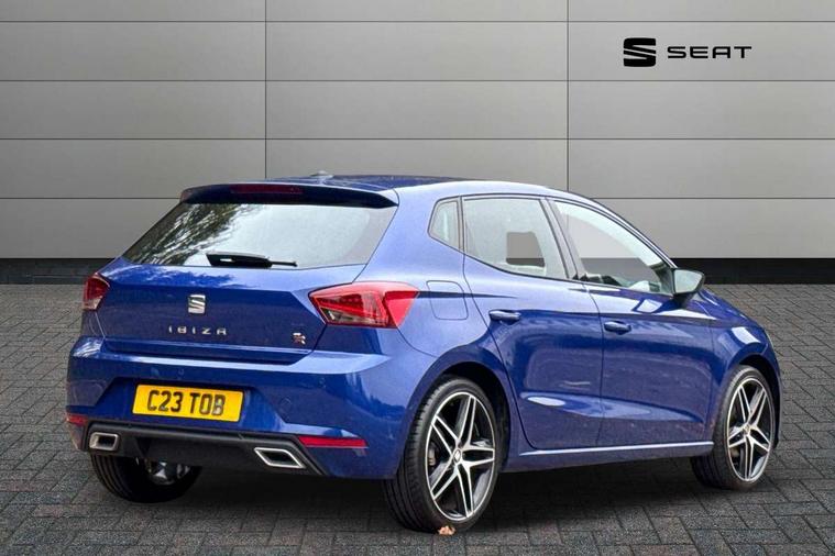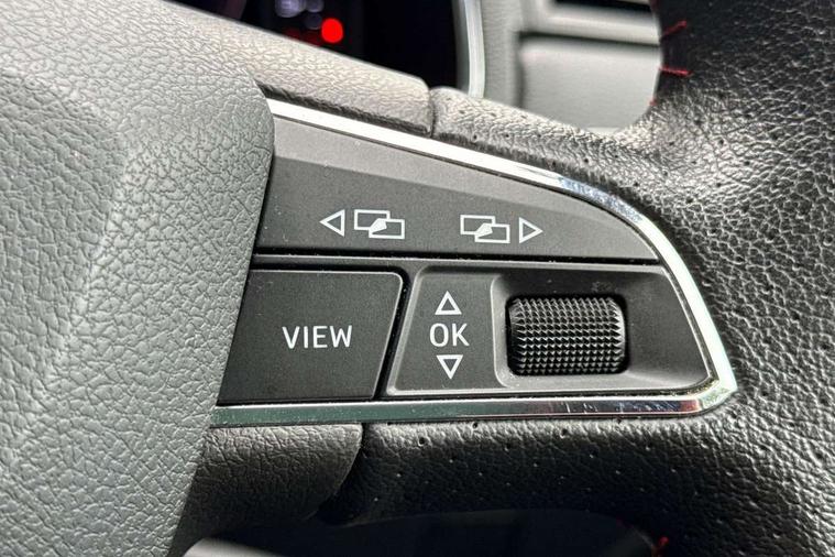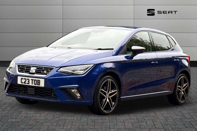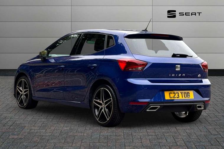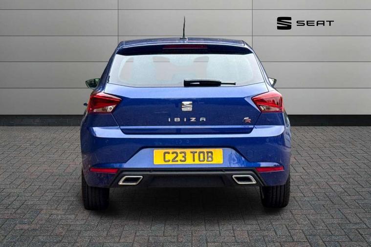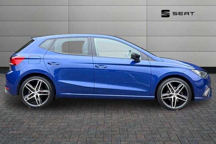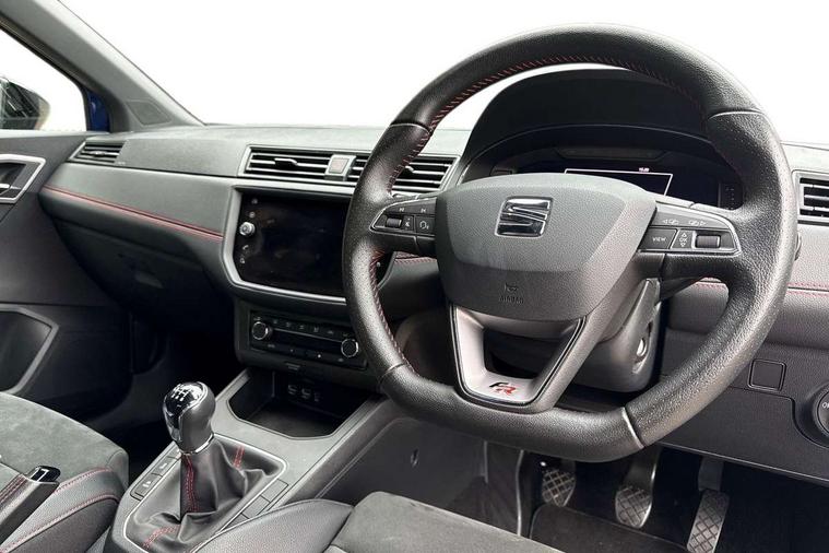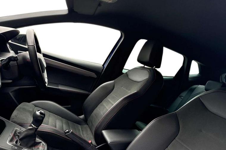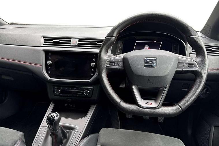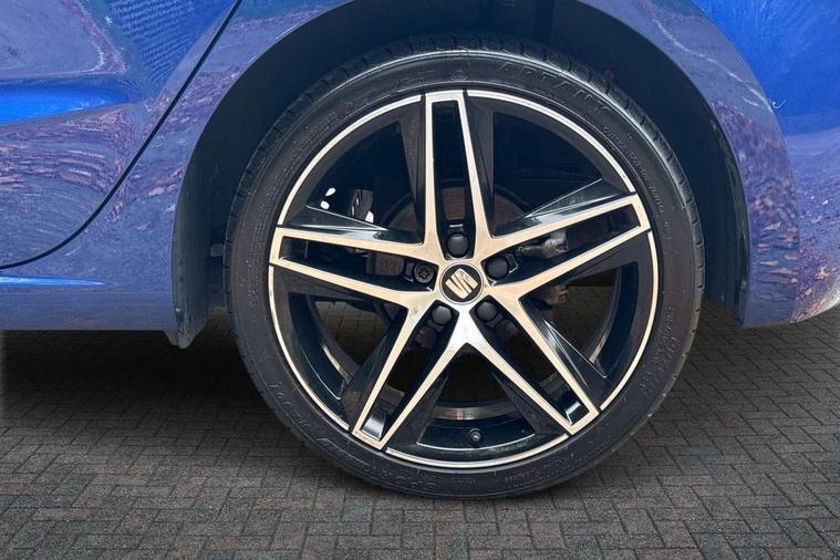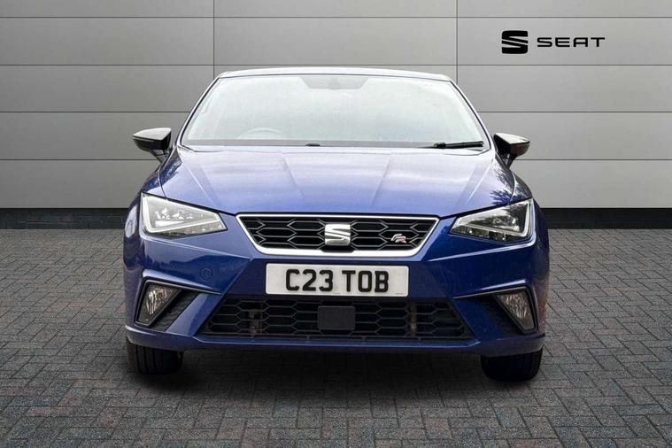 'Lights On' Reminder warning buzzer, Bluetooth Handsfree Phone Connection, Cruise control, Digital clock, Digital cockpit, Full Link Smartphone Integration with Mirror Link, Apple Car Play, Google Android Auto, Low fuel warning light, Outside temperature gauge, Power Steering, Satellite navigation system with 3D mapping, 8" touch screen, voice control and additional USB port, SEAT Drive profile, SEAT logo boot release, Trip computer, Sports suspension, 6 speakers, Auxiliary input socket, CD player, Digital Audio Broadcast (DAB) Tuner, Radio/MP3 player, SD card slot, SEAT USB media cable, Steering wheel mounted controls, USB port, Anti theft roof antenna, Auto dimming rear view mirror, Automatic headlights, Automatic rain sensing wipers, Body colour bumpers, Body colour door handles, Brilliant black door mirrors, Chrome front grille frame, Chrome grille, Coming/leaving home lighting function, Cornering front fog lights, Dark tinted rear windows, Electric folding door mirrors, Electric front windows, Electric headlight adjustment, Electrically adjustable and heated door mirrors, Exclusive FR rear bumper, Full LED headlights, LED daytime running lights, LED tail lights, Rear fog lights, Twin exhaust pipes, 3 rear headrests, 60/40 split folding rear seat, Door and steering wheel ice metal decorative inserts, Driver's sunvisor with ticket holder/vanity mirror, Dual zone climate control, Dust/pollen filter, Flat bottomed perforated leather steering wheel with red stitching and FR logo, Front courtesy lights, Front cupholders x 2, Front reading lights, Gear shift indicator, Glovebox, Height adjustable driver's seat, Height adjustable front/rear head restraints, Height adjustable passenger seat, Height/reach adjust steering wheel, Illuminated boot, Instrument lighting with brightness control, Leather dashboard, Leather handbrake, Microsuede cloth upholstery, Multi-colour ambient interior lighting, Passenger sunvisor, Rear top tether child seat ISOFIX attachment, Sports seats, Full LED headlight pack - Ibiza, 3 point seatbelts on all 3 rear seats, ABS, Active front headrests, Child locks on rear doors, Curtain airbags, Driver/Front Passenger airbags, ESP+EBA, Front assist (AEB), Front passenger airbag deactivation, Front side airbags, Hill hold control, Multi-Collision braking, Rear disc brakes, Seatbelt warning, Tiredness recognition system, Tyre pressure monitoring system, Electronic engine immobiliser, Locking wheel bolts, Remote central locking + deadlocks, Volumetric alarm with back up horn, 18" Performance machined bi-colour alloy wheels,