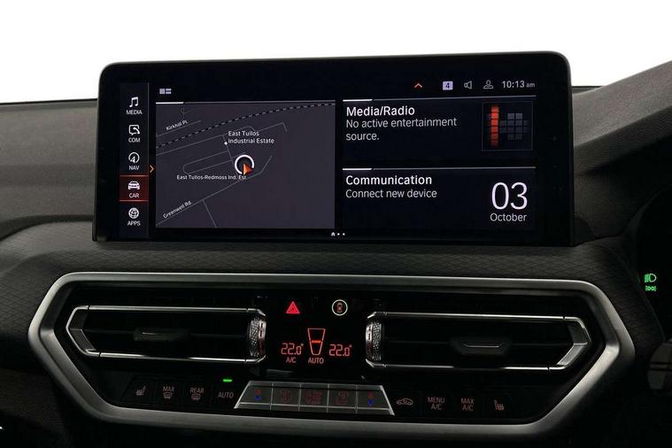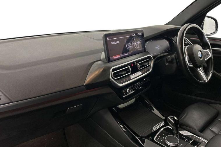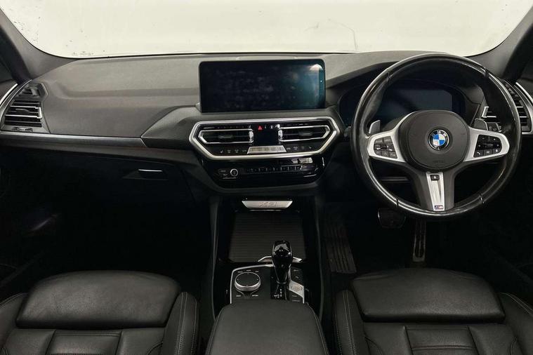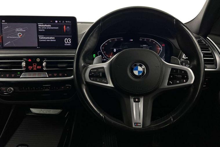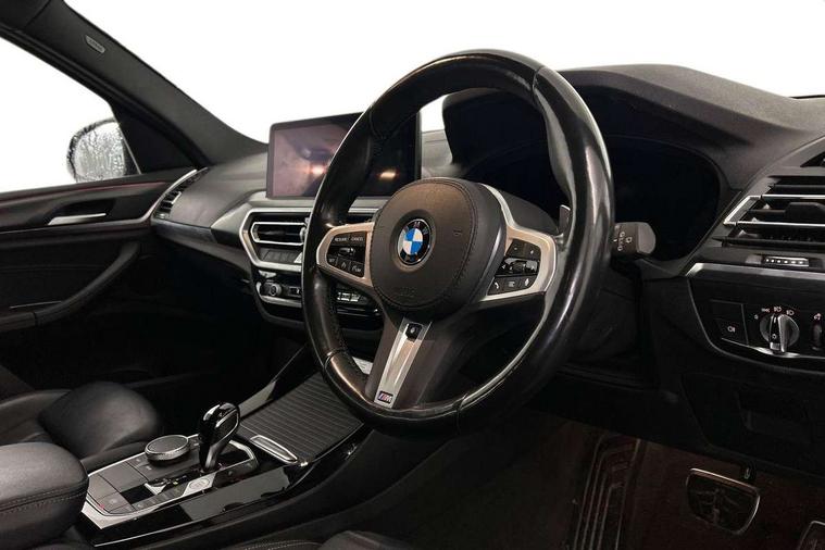 Active Guard, Attentiveness assist, BMW Live Cockpit Professional nav system including 12.3" instrument display + 12.3 high resolution control display, BMW Online services, BMW Teleservices, Brake pad wear indicator in front and rear, Check Control warning system for monitoring of lights and door/luggage compartment open warning, Condition based service - BMW service history, electronic service booklet, integrated owner's handbook, Connected drive services, Cruise control with brake function + speed limiter, Electric boot lid, Front/rear Parking distance control, iDrive Controller with 8 favourite buttons, Instrument cluster with speedometer with mph readout, tachometer, fuel gauge and oil temperature gauge, Lights on warning by audio warning signal when ignition is switched off, Oil sensor for level and grade, warning by check control system, On board computer - average speed+fuel consumption, service interval, clock/date, odometer/trip meter, outside temperature display and ice warning, Optimum shift indicator, Personal Profile - automatic lock when driving away selectable, Stop/start system, Variable sports power steering, Automatic transmission with gearshift paddles, Drive performance control with ECO PRO comfort + sport mode, Incorrect fuelling protection, M sport suspension, Multi-link rear suspension, Performance Control, BMW professional radio/CD/MP3, DAB tuner, Acoustic glazing, Automatic windscreen wipers and automatic headlight, Black finish on B pillars, Body colour door handles, Body colour electric adjust heated aspherical door mirrors, Body colour roof mouldings, Body coloured bumpers, Direction indicator, side repeaters, integrated in exterior mirrors, Dynamic brake lights, Exhaust tailpipes - dual, round, split left and right with chrome finisher, Fingertip control / anti-trap function on electric window, Folding wing mirrors with auto dimming, Follow me home headlights, Front and rear bumper system with replaceable deformation elements, Front and rear electric windows, Gloss chrome tailpipes finishers, Green tinted heat insulating glass, Heated windscreen washer jets, High beam assistant, High gloss black shadow line roof rails, High gloss shadowline exterior trim in decorative moulding side frame/recess cover/guide rail/B, C pillars/mirror frame and triangle with mirror base, High level 3rd brake light incorporating LED Technology, Interior rear view electrochromatic mirror with automatic anti dazzle function, LED tail lights, Lightweight engineering, M aerodynamic bodystyling, Model designation, Rear side wing doors, Rear wing door, Rear wiper, Shark fin antenna, Side exterior M designation badges, Visible VIN plate, Welcome lighting, Windscreen wipers with adjustable interval, 12V power socket in front centre console, 3 rear headrests, 3 zone automatic air conditioning, 4 lashing points to secure luggage, 40:20:40 split folding rear seat with loading system, 5 seats, Ambient lighting, Anthracite headlining, Automatic interior light when door is opened/ignition switched off or via remote key, Foldable storage floor with compartment, Four grab handles integrated in roof lining, Front and rear bottle holders integrated into door trim storage compartments, Front and rear side armrests integrated into door trim, Front centre armrest with storage compartment, Front footwell lights, Front head restraints, Front sports seats, Front/rear courtesy lights with soft on/off dimming, Front/rear reading lights, Heated front seats, Isofix rear child seat preparation, Leather gear knob, Luggage area underfloor compartment, Luggage compartment lighting, M sport leather steering wheel, Multifunction steering wheel, Parcel shelf removeable and storable under boot floor, Reach and rake adjustable steering column, Rear centre armrest with 2 cupholders, Removable / retractable luggage cover, Seat backrest width adjustment, Slope adjustable rear seats, Storage compartment in rear centre console and front/rear door trims, Sun visors with vanity mirrors and ticket pocket, Toolkit located in luggage compartment, Two front cupholders with removable oddments tray/lid, Vernasca leather upholstery, Connected pro pack - X3, Driving assistant pack - X3, ADB - Automatic Differential Brake, Anti-lock braking system (ABS) with brake assist, Automatic Stability Control (ASC), Battery safety cut-off, BMW emergency call, Brake drying, Brake energy regeneration, Braking pre-tensioning, Child locks on rear doors, Cornering brake control (CBC), Crash Sensor - activation of central locking release, hazard warning light and interior lighting, Deactivation of fuel pump in the event of a crash, Driver and front passenger front and side airbags with passenger deactivation and ITS front and rear head airbags, DSC+, Dynamic brake control, Dynamic Traction Control - DTC, Electromechanical parking brake, Hill descent control, Hill start assist, Seatbelt security check for front seats, Side impact protection, Three point seatbelts to all seats with front and outer rear pyrotechnic belt tensioners and seat belt force limiters, Two tone horn, Tyre pressure sensor, Ventilated front and rear disc brakes, Warning triangle and first aid kit, Central locking switch for all doors, fuel filler cap and luggage compartment, Electronic engine immobiliser, Locking wheel nuts, Remote control including two integrated key - one button for open/close all lockable content, windows and separate button for open luggage compartment, Remote control Thatcham category 1 alarm, Start/stop button with Comfort Go keyless engine start and auto Start/stop deactivation button, Low rolling resistance tyres,