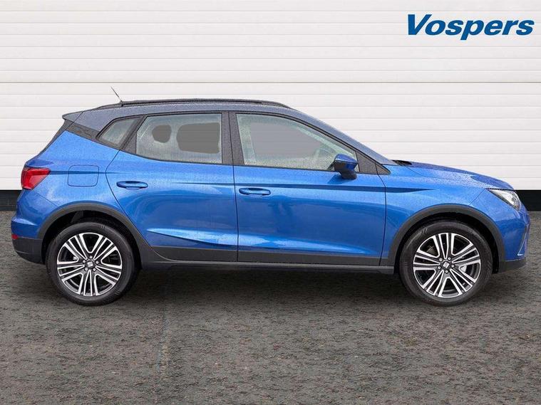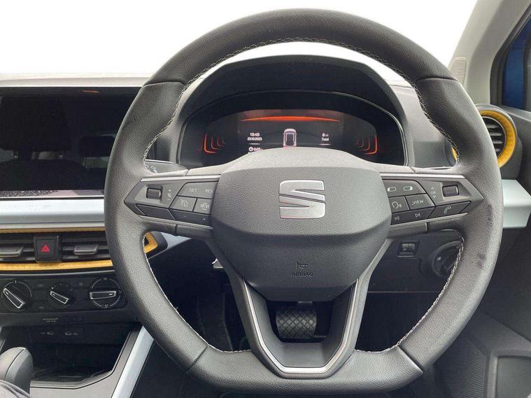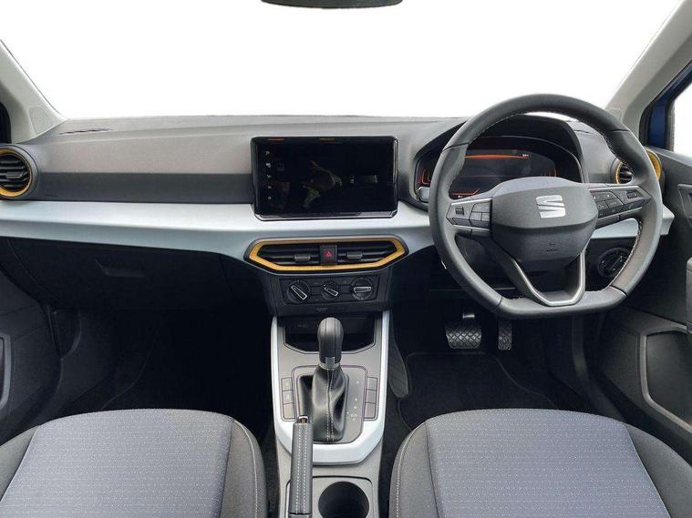 'Lights On' Reminder warning buzzer, 8" Digital cockpit, Cruise control and speed limiter, Digital clock, E-call, Electric speed sensitive power steering, Full link smartphone integration with mirror link, wireless apple carplay, Google android auto + USB Type C cable for apple and android devices, Lane keeping system, Low fuel warning light, Outside temperature display, RPM counter, Trip computer, Wireless phone charger, 9.2" colour touchscreen with navigation system, voice control and USB port (type c), Bluetooth interface for hands free and audio streaming, DAB digital radio and AM/FM radio, Steering wheel mounted audio controls, Anti theft roof antenna, Automatic activation of hazard warning lights, Black roof rails and window surrounds, Body coloured bumpers, Body coloured door handle inserts, Body coloured door mirrors, Dimming rear view mirror, ECO LED automatic headlights and LED daytime running lights, Electric adjustable door mirrors, Electric front/rear windows, Hidden exhaust pipe, LED rear tail lights and licence plate lights, Licence plate lights, Protective side mouldings, Rain sensing wipers, Rear fog lights, Rear side wing doors, Rear spoiler, Rear window wash/wipe, Third brake light, Visible VIN plate, 2 cupholders, 3 seat bench in 2nd row, 60/40 split folding rear seat, Air conditioning, Cloth upholstery, Double boot floor, Driver sunvisor with covered mirror + card holder, Dust/pollen filter, Gear shift indicator, Grey interior air vents, Grey interior roof, Height adjustable front seats, Height/reach adjustable steering column, Illuminated boot, Instrument lighting with brightness control, ISOFIX points in outer rear seats with top tether anchorage points, Leather steering wheel/gear knob/handbrake, Passenger sunvisor with vanity mirror, Potentiometer, Single front passenger seat, Two front and three rear height adjustable headrests, Interior chrome pack - Arona, Safe and driving pack (S) - Arona, 3 point seatbelts on all rear seats, ABS, Active front headrests, Child locks on rear doors, Driver and front passenger airbags with front passenger airbag de activation, front side and curtain airbags, Emergency Brake Assist (EBA) and front assist, Forward collision warning and autonomous emergency braking, Front and rear seatbelt reminder, Hill hold control, Multi-Collision braking, Tiredness recognition system, Traction control, Tyre pressure monitoring system, Deadlock, Electronic engine immobiliser, Locking wheel bolts, Remote central locking, Titan black dashboard, 17" Dynamic machined alloy wheels,