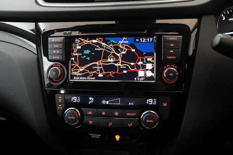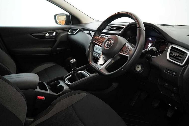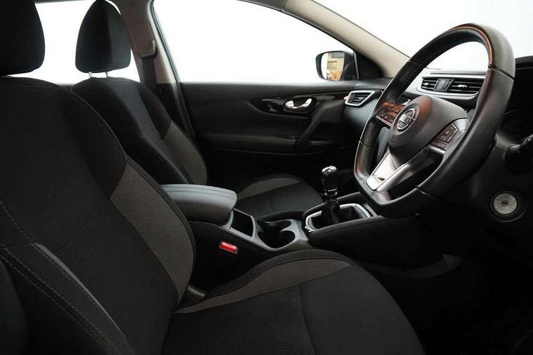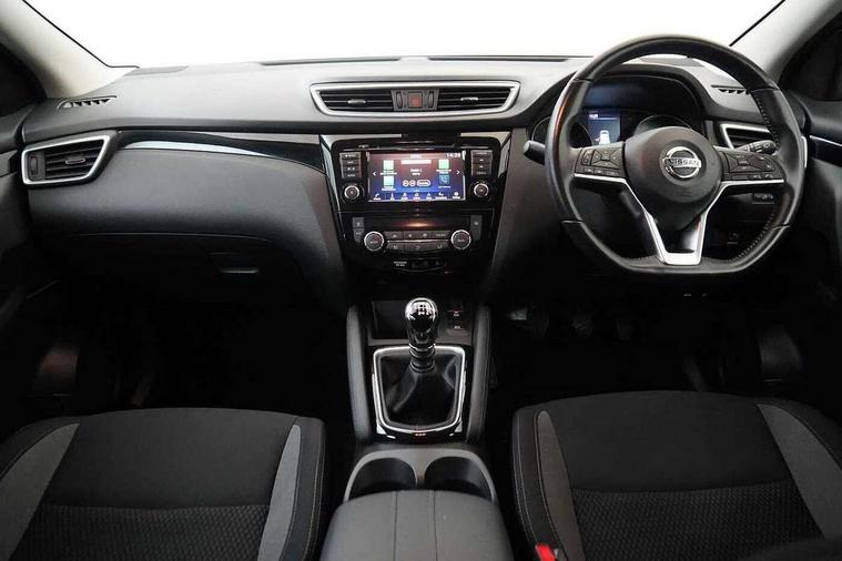 Advanced drive assist display 5'' TFT coloured screen, Android Auto, Apple CarPlay preparation, Bluetooth connectivity, Cruise control + speed limiter, Electric speed sensitive power steering, Front parking sensors, Lane departure warning system, Nissan connect evo 7" touchscreen navigation and entertainment system, Normal or sport selectable steering, Outside temperature sensor, Rear parking sensors, Rear view camera, Service interval indicator, Smartphone integration, Stop/start system, Tomtom connected services, Traffic sign recognition, Trip computer, Voice control system, Nissan chassis control (intelligent ride control, intelligent trace control, intelligent engine brake), 6 speakers, AM/FM radio, CD audio system, Aux-in socket, DAB Digital radio, Steering wheel mounted audio controls, USB port, Anti dazzle rear view mirror, Auto wipers, Body colour bumpers, Body coloured door handles, Body coloured door mirrors, Chrome window surround, Daytime running lights dip function when turn signal applied, Electric folding door mirrors, Electric front and rear windows with one touch illuminated window controls, Electric front/rear windows, Electrically adjustable door mirrors, Front fog lights, Halogen headlights, Heated door mirrors, High beam assist, Intelligent auto headlights, LED indicators in door mirrors, Rear roof spoiler, Rear wiper with reverse link, Shark fin antenna, Signature LED daytime running lights, Underbody vortex generators, 2 X front 12v power sockets, 3 height adjustable rear headrests, 60/40 split folding rear seat, Ambient lighting in centre console, Boot lighting, Centre console storage box/armrest, Chrome interior door handles, Cloth upholstery, Driver's seat manual height adjust, Dual zone climate control, Front and rear door pockets with bottle holders, Front and rear seat belt pre-tensioners with load limiters, Height adjustable front headrests, ISOFIX on outer rear seats, Leather D shaped steering wheel, Leather gear lever, Leather knee pad, Manual height adjustable front passenger seat, Manual lumbar support on driver seat, Parcel shelf stow function under luggage board, Pollen filter, Rear armrest with 2 cupholders, Tilt/telescopic adjustable steering wheel, 6 airbags - Driver, front passenger, curtain and side airbags, ABS, ESP, EBD and brake assist, Auto hold function, Child locks on rear doors, Electronic parking brake, Front and rear seat belt warning, Front passenger airbag deactivation, Height adjustable front seatbelts, Hill start assist, Intelligent emergency braking with pedestrian recognition, Three 3 point rear seatbelts, Tyre pressure monitoring system, Anti-theft immobiliser, Remote central locking, Thatcham Cat.1 alarm, Piano black dash trim, 17" Alloy wheels, Tyre puncture repair kit,