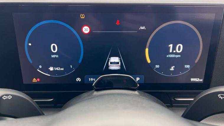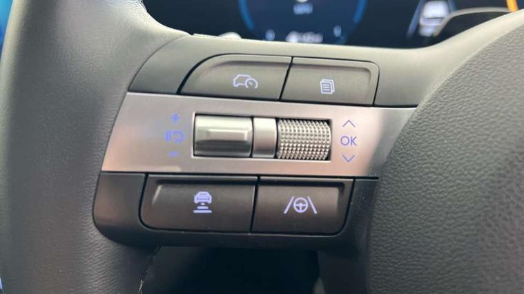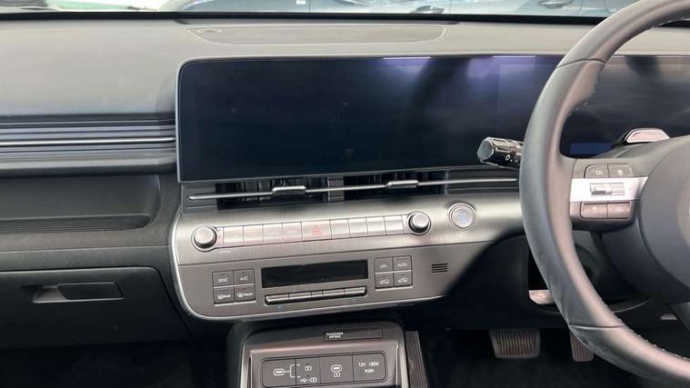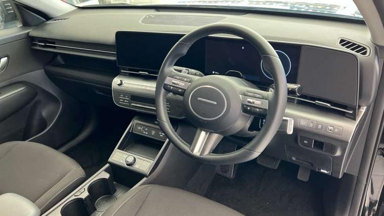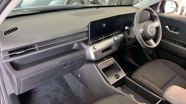 12.3" touchscreen centre console display satellite navigation with bluelink, live services and mapcare, Bluetooth connectivity with voice recognition, Digital clock, Driver status monitor (DSM), Driver supervision instrument cluster with 12.3" LCD display, eCall emergency call system, Feature on demand - Enabled, Forward collision avoidance assist (FCA 1.5) - Car, pededstrian, cycle and junction turning, Front parking sensor, HDA - Highway Drive Assist Level 1.5, Intelligent speed limit assist, Lane follow assist, Lane keep assist, Leading vehicle departure alert (LVDA), Parking system with rear camera and guidance system, PAS, Rear parking sensor, Roadside assistance, Smart cruise control with stop and go functionality, Windscreen washer fluid sensor and warning indicator, Wireless Smartphone Integration includes Apple CarPlay and Android auto, 2 front USB C and 2 rear USB C charging points, DAB Digital radio, Speakers - Front, rear and tweeters, Steering wheel audio, phone and cruise controls, Auto dimming rear view mirror, Automatic headlights with dusk sensor, Automatic windscreen wipers with rain sensor, Black painted wheel arch inserts, Body colour bumpers, Body colour exterior door handles, Body coloured door mirrors, Door mirror LED indicator lights, Electric front windows with anti-trap mechanism and one touch control, Electric rear windows, Electrically adjustable and heated door mirrors, Full LED MFR headlights, LED daytime running lights, LED upper and lower rear lights, Power folding door mirrors, Rear roof spoiler with integrated LED brake light, Rear side wing doors, Rear skid plate - silver, Rear wiper, Roof rails, Tinted glass in front and rear doors, Windscreen auto defog function, 12V power outlet in front console, 2 zone climate control, 3 seat bench in 2nd row, 60/40 split folding rear seat, Adjustable head restraints, Cloth upholstery, Driver and passenger front seat pockets, Driver's seat lumbar support, Driver/passenger manual seat height adjustment, Driver/passenger sunvisors and illuminated vanity mirrors, Floor mats, Height/reach adjustable steering column, Isofix rear child seat fastenings, Leather wrapped steering wheel, LED centre interior light, LED front interior light, Luggage compartment LED lighting, Luggage shelf, Metal paint effect interior door handles, Parcel shelf, Rear centre armrest with cupholders, Rear centre console with air vents, Shift by wire SBW, Single front passenger seat, Vertical adjustment rear head restraints, Trailer wiring package - Kona, Airbag - front, front side, curtain and centre front airbag, Anti-lock brake system (ABS), Childproof rear door locks, Downhill brake control, EBD + Brake Assist, Electric parking brake, Electronic stability control, Fasten seatbelt reminder, Fixed 3 point for second row centre passenger seatbelt, Front seatbelt pretensioners, Height adjustable front seatbelts, Hill start assist control (HAC), Passenger airbag deactivate switch, Rear seat alert, Traction control, Tyre pressure monitoring system, Alarm/immobiliser, Deadlocks, Folding key, Locking wheel nuts, Rear occupant alert, Remote central locking, Smart key with keyless entry and start/stop button, Five year annual vehicle health checks, 17" Alloy wheels, Temporary mobility kit (TMK),