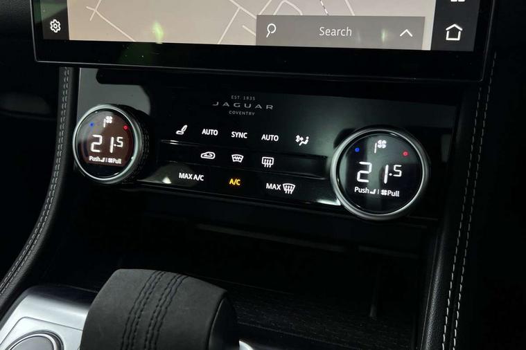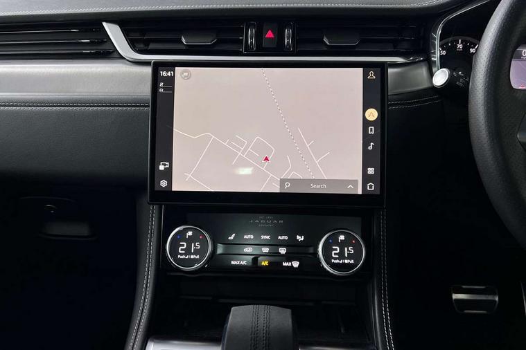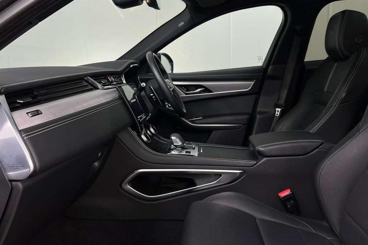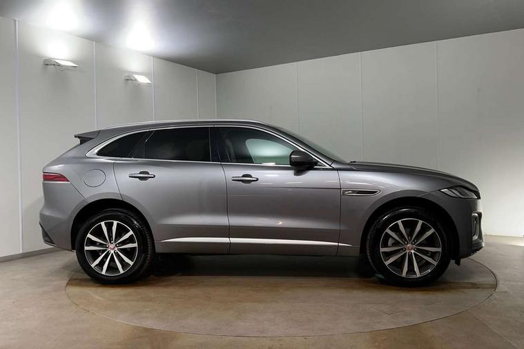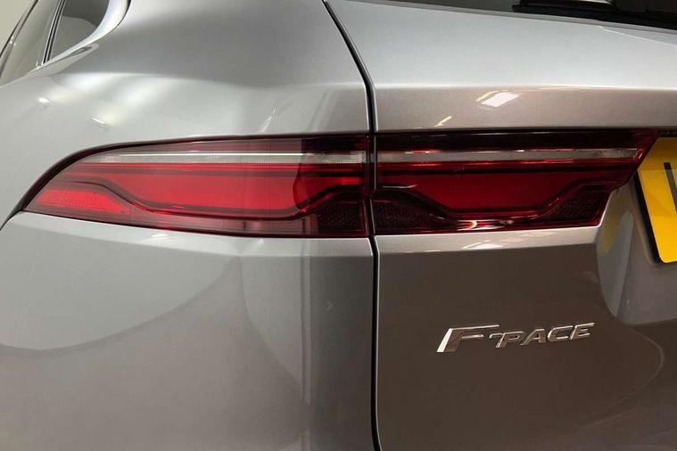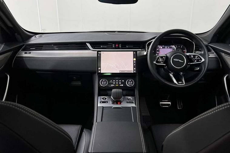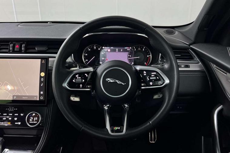 11.4" touchscreen, Android Auto, Apple car play, Blind spot assist, Bluetooth connectivity, Clear exit monitor, Driver alert system, Driver condition monitor, eCall emergency call system, Eco driving style assistant, Electric power assisted steering, InControl remote, Jaguar Toggle shift selector, Lane departure warning system, Lane keep assist, Outside temperature gauge, Personalisation profile management, Pivi pro connected navigation system with app interface and media storage, Pro services and wifi hotspot, Push button starter, Rear traffic monitor, Service interval indicator, Speed proportional steering, Start up sequence with movement in dials and lighting, Traffic sign recognition with adaptive speed limiter, Trip computer, Voice control system, 8 speed automatic transmission, All terrain progress control, All Wheel Drive (AWD), Open differential with torque vectoring by braking, AM/FM radio, Bluetooth streaming, DAB Radio (Digital Audio Broadcasting), Dynamic volume control, InControl apps, InControl protect, iPod integration, 3 flash lane change indicators, Animated directional indicators, Approach Illumination, Auto dimming rear view mirror, Automatic headlights, Body colour door mirrors, Electric heated/power fold memory door mirrors with approach lights and auto dimming driver side, Electric windows with one touch open/close and anti trap, F-Pace and R Dynamic badge, Green tinted glass, Heated front windscreen + heated washer jets, Heated rear window with timer, Jaguar script and leaper, LED High level third brake light, LED tail lights, Non acoustic front windscreen, R Dynamic badge on side door, Rain sensor windscreen wipers, Rear fog lights, Rear metal tread plates, Rear side wing doors, Rear wiper, Trailer stability assist, Variable front intermittent wipers, 12V power point front, 3 rear headrests, 3 seat bench in 2nd row, Air distribution speed, Bright metal foot pedals, Centre armrest console, Centre console with side storage, Deletion loadspace storage rails, Door sill tread plates, Fold flat front seats, Front centre armrest with storage compartment, Front door storage space, Glovebox finisher with jaguar script, Heated steering wheel, Hooks in loadspace, Illuminated glovebox, Interior front door handles with separate locking switches, ISOFIX on outer rear seats, Jaguar sense, Luggage tie downs in loadspace, Mist sensing, Multifunction steering wheel, Overhead lighting console, Overhead stowage for sunglasses, Passive front head restraints, Premium cabin lighting, Premium carpet mats, R-Dynamic branded leather steering wheel, Rear air vents, Rear armrest with twin cupholders, Rear centre headrest, Rear door storage space, Reversible boot floor, Satin chrome gearshift paddles, Shopping bag hook, Single front passenger seat, Sunvisors with illuminated vanity mirrors, Twin front cupholders with cover, Online Pack with data plan - F-Pace, 355mm front brakes and 325mm rear brakes, 3x3 point rear seatbelts, ABS, All surface progress control (ASPC), Brake pad warning light, DSC - Dynamic Stability Control, Electric parking brake (EPB), Emergency brake assist, Front airbags with passenger seat occupant detector, Front and rear seatbelt reminder, Front side airbags, Full length side window curtain airbag, Hill launch assist, Power operated child locks, Torque vectoring brake, Traction control, Tyre pressure monitoring system, Immobiliser, Keyless entry, Keyless Start, Locking wheel nuts, Perimeter alarm, Remote central locking, Valet mode,