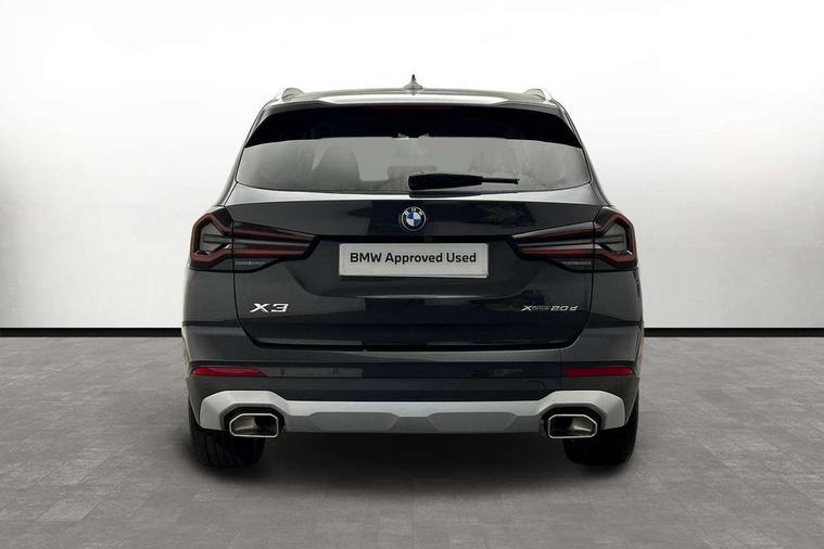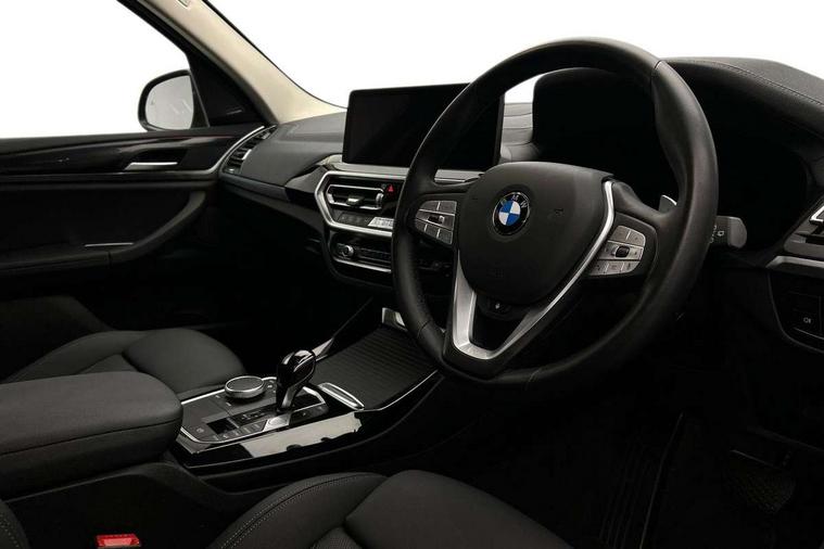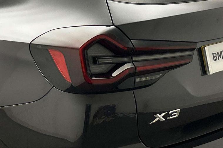 Active Guard, Attentiveness assist, BMW Live Cockpit Professional nav system including 12.3" instrument display + 12.3 high resolution control display, BMW Online services, BMW Teleservices, Brake pad wear indicator in front and rear, Check Control warning system for monitoring of lights and door/luggage compartment open warning, Condition based service - BMW service history, electronic service booklet, integrated owner's handbook, Connected drive services, Electric boot lid, Electric Power Steering (EPS) with Servotronic, Front/rear Parking distance control, iDrive touch controller with 8 favourite buttons, Instrument cluster with speedometer with mph readout, tachometer, fuel gauge and oil temperature gauge, Lights on warning by audio warning signal when ignition is switched off, Oil sensor for level and grade, warning by check control system, On board computer - average speed+fuel consumption, service interval, clock/date, odometer/trip meter, outside temperature display and ice warning, Optimum shift indicator, Personal Profile - automatic lock when driving away selectable, Run flat indicator, Stop/start system, Automatic transmission with gearshift paddles, Diesel particulate filter, Incorrect fuelling protection, Larger capacity fuel tank, Multi-link rear suspension, BMW professional radio/CD/MP3, DAB tuner, Acoustic glazing, Aluminium exterior trim, Automatic windscreen wipers and automatic headlight, Black finish on B pillars, Body colour door handles, Body colour electric adjust heated aspherical door mirrors, Body colour roof mouldings, Body coloured bumpers, Direction indicator, side repeaters, integrated in exterior mirrors, Dynamic brake lights, Exhaust tailpipes - dual, round, split left and right with chrome finisher, Fingertip control / anti-trap function on electric window, Folding wing mirrors with auto dimming, Follow me home headlights, Front and rear bumper system with replaceable deformation elements, Front and rear electric windows, Glacier silver metallic matt in side sills, Gloss chrome tailpipes finishers, Green tinted heat insulating glass, Heated windscreen washer jets, High beam assistant, High level 3rd brake light incorporating LED Technology, Interior rear view electrochromatic mirror with automatic anti dazzle function, LED tail lights, Lightweight engineering, M Sport entry door sill strips, Matt aluminium roof rails, Model designation, Rain sensor, Rear side wing doors, Rear wing door, Rear wiper, Shark fin antenna, Visible VIN plate, Welcome lighting, Windscreen wipers with adjustable interval, xLine exterior styling with underbody protection, 12V power point in luggage area, 12V power socket in front centre console, 2 x USB Type C ports for charging and data transmission (front centre console) and 2 x USB Type C ports for charging (rear centre console), 3 rear headrests, 3 seat bench in 2nd row, 3 spoke sports leather multi-function steering wheel, 3 zone automatic air conditioning, 4 lashing points to secure luggage, 40:20:40 split folding rear seat with loading system, Ambient lighting, Automatic interior light when door is opened/ignition switched off or via remote key, Floor mats in velour, Foldable storage floor with compartment, Four grab handles integrated in roof lining, Front and rear bottle holders integrated into door trim storage compartments, Front and rear side armrests integrated into door trim, Front centre armrest with storage compartment, Front door sill finishers with BMW X-line designation, Front footwell lights, Front head restraints, Front passenger seat, Front sports seats, Front/rear courtesy lights with soft on/off dimming, Front/rear reading lights, Heated front seats, Isofix rear child seat preparation, Leather gear knob, Lockable glove compartment, Luggage area underfloor compartment, Luggage compartment lighting, Parcel shelf removeable and storable under boot floor, Reach and rake adjustable steering column, Rear centre armrest with 2 cupholders, Removable / retractable luggage cover, Sensatec perforated upholstery, Slope adjustable rear seats, Storage compartment in rear centre console and front/rear door trims, Sun visors with vanity mirrors and ticket pocket, Toolkit located in luggage compartment, Two front cupholders with removable oddments tray/lid, Connected pro pack - X3, ADB - Automatic Differential Brake, Anti-lock braking system (ABS) with brake assist, Automatic Stability Control (ASC), Battery safety cut-off, BMW emergency call, Brake drying, Brake energy regeneration, Braking pre-tensioning, Child locks on rear doors, Cornering brake control (CBC), Crash Sensor - activation of central locking release, hazard warning light and interior lighting, Deactivation of fuel pump in the event of a crash, Driver and front passenger front and side airbags with passenger deactivation and ITS front and rear head airbags, Driver and front passenger knee airbag, DSC+, Dynamic brake control, Dynamic Traction Control - DTC, Electromechanical parking brake, Hill descent control, Hill start assist, Seatbelt security check for front seats, Side impact protection, Three point seatbelts to all seats with front and outer rear pyrotechnic belt tensioners and seat belt force limiters, Two tone horn, Tyre pressure sensor, Ventilated front and rear disc brakes, Warning triangle and first aid kit, Central locking switch for all doors, fuel filler cap and luggage compartment, Electronic engine immobiliser, Locking wheel nuts, Remote control including two integrated key - one button for open/close all lockable content, windows and separate button for open luggage compartment, Remote control Thatcham category 1 alarm, Start/stop button with Comfort Go keyless engine start and auto Start/stop deactivation button, Low rolling resistance tyres, Tyre repair kit,