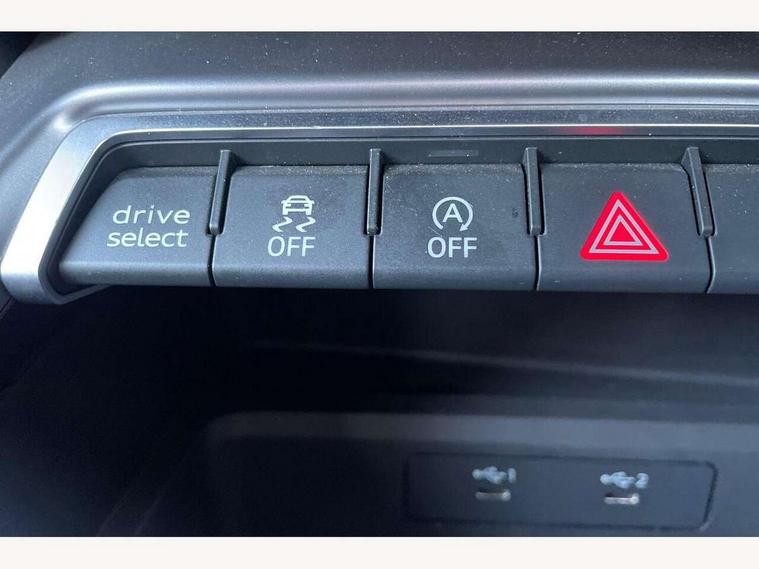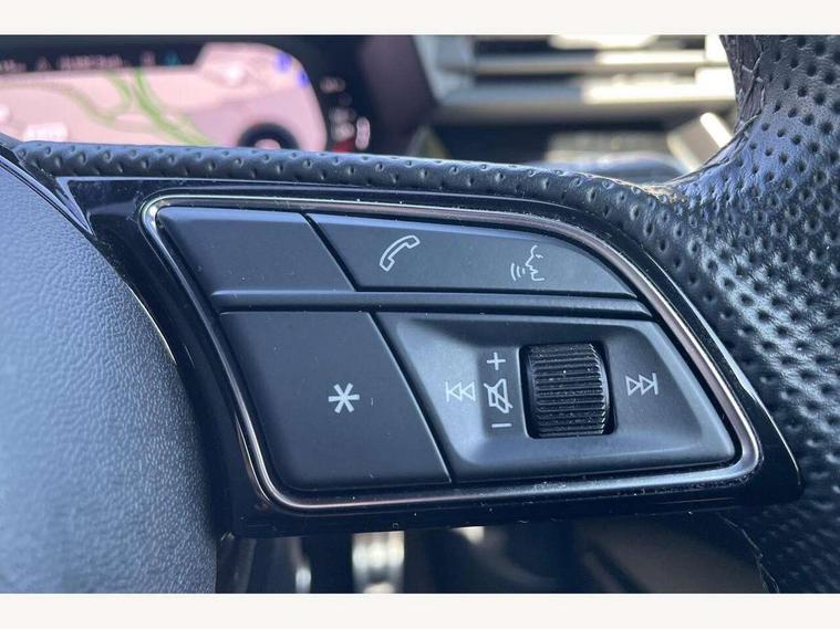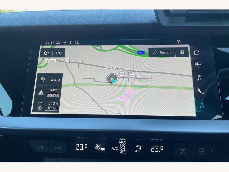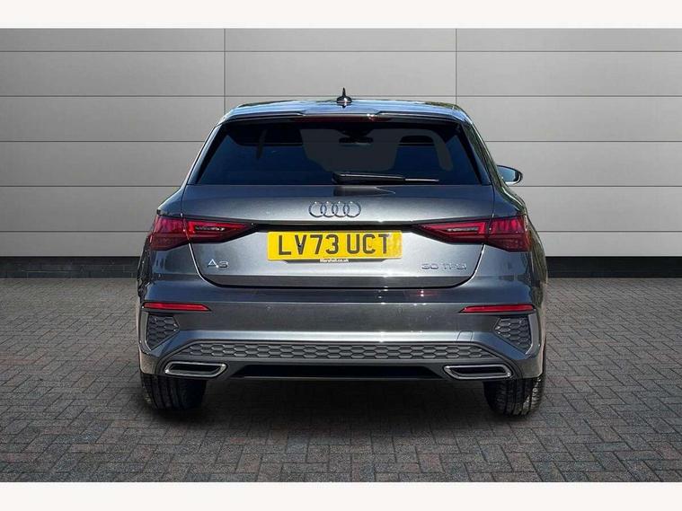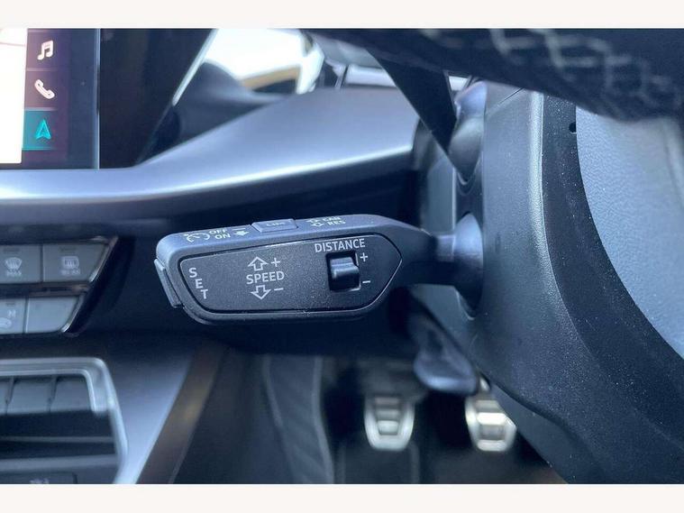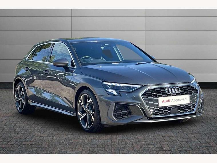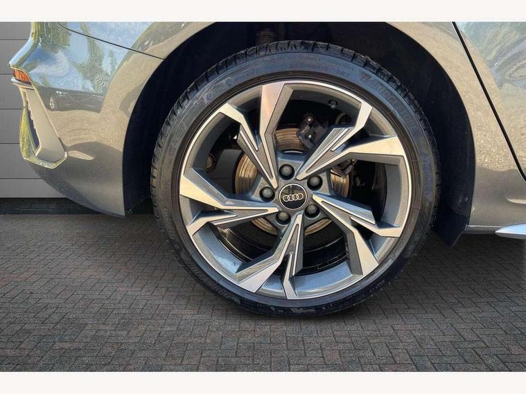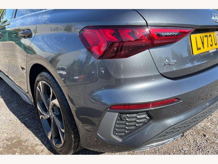 Audi drive select (Auto, Comfort, Dynamic and Individual), Audi smartphone interface, Audi Virtual Cockpit - 10.25" digital and colour instrument cluster, Automatic start/stop system with recuperation, Bluetooth interface, Camera based traffic sign recognition, Collision avoidance assistant, Cruise control, e-Call (emergency call), Electromechanical power speed sensitive steering, Lane departure warning system, MMI Navigation Plus with high resolution 10.1" colour touch screen display, Rear parking sensors, Service indicator, Trip computer, Voice control system with natural language interaction, Sports suspension, 2xUSB-C connection with data and charging functions, 6 passive loudspeakers, DAB Digital radio, 3rd brake light, Acoustic glass windscreen, Aluminium window trim, Auto dimming frameless rear view mirror, Body colour exterior mirrors, Electrically adjustable/heated/folding/auto dimming door mirrors with integrated LED indications + kerb view function for passenger side, Front electric windows, Illuminated door sills with aluminium inserts at the front with S logo, LED daytime running lights, LED headlights with LED rear lights and dynamic rear indicators, Light and rain sensors, Privacy glass - dark tinted rear window, rear door and side windows, Rear electric windows, Rear side air outlets in grained matt black, Rear side wing doors, Rear wiper, S line bumpers, S roof spoiler, 12V socket and storage compartment in front centre console, 3 seat bench in 2nd row, 3 spoke leather multifunction steering wheel, 4 way electrically adjustable lumbar support for driver and front passenger, 60/40 split folding rear seat bench, Black cloth headlining, Dual zone electronic climate control, Front and rear centre armrest in artificial leather, Front and rear headrests, Front/rear floor mats, Height and reach adjustable steering wheel, Interior lighting - glove compartment light and right hand side, Luggage compartment floor covering, Manual boot compartment lid, Manually adjustable front seats, Seat side bolsters, Single front passenger seat, Stainless steel pedals and front footrest in black, Twin leather upholstery with front sports seats S embossed logo, Aluminium interior elements pack - A3 Sportback, LED interior lighting pack - A3 Sportback, S line styling pack - A3 Sportback, 3x3 point rear seat belts, Driver and front passenger airbag with passenger airbag deactivation, Electronic Stabilisation Control (ESC) including ABS, ASR and EDL, First aid kit with warning triangle and 2 safety vests, Front side airbags with head airbags and interaction airbag, Pre-sense front with pedestrian and cyclist detection, Seatbelt monitoring, Tyre pressure loss indicator, Anti theft alarm, Anti-theft wheel bolts, Electronically operated child locks, Immobiliser, Remote control central locking, Dark spectrum aluminium inlays, accent surfaces in the dashboard and centre console in platinum grey silk effect paint finish,