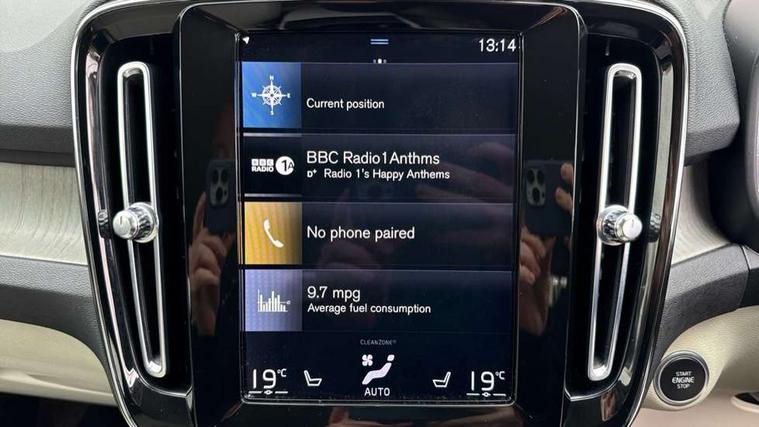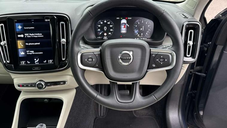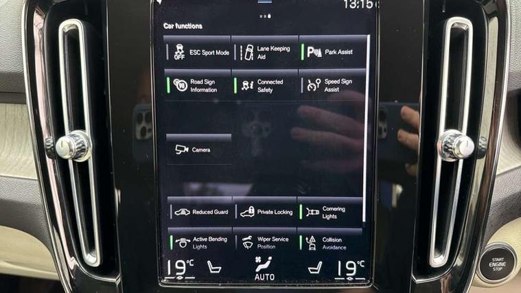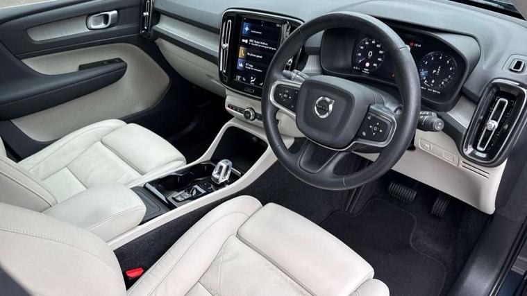 Driftwood inlays, Power seat pack - XC40, Anti-theft alarm including immobiliser/volume sensor + level sensor, Care key, Key integrated remote central locking including fuel flap with deadlocking system, Locking wheel nuts, Private locking for tailgate, DAB Digital radio, Steering wheel mounted remote controls, 3x3 point rear seatbelts, City safety, Drivers knee airbag, DSTC-Dynamic Stability and Traction Control, Dual stage Driver/Passenger Airbags, Electronic parking brake with auto hold, First aid kit, Front and outer rear seatbelt reminder and pretensioners, Hill descent control, Hill start assist, Inflatable curtain, Passenger airbag cut-off device, Road sign information display, Run off Road Mitigation, Run off Road Protection, SIPS (Side Impact Protection System), SIPS airbags, Slippery road and hazard light alert, Tyre pressure monitoring system, Vehicle deceleration control with Anti-lock Brake System, Electronic Brake Distribution and Emergency Brake Assist, Warning triangle, WHIPS whiplash protection system - front, Active bending headlights, Adaptive brake lights with high level LED brake lights, Auto dimming interior mirror, Automatic headlamp levelling, Chrome window surround, Colour coordinated auto folding and heated power door mirrors, Dual exhaust pipes, Front aluminium tread plates, Front and rear electric windows, High gloss black grille with chrome inserts, High gloss black sensus surround deco, High Gloss silver front and rear skid plate, Home safe and approach lighting, LED front fog lights with static cornering light function, LED Headlights + Active high beam incorporating daytime running lights, Rain sensor windscreen wipers, Rear wiper, Roof antenna, Roof spoiler, Silver roof rails, Visible VIN plate, 12V socket in front tunnel console and cargo compartment, 2 zone electronic climate control with cooled glovebox and rear air vent, 3 spoke leather steering wheel with chrome trim, 60/40 split folding rear seat, Ambient front door and instrumental panel lighting, Bright metal luggage threshold, Centre console cupholders and storage, Driver's side lower dashboard credit card storage compartment, Front door pocket and front cupholder illumination, Front footwell illumination, Front headrests, Front reading light and theatre lighting, Front tunnel net pocket and integrated waste bin, Glovebox bag hook, Height/reach adjustable steering column, High gloss centre tunnel deco, Illuminated luggage compartment, Illuminated tailgate, Illuminated vanity mirrors, Isofix attachments on rear seats, Leather coloured key integrated remote, Leather faced upholstery, Load protection net, Lockable/illuminated glovebox, Luxury floor mats, Multi directional lumbar support, Multicolour theatre lights, Orrefors Crystal Gear Lever Knob, Rear armrest / integral cup holders / storage tray, Rear coat hook, Rear reading and courtesy lights, Underfloor cargo storage, 12.3" Active TFT crystal driver's instrument display, 9" centre console portrait touch screen, Adjustable steering wheel force, Bluetooth hands free telephone kit, Drive mode selector, Lane keep assist with driver alert control, Oncoming Lane Mitigation, Sensus navigation with European mapping and traffic information, Speed limiter, Speed sensitive steering, Voice activated control for key functions, Volvo on call, Dynamic chassis,