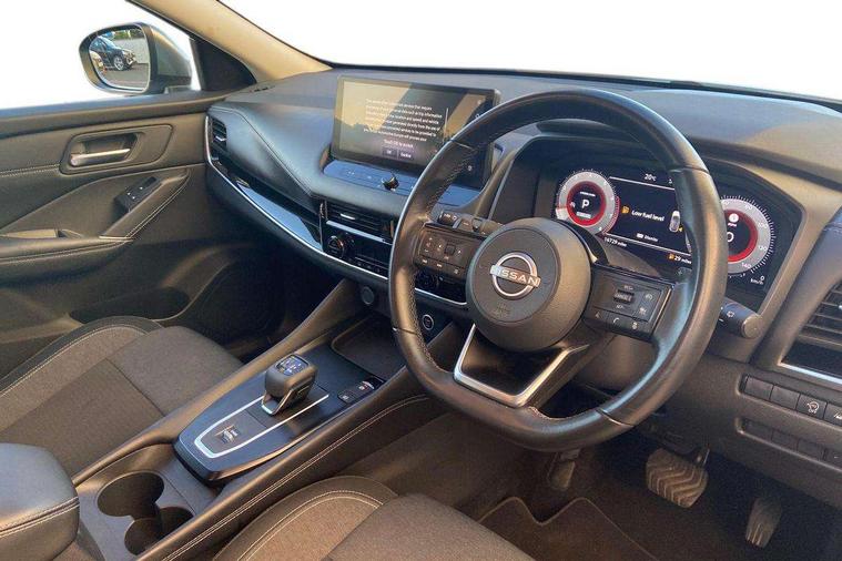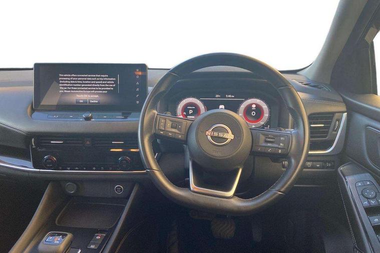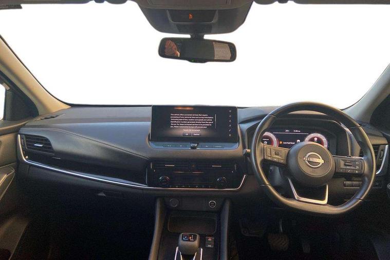 Android auto/Apple CarPlay (Wired), Blind spot warning, Drive modes (sport, normal, eco), Electric speed sensitive power steering, Emergency and breakdown call, Full Digital 12.3" TFT Digital Combimeter, Google maps services - search, weather, 3D maps and Google street view, Idle stop/start system, Intelligent around view monitor, Intelligent Cruise control (ICC), Intelligent driver alert system, Intelligent forward collision warning, Intelligent lane intervention, Lane departure prevention, Lane departure warning system, Maximum speed limiter, Moving object detection, Nissan connect 12.3 inch touchscreen infotainment system, Nissan connect navigation, Push button starter, Rear cross traffic alert, Rear parking sensors, Rear view camera, Remote control services - door locks, lights, horn and car locator, Telematics - notifications and connectivity services, TomTom live traffic services, Traffic sign recognition with legal speed adjustment, Trip computer, Virtual personal assistant and firmware over the air capability, Wireless apple carplay, 6 speakers, AM/FM audio system with DAB, Bluetooth audio streaming, Front USB connections (Type-A and Type-C), Rear USB charging only ports (Type-A and Type-C), Auto dimming rear view mirror, Auto rear wiper when reversing, Automatic hazard signal with emergency stop signal, Body colour mirror caps, Body coloured door handles, Bodyside mouldings, Chrome side window finisher, Door handle with button, Electric auto folding door mirrors, Electrically adjustable and heated door mirrors with LED turn indicator, Follow me home headlights, High beam assist, Intelligent auto headlights, LED daytime running lights, LED Headlights, LED rear lights, One touch front and rear electric windows with remote opening and closing, Partially body coloured bumpers, Privacy glass, Rear bumper with graphite insert, Rear reversing light (bulb lighting), Rear roof spoiler, Rear side wing doors, Rear styling plate, Shark fin antenna, Splash free rain sensing wipers, Super UV and infrared cut glass, Three blink turn signal, 12v power socket in dashboard and luggage, 2x Rear coat hooks, 3 bench rear seats in 2nd row, 3 rear headrests, 4 folding assist grip, 6 Luggage hooks - 4 on floor, 2 on side, 6-way manually adjustable driver's seat, 60/40 split folding rear seat bench, Ambient lighting around centre console, Centre console storage tray, Chrome interior door handles, Cloth monoform upholstery, Driver and front passenger sunvisors with illuminated vanity mirrors, Driver seat back pocket, Dual zone automatic climate control with pollen filter, Electrically adjustable lumbar support for driver, Front and rear door storage, Front centre console and armrest, Front cupholders x 2, Front door with bottle holders, Glovebox with light, Hard trunk cover, Height adjustable driver's seat, Height adjustable front headrests, Height adjustable passenger seat, Leather steering wheel, Luggage board system, Luggage space lighting, Manually adjustable passenger (slide recline + lifter), Multifunction steering wheel, Passenger seat back pocket, Rear armrest with 2 cupholders, Rear door bottle holders, Single front passenger seat, Soft PVC kneepad, Steering wheel gearshift paddles, Steering wheel switches, Sunglasses holder, Tilt/telescopic adjustable steering wheel, Two rear isofix child seat anchorage points with top tether, Welcome light and console tray ambient lighting, 3x3 point rear seatbelt pretensioners + load limiters, ABS with EBD and brake assist, Active brake limited slip, Auto hold function, Child locks on rear doors, Curtain and front side, far side airbags, Driver and passenger airbags, Driver, passenger and 2nd row rear seat belt reminder, Electronic parking brake, Front seatbelt pretensioners + load limiters, Height adjustable front seatbelts, Hill start assist, Intelligent blind spot intervention, Intelligent front emergency braking with pedestrian, cyclist recognition and junction assist, Intelligent rear automatic braking, Tyre pressure monitoring system, Vehicle dynamic control, Capless fuel filler, Engine immobiliser, Intelligent Key, Remote central door locking with deadlocking, Thatcham Cat.1 alarm, Interior instrumental panel B finisher, 18" Diamond cut alloy wheels, Tyre puncture repair kit,