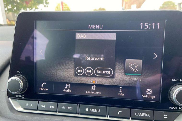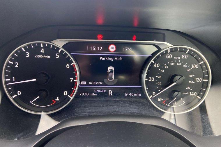 7" High definition full colour TFT screen combimeter, Android auto/Apple CarPlay (Wired), Blind spot warning, Drive modes (sport, normal, eco), Electric speed sensitive power steering, Emergency and breakdown call, Idle stop/start system, Intelligent Cruise control (ICC), Intelligent driver alert system, Intelligent forward collision warning, Intelligent lane intervention, Lane departure prevention, Lane departure warning system, Maximum speed limiter, Nissan connect 8" touchscreen infotainment system, Push button starter, Rear cross traffic alert, Rear parking sensors, Rear view camera, Traffic sign recognition with legal speed adjustment, Trip computer, 6 speakers, AM/FM audio system with DAB, Bluetooth audio streaming, Front USB connections (Type-A and Type-C), Auto dimming rear view mirror, Auto rear wiper when reversing, Automatic hazard signal with emergency stop signal, Body colour mirror caps, Body coloured door handles, Bodyside mouldings, Chrome side window finisher, Door handle with button, Electric auto folding door mirrors, Electrically adjustable and heated door mirrors with LED turn indicator, Follow me home headlights, High beam assist, Intelligent auto headlights, LED daytime running lights, LED Headlights, LED rear lights, One touch front and rear electric windows with remote opening and closing, Partially body coloured bumpers, Rear reversing light (bulb lighting), Rear roof spoiler, Rear side wing doors, Shark fin antenna, Splash free rain sensing wipers, Three blink turn signal, 12v power socket in dashboard and luggage, 2x Rear coat hooks, 3 bench rear seats in 2nd row, 3 rear headrests, 4 folding assist grip, 6-way manually adjustable driver's seat, 60/40 split folding rear seat bench, Centre console storage tray, Chrome interior door handles, Cloth monoform upholstery, Driver and front passenger sunvisors with illuminated vanity mirrors, Driver seat back pocket, Dual zone automatic climate control with pollen filter, Electrically adjustable lumbar support for driver, Front and rear door storage, Front centre console and armrest, Front cupholders x 2, Front door with bottle holders, Glovebox with light, Hard trunk cover, Height adjustable driver's seat, Height adjustable front headrests, Height adjustable passenger seat, Leather steering wheel, Luggage space lighting, Manually adjustable passenger (slide recline + lifter), Multifunction steering wheel, Passenger seat back pocket, Rear armrest with 2 cupholders, Rear door bottle holders, Single front passenger seat, Steering wheel gearshift paddles, Steering wheel switches, Sunglasses holder, Tilt/telescopic adjustable steering wheel, Two rear isofix child seat anchorage points with top tether, 3x3 point rear seatbelt pretensioners + load limiters, ABS with EBD and brake assist, Active brake limited slip, Auto hold function, Child locks on rear doors, Curtain and front side, far side airbags, Driver and passenger airbags, Driver, passenger and 2nd row rear seat belt reminder, Electronic parking brake, Front seatbelt pretensioners + load limiters, Height adjustable front seatbelts, Hill start assist, Intelligent blind spot intervention, Intelligent front emergency braking with pedestrian, cyclist recognition and junction assist, Intelligent rear automatic braking, Tyre pressure monitoring system, Vehicle dynamic control, Capless fuel filler, Engine immobiliser, Intelligent Key, Remote central door locking with deadlocking, Thatcham Cat.1 alarm, Interior instrumental panel A finisher, 17" Alloy wheels, Tyre puncture repair kit,