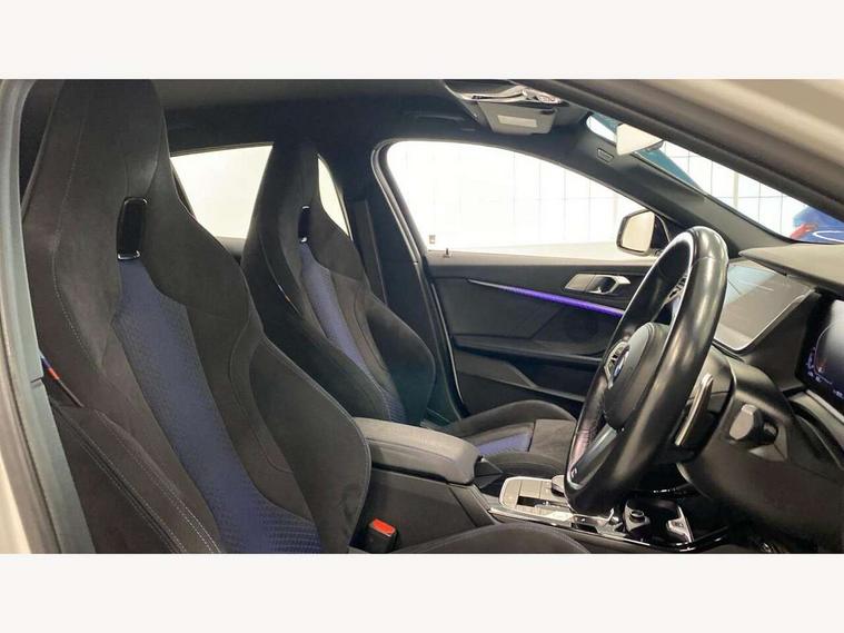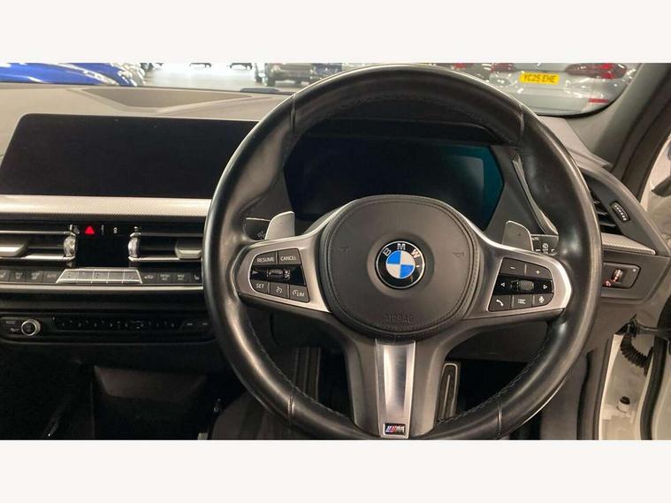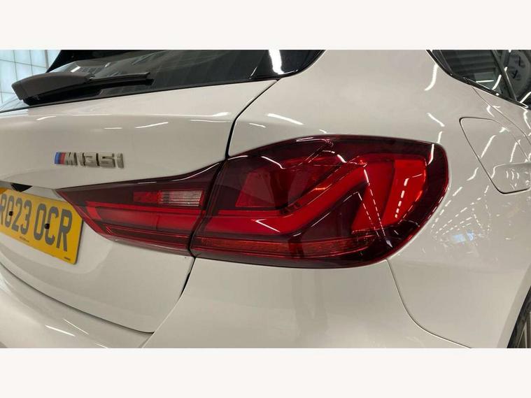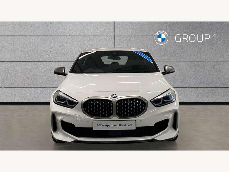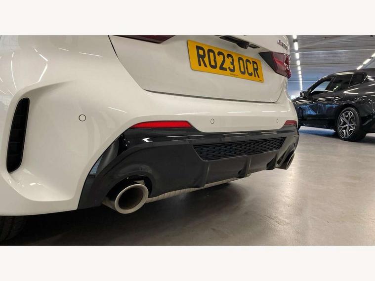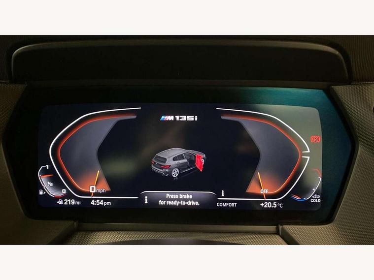 Active guard plus, Attentiveness assist, BMW ConnectedDrive online services, BMW Teleservices, Check Control warning system for monitoring of lights and door/luggage compartment open warning, Cruise control with speed limiter, Eco pro mode, Electric power steering, Electro hydraulically controlled multi-plate clutch transfers drive to rear axle and with power take-off device located on the front differential., Energy efficient operating strategy, Front axle single joint with specific axle kinematics to minimise drive influences on steering + provide increased rigidity agile driving behaviour, Gearshift time display in manual mode, Integrated owners handbook, Lane departure warning system, M Sports steering with M135i xDrive specific settings, Oil sensor for level and grade, On board computer, Optimum shift indicator, Personal Profile, Pull away assistant, Rigidly mounted rear subframe - Multi link construction with separate spring / damper configuration and excellent driving characteristics, Speed limit Info including no-overtaking indicator, Sporty fast gear shifting in sport mode, Aluminium lightweight construction, Anti roll bar front and rear, Balancer shaft, Double VANOS, Drive Performance Control, Eight speed sport automatic transmission with gearshift paddle switches, Electronic differential lock, Electronic selector lever, Engine cover with M performance designation, High precision injection, Larger fuel tank capacity (50 litres), Launch control, M135i specific heavily de-throttled engine intake air guide, M135i specific high-performance cooling package, M135i specific larger turbocharger with integrated divert-air valve, Petrol Particulate Filter, Twin tube gas filled shock absorbers with degressive characteristic curve, VALVETRONIC engine management, Variable, stepless and infinitely adjustable distribution of drive torque between the front and rear axles, xDrive intelligent all wheel drive with M135i specific reinforced components, DAB Digital radio, Auto dimming rear view mirror, Automatic headlight beam throw control, Automatic windscreen wipers and automatic headlight, Body colour door handles, Body colour roof trims, Cerium grey exterior mirror caps, Direction indicator side lights in exterior mirrors, Electrically adjustable exterior mirror with mirror adjustment switch on drivers armrest and aspheric on driver side, convex on passenger side, Exhaust tailpipe, Cerium Grey with bevelled finish - twin, round 100mm, left and right split, Fading support, Folding side mirrors with auto dimming/folding wing mirrors with auto dimming, Follow me home headlights, Front and rear bumper system with replaceable deformation elements, Front and rear electric windows with open and close fingertip control, anti trap facility and comfort closing, Front door sill finishers with M135i designation, Green tinted heat protection glazing, High gloss shadowline window frame, Recess cover mirror frames and B/C pillar embelisher trim, High level third brake light, Integrated front windscreen with washer jets, Kidney grille frame in Cerium Grey with Mesh design, LED daytime running lights, LED eyebrow turn indicators, LED front fog lights, Lightweight engineering, M logo designation side in cerium grey, M Performance exhaust system with valve control and minimised exhaust back pressure, M Performance specific setup, M Sport spoiler, Matt black air guide grilles, Matt black wheel arch trim, Model designation on electric bootlid includes xDrive designation for M135i xDrive, Nearside reverse light in rear light cluster, Preparation for high beam assistant, Rear fog lights, Rear side wing doors, Rear window wiper, Reinforced crank drive, new pistons and adapted con rods, Shark fin antenna, Trailer stabilisation logic, Visible VIN plate, Welcome lighting, 12V power socket in front centre console with blanking plug, 3 rear seat head restraints, 3 seat bench in 2nd row, 3 spoke sports leather steering wheel with black leather and stitching, pearl chrome decorative finish, specific M Badge, Anthracite headlining, Black boot net with lashing eyes, Cargo function on 2nd seat row, Child seat ISOFIX attachment for two outer rear seats and front passenger seat with anchorage points, Conditioned based service, Driver and front passenger backrest net on rear, Driver and front passenger seat heating, Driver side folding compartment in instrument panel, Folding rear clothes hook, Four grab handles integrated in roof lining, Front and rear door pockets with bottle holders, Front and rear side armrest integrated into door trim, Front armrest, Front M sports seats, Glove compartment, Height adjustable front head restraints, Luggage compartment for bag hooks on left and right, foldable luggage compartment liner and four lashing eyelets, Manual adjust steering wheel, Multi-function controls for steering wheel, Single front passenger seat, Storage compartment in centre console, Storage compartment in luggage compartment, Stowage of the parcel shelf in luggage compartment trim, Sun visors with vanity mirrors and insert tab, Two front centre console cupholders, Two zone automatic air conditioning, Type C two USB ports in rear centre console, Velour floor mats, Additional interior lighting pack - 1 Series M135i, BMW live cockpit professional pack- 1 Series, Connected pack professional - 1 Series, Interior lights pack - 1 Series, M Sport exterior styling aerodynamics pack - 1 Series 135i, 2 tone horn, 3 point seatbelts on all seats, front pyrotechnic belt tensioners, stopper and belt force limiters, rear coded belt buckles, Airbags - Front driver/passenger, front and rear curtain head protection, front side, manual deactivation of front passenger airbag, Anti lock braking system (ABS) with brake assist, BMW emergency call, Brake drying, Braking readiness, Child proof locking system in rear door, City braking function, Comfort modes, Cornering brake control, Crash sensor activating of airbags, Unlocking doors, hazard warning 