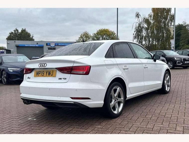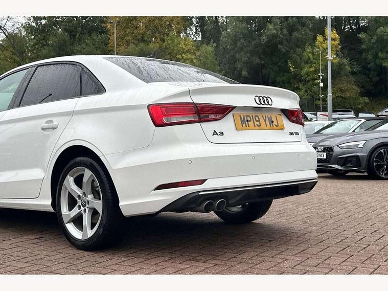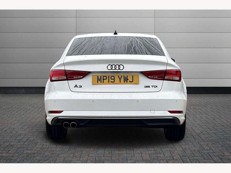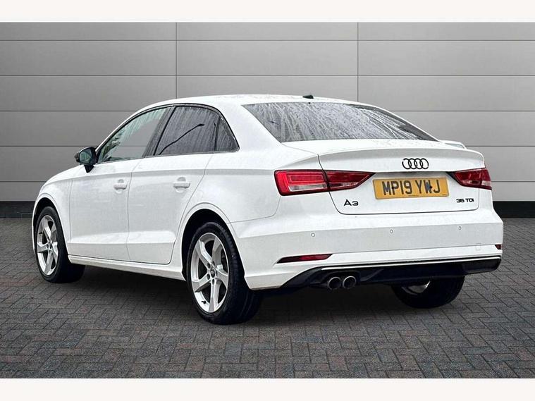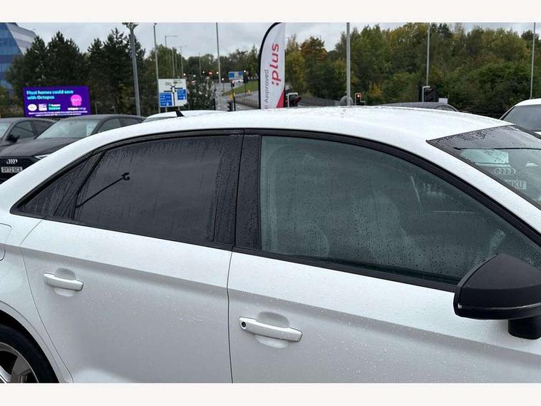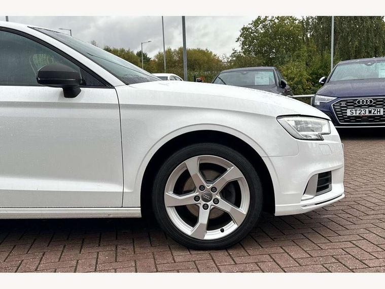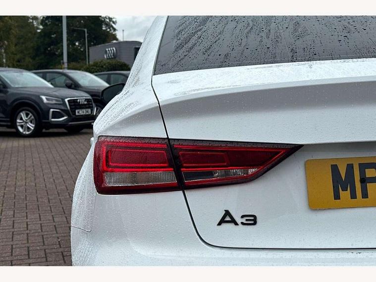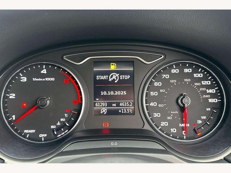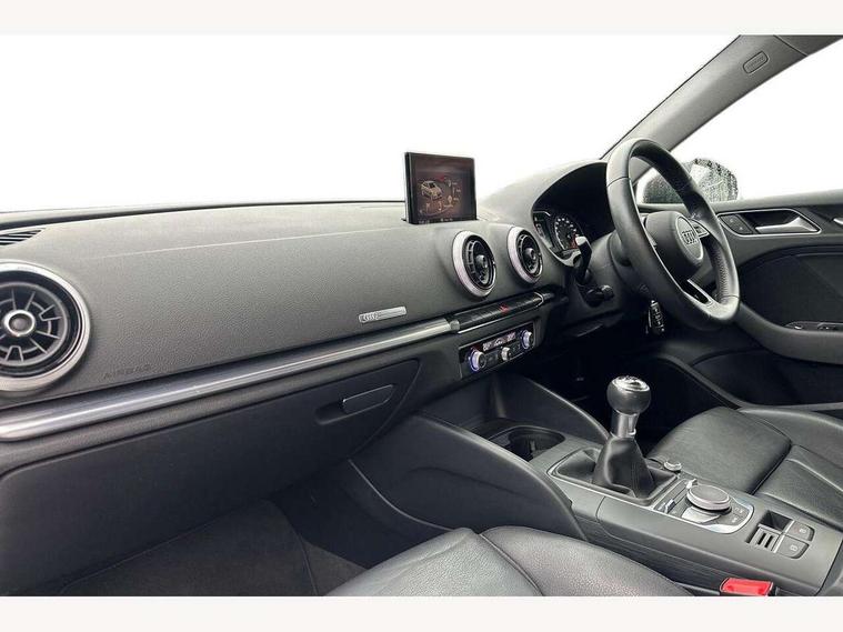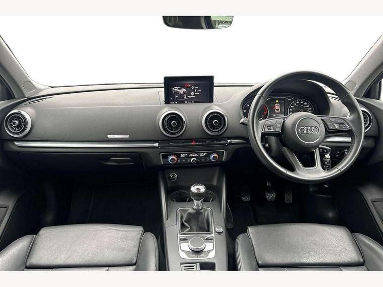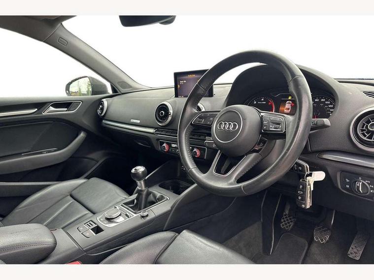 Audi connect, Audi drive select, Audi smartphone interface, Automatic start/stop system, Bluetooth interface, Colour driver's information system display, Cruise control + speed limiter, Electro-mechanical PAS, SD card based MMI navigation, Service indicator, Voice control system, Diesel particulate filter, Dynamic suspension, 2 USB interfaces and Aux-In jack, CD player, DAB Digital radio, MMI radio plus with 7" colour MMI screen and MMI controller, Two SDXC card slots, Aluminium side window trim, Auto dimming rear view mirror, Automatic lights and wipers, Body colour bumpers, Body colour door mirrors, Body colour roof spoiler, Dual branch chrome-plated exhaust tailpipe, Electrically adjustable and heated door mirrors with integrated LED side indicators, Front and rear electric windows, Heated rear window, Heated windscreen washer jets, Illuminated roof module, Model and engine designation badges at rear, Passive door reflectors, Sport specific side air inlet grille and diffuser insert, Xenon headlights with LED Daytime running light, 3 adjustable rear headrests, 3 spoke leather multifunction sports steering wheel, 4 lashing points to secure luggage, 60/40 split folding rear seat, Adjustable front centre armrest, Aluminium door sill trims, Cloth headlining, Driver/passenger sunvisors, Dual zone electronic climate control, Front and rear interior lights with delay, Front sports seats, Front/rear floor mats, Height/depth adjustable steering column, Illuminated glovebox, Illuminated luggage compartment, ISOFIX child seat mounting and Top Tether with front passenger airbag deactivation, Manual height adjustable front seats, Storage compartments in doors side trims, centre console and under front drivers seat, Tool kit, Non smoking pack - A3, Storage and luggage pack - A3/RS3, 3 point seatbelts on all seats, ABS/EBD, Active front headrests, Airbags - front driver/passenger, front & rear side, curtain, drivers knee, ASR, EDL, Electromechanical parking brake, ESC - Electronic Stability Control + traction control, Hill hold assist, Predictive pedestrian protection, Seatbelt warning, Tyre pressure warning, Warning triangle and first aid kit, Anti theft alarm, Anti-theft wheel bolts, Immobiliser, Remote control central locking, Aluminium air vent surrounds, Aluminium mistral silver inlay, Aluminium trim elements, Tyre repair kit,