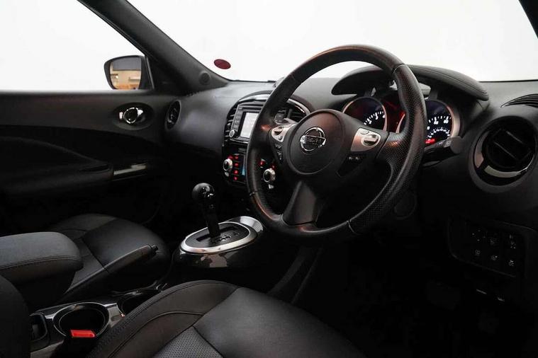 Around View Monitor, Blind spot monitoring, Bluetooth system, Colour rear view camera, Cruise control + speed limiter, Electric speed sensitive power steering, Lane departure warning system, Moving object detection, Nissan connect sat nav system, Push button starter, Service interval indicator, Trip computer, 6 speakers, Aux input, DAB Digital radio, Steering wheel mounted audio controls, Stereo radio/CD player and MP3 facility, USB port, 2 speed wipers+variable intermittent wipe, Automatic headlights, Body colour bumpers, Body colour door handles, Dusk sensor, Electric door mirrors, Electric folding door mirrors, Electric front/rear windows, Front fog lights, Heated door mirrors, LED daytime running lights, Privacy glass, Rain sensor, Rear wiper, 12V socket, 60/40 split folding rear seat, Climate control, Front armrest, Front cupholders x 2, Front door pockets with bottle holders, Front head restraints, Front seat belt pre-tensioners with load limiters, Gear shift indicator, Glovebox, Heated front seats, Height adjustable driver's seat, Internal chrome door handles, Isofix child seat preparation, Leather steering wheel and gear knob, Leather upholstery, Luggage area under floor storage box, Map reading lamp, Passenger seat back pocket, Pollen filter, Rear headrests, Rear tonneau cover integrated into tailgate, Sports seats, Steering wheel rake adjustment, ABS + EBD + EBA, Child locks on rear doors, Driver and passenger airbags, Driver and passenger side airbags, ESP + traction control, Front and rear curtain airbags, Height adjustable front seatbelts, Passenger airbag deactivate switch, Three 3 point rear seatbelts, Tyre pressure monitoring system, VDC Dynamic Vehicle Control, Warning triangle and first aid kit, Alarm, Immobiliser, Intelligent Key, Remote central locking, 17" Urban alloy wheels, Tyre repair kit,