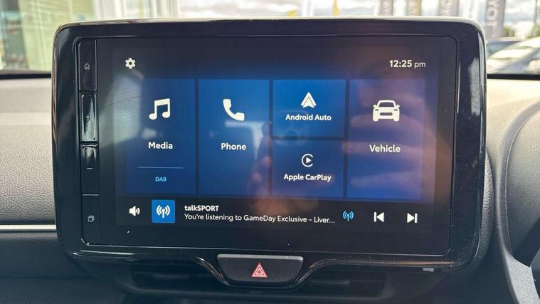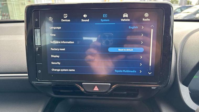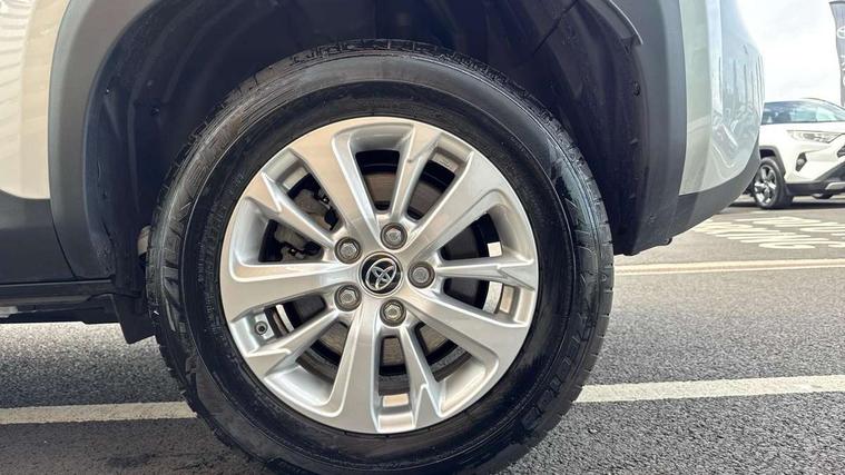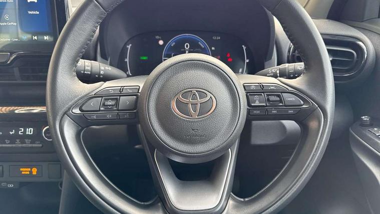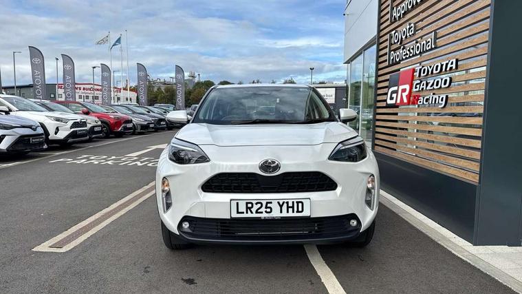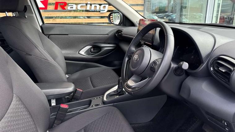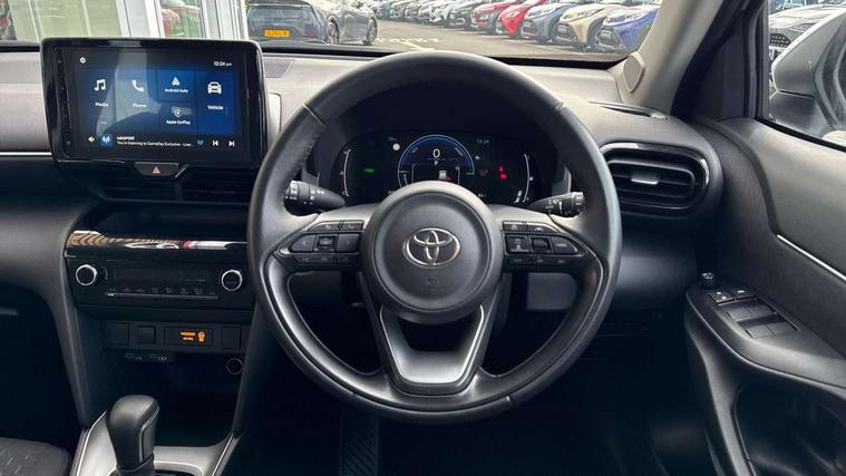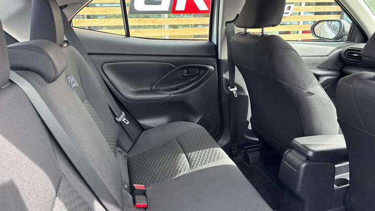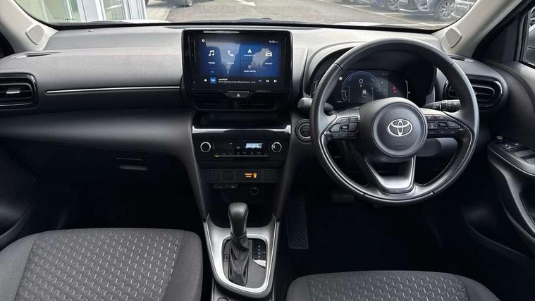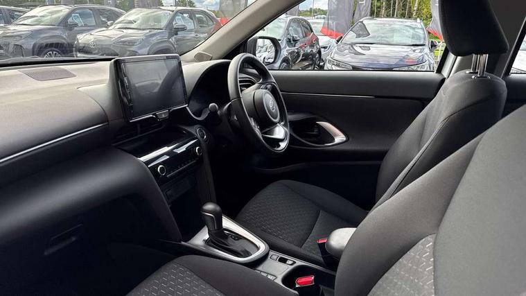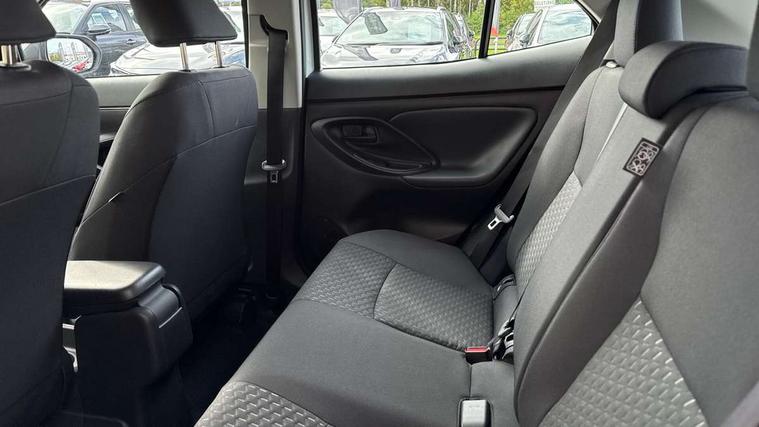 7" Multi information display screen, 9" Toyota touch 3 multimedia system with Smartphone integration with Apple CarPlay and Android auto, Adaptive cruise control, multi info switches on steering wheel, Adjustable speed limiter, Bluetooth connectivity, Color multi-information display, Digital speedometer, Digital tachometer, Drive mode selector, Driver attention alert system, eCall emergency system, Electric power steering, Emergency driving stop system, Full range intelligent adaptive cruise control, Hybrid system indicator, Intersection turn assist, Key reminder warning, Lane trace assist, My T Connected services, Pre-collision system enhanced with emergency steering assist, Reversing camera, Road sign assist - RSA, Static guide lines on reversing camera, Tailgate, Telephone switch on steering wheel, Steering assisted vehicle stability control, 6 speakers, DAB Digital radio, Front USB Type-C connector, Front USB-C device charger, 3rd brake light, Acoustic windscreen glass, Anti-jam protection on power windows, Auto high beam [AHB] with on/off switch, Auto intermittent windscreen wipers, Automatic headlights, Automatic headlights cut-off, Black door moulding, Black lower front grille, Black protection moulding on side doors, Black upper front grille, Black wheel arch mouldings, Body colour door handles, Body colour front bumper, Body colour rear bumper, Electric adjustable heated door mirrors, Follow me home headlights, Front and rear electric windows with auto up/down function, Halogen projector headlights, Headlight cut off reminder, Indicators integrated on door mirrors, Intermittent rear wiper, LED daytime running lights, LED front fog lights, LED front light guide, LED Indicators, Manual day/night rear view mirror, Manual headlight levelling, Manually retractable door mirrors, Noise reduction layer on windscreen, Pre wiring for towing hook, Privacy glass, Rain sensor, Rear roof spoiler, Rear side wing doors, Rear window defogger, Shark fin antenna, 12v power outlet - front, 2x Rear coat hooks, 3 seat bench in 2nd row, 3 spoke leather steering wheel, 60/40 split folding rear seat, Adjustable rear headrests, Adjustable speed limiter switch on steering wheel, Auto air conditioning, Boot light, Central armrest, Driver and front passenger personal lights, Driver and front passenger Whiplash injury Lesseing seats, Fabric door trim, Fabric upholstery, Front console box, Front cup holders, Front door pockets, Front head restraints, Front/rear assist grips, Gear shift indicator, Grey roof lining, Height adjustable driver's seat, Height adjustable front passenger seat, ISOFIX child restraint system, Lane departure alert switch on steering control, Leather gearshift, LED centre room light, Manual telescopic and tilting steering wheel, Mirror on driver and passenger sun visor, Pollen air filter, Rear cup holders, Rear door pockets, Rear head restraints, Remote air-conditioning system, Single compartment glovebox, Single front passenger seat, Soft tonneau cover, Storage box under boot floor, Voice recognition switch on steering wheel, Yaris cross floor mats, 3x3 point rear seat belts, ABS+EBD+Brake assist, Driver and passenger central airbags, Driver and passenger front airbags, Driver and passenger side airbags, Electronic parking brake, Emergency brake light system (EBS), Front seat belt reminder, Hill start assist control (HAC), Passenger airbag on/off switch, Pre-collision system with pedestrian and cyclist detection, Rear door child safety locks, Rear passenger side airbags, Rear seat belt reminder, Traction control, Tyre pressure warning system, Immobiliser, Intrusion alarm, Keyless smart entry with push button start, Power door locks, Power passenger window lock, Remote door lock, Gloss black side air vent surrounds, 16" 10 spoke silver alloy wheels, Tyre repair kit,