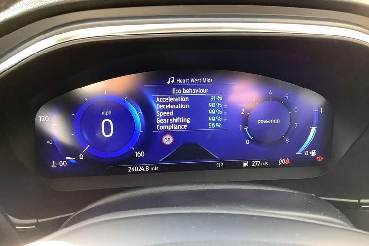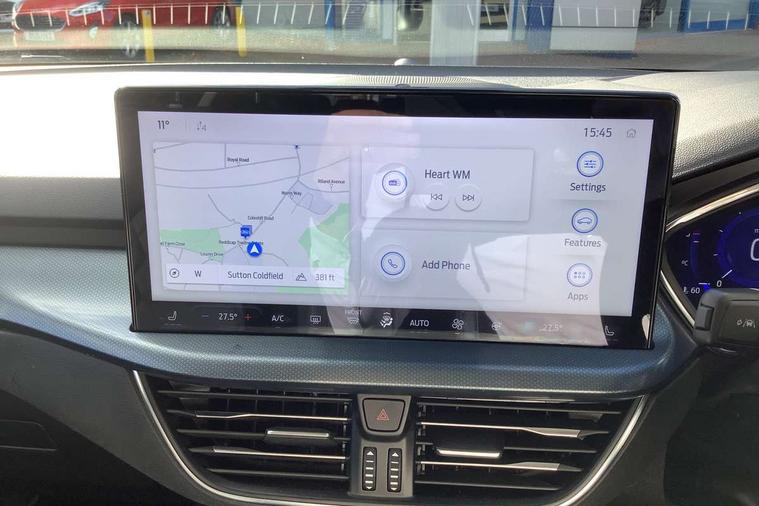 12.3" Digital instrument cluster, Bluetooth system, Digital clock, Easy fuel capless refuelling system, Eco mode, Ford SYNC4 Nav with 13.2'' touchscreen, DAB, Emergency Assistance, Apple Carplay & Android Auto, B&O Premium Audio with 10 speakers, FordPass Connect, Lane keeping system - lane keeping alert and lane keeping aid, PAS, Rev counter, Selectable drive mode, Service interval indicator, Trip computer, Wireless charging pad, 2 USB ports, Auto headlamps (on/off), Body coloured door handles, Electrically operated front and rear windows with one touch opening and closing, Electrically operated heated power fold door mirrors with puddle lamp with side indicators, Front variable intermittent wipers with electric wash, Heated rear window, LED daytime running lamp, LED rear lamps, LED third brake light, Polished twin tailpipe, Privacy glass, Quickclear heated windscreen, Rain sensor, Rear side wing doors, Rough road suspension with increased ride height, Rugged body styling kit with active front wing badges, Tailgate wash/wipe, 3 rear headrests, 3 seat bench in 2nd row, Dual zone electronic air temperature control, Full sensico premium upholstery, Height adjustable front headrests, Isofix child seat preparation, Load through ski hatch, Manual 4-way passenger seat adjusts, Power 4-way driver seat adjust, with power lumbar adjust, Reach + rake adjustable steering column, Single front passenger seat, Winter pack - Focus, 3x3 point rear seatbelts, ABS+Electronic Brake force Distribution, Auto hold function, Driver airbag, EDL traction control, Electronic parking brake, Electronic stability control, Front and rear seatbelt reminder, Front inertia reel height adjustable seatbelts with pre-tensioners, Front passenger airbag, Front side airbags, Passenger airbag deactivate switch, Post collision braking, Pre collision assist with autonomous emergency braking and pedestrian/cyclist detection, Remote/power child rear door locks, Side curtain airbags, Three rear inertia reel lap/diagonal seatbelts, Tyre pressure monitoring system, Keyless entry and keyless start, MyKey system, Remote central locking & engine immobiliser, Thatcham alarm with power door dead locks, 18" 5 spoke shadow black machined finish alloy wheels with mini spare wheel,