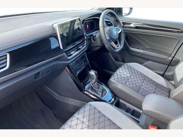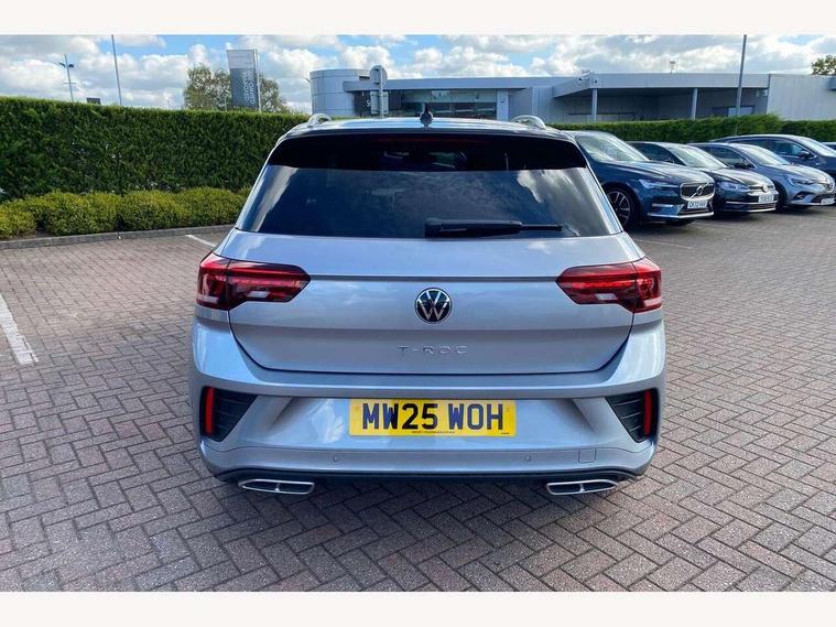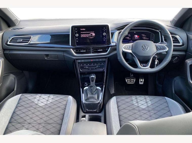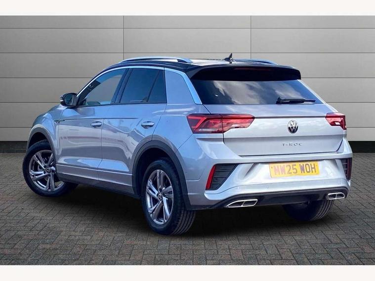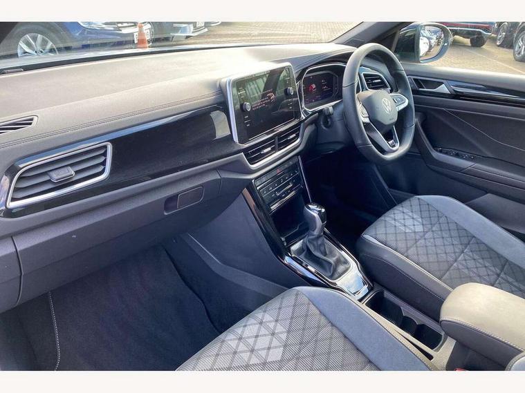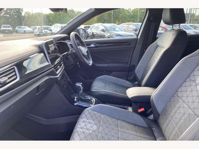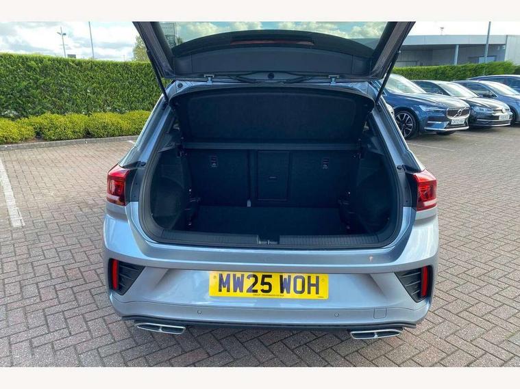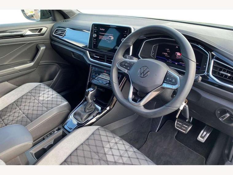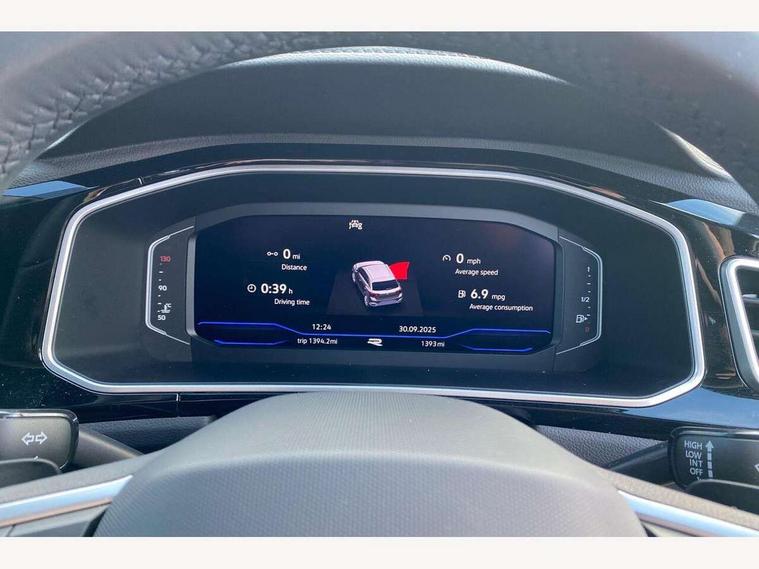 10.25" Digital cockpit pro, Advanced driver attention and drowsiness monitor, Emergency call service, Lane keeping system Lane Assist, Mobile phone interface, Modified key software - reduce switch off time for key status change to Long no motion, Online services, Park assist including front and rear parking sensors, Service interval indicator, Tailgate/trunk lid release from outside, Think blue trainer driver tips and journey analysis, Warning sound and light for front seatbelts unfastened, Wireless app connect, Battery regeneration during braking, Start/stop function with battery regeneration, DAB Digital radio, Diversity antenna for FM reception, Front and rear 6 speakers, Music playback - MP3, WMA and AAC files, Premium USB cable in choice of either Apple or Android smartphone compatibility, SD card slot, Simultaneous pairing of 2 compatible mobile devices, Title and cover art display, We Connect and We Connect Plus functionality, Auto dimming interior rear view mirror, Automatic hazard lights activation under emergency braking, Automatic headlight control with LED separate daytime running lights with coming/leaving home function, Body coloured exterior mirror housings and door handles, Electrically adjustable and heated door mirrors, Extended roof spoiler, Exterior mirrors aspherical on driver side, convex on front passenger side, External USB type C socket and charging sockets, Front windscreen wiper with intermittent wipe and 4 position delay, Heated rear window, LED 3rd brake light, LED rear combination lamps, LED rear number plate lights, Power windows with comfort operation and circuit breaker, Privacy glass for rear side windows and rear window, R-Line design body coloured bumpers, Rain sensor, Rear exhaust tailpipe, Rear fog light on one side and reversing lights on both sides, Rear side wing doors, Rear wash/wipe with intermittent wipe setting, Remote electrically foldable door mirrors, puddle lights and reverse activated passenger's door mirror, 12V power socket in centre console, 3 rear head restraints, 3 seat bench in 2nd row, 4 load lashing points in luggage compartment, Air care climatronic air conditoning system with active combination filter and 2-zone temperature control, Black roof lining, Chrome plated decorative trims, Chrome plated radiator grille inserts, air vent surrounds and light switch surrounds, Door and side trim panel with leatherette insert, Front + rear carpet mats, Front centre armrest, Front cupholders x 2, Front footwell illumination, Front reading light, Front scuff plates with R Line logo, Front seat back storage pockets, Glove compartment door with light, Instrument lighting, white adjustable panel illumination, Interior ambient lighting and surround lighting, Interior light delay, Isofix child seat preparation, Leather gearshift handle, Load-through provision with cup holder when folded down ('Unsplit rear seat bench, split folding backrest, with centre armrest), Luggage compartment lighting, Single front passenger seat, Stainless steel pedals, Storage compartment in left and right luggage area, Storage compartment in rear doors, Storage compartments in driver and front passenger doors, Sunvisors with illuminated vanity mirrors, Variable boot floor, height adjustable and removable, Driver assistance pack without proactive passenger protection - T-Roc, 3 point height adj front seatbelts + pretensioners, 3 point seatbelts in outer rear with ECE label, ABS, Child locks on rear doors, City emergency braking and pedestrian monitoring, Driver and front passenger airbag with front passenger airbag deactivation, Driver and front passenger safety-optimised head restraints, Drivers seatbelt reminder, Electronic parking brake, Electronic Stability Control (ESC) inc EDL (Electronic Differential Lock) and ASR (Traction Control), Front and rear passengers curtain airbag system including front side airbags, Hill start assist, Predictive pedestrian protection, Rear disc brakes, Two tone horn, Tyre pressure loss indicator, Volkswagen roadside assistance, Piano black decorative inserts in dashboard and front door trim panels, Trims for alloy wheels,