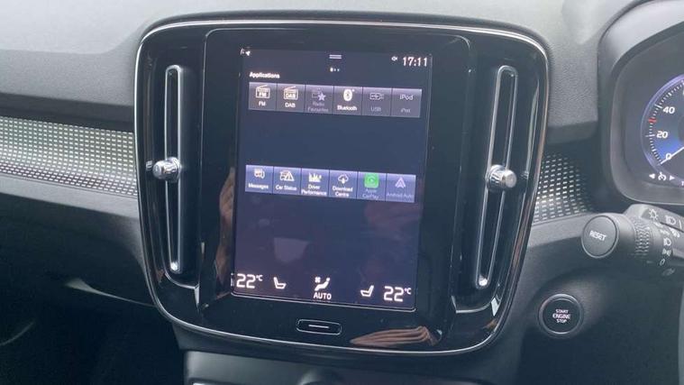 Cutting edge aluminium inlay, Anti-theft alarm including immobiliser/volume sensor + level sensor, Care key, Key integrated remote central locking including fuel flap with deadlocking system, Locking wheel nuts, Private locking for tailgate, DAB Digital radio, Steering wheel mounted remote controls, 3x3 point rear seatbelts, City safety, Drivers knee airbag, DSTC-Dynamic Stability and Traction Control, Dual stage Driver/Passenger Airbags, Electronic parking brake with auto hold, First aid kit, Front and outer rear seatbelt reminder and pretensioners, Hill descent control, Hill start assist, Inflatable curtain, Passenger airbag cut-off device, Road sign information display, Run off Road Mitigation, Run off Road Protection, SIPS (Side Impact Protection System), SIPS airbags, Slippery road and hazard light alert, Tyre pressure monitoring system, Vehicle deceleration control with Anti-lock Brake System, Electronic Brake Distribution and Emergency Brake Assist, Warning triangle, WHIPS whiplash protection system - front, Active bending headlights, Adaptive brake lights with high level LED brake lights, Auto dimming interior mirror, Automatic headlamp levelling, Black stone door mirrors, Black stone roof, Colour coordinated auto folding and heated power door mirrors, Dark tinted windows for rear door side windows and cargo compartment, Dual integrated exhaust pipes with high gloss black surround, Front aluminium tread plates, Front and rear electric windows, High gloss black front and rear skid plate, High gloss black lower front bumper, High gloss black mesh front grille with high gloss black surround, High gloss black roof rails, High gloss black sensus surround deco, High gloss black window trim, Home safe and approach lighting, LED front fog lights with static cornering light function, LED Headlights + Active high beam incorporating daytime running lights, Rain sensor windscreen wipers, Rear wiper, Recharging port located in nearside front wing, Roof antenna, Roof spoiler, Visible VIN plate, 12V socket in front tunnel console and cargo compartment, 2 zone electronic climate control with cooled glovebox and rear air vent, 60/40 split folding rear seat, Ambient front door and instrumental panel lighting, Black headlining, Bright metal luggage threshold, Centre console cupholders and storage, Driver's side lower dashboard credit card storage compartment, Front door pocket and front cupholder illumination, Front footwell illumination, Front headrests, Front reading light and theatre lighting, Glovebox bag hook, Height/reach adjustable steering column, High gloss centre tunnel deco, Illuminated luggage compartment, Illuminated tailgate, Illuminated vanity mirrors, Isofix attachments on rear seats, Leather coloured key integrated remote, Leather gearknob, Load protection net, Lockable/illuminated glovebox, Multi directional lumbar support, Multicolour theatre lights, Perforated leather steering wheel, Rear armrest / integral cup holders / storage tray, Rear coat hook, Rear reading and courtesy lights, Sports pedals, Underfloor cargo storage, 12.3" Active TFT crystal driver's instrument display, 9" centre console portrait touch screen, Adjustable steering wheel force, Bluetooth hands free telephone kit, Drive mode selector, Lane keep assist with driver alert control, Oncoming Lane Mitigation, Sensus navigation with European mapping and traffic information, Speed limiter, Speed sensitive steering, Voice activated control for key functions, Volvo on call, Electric front axle drive, Sports chassis,
