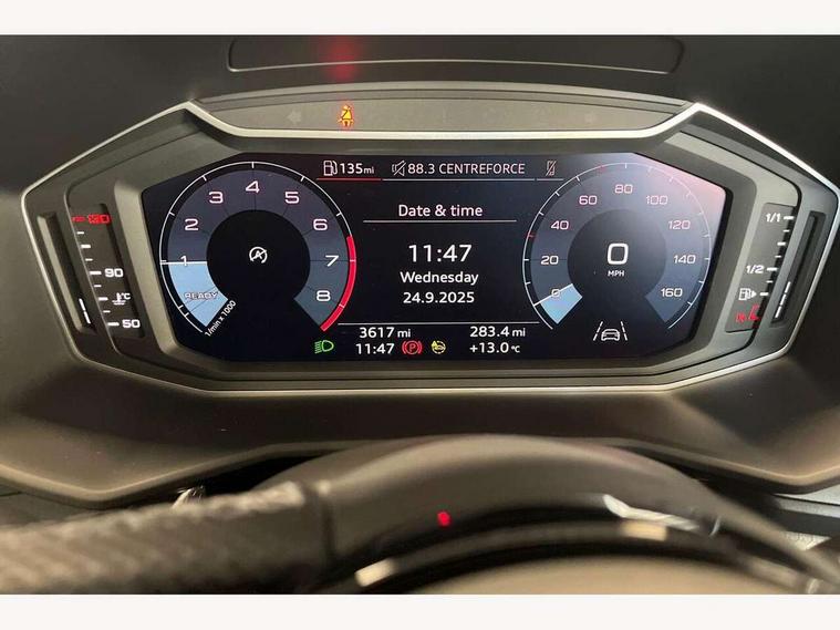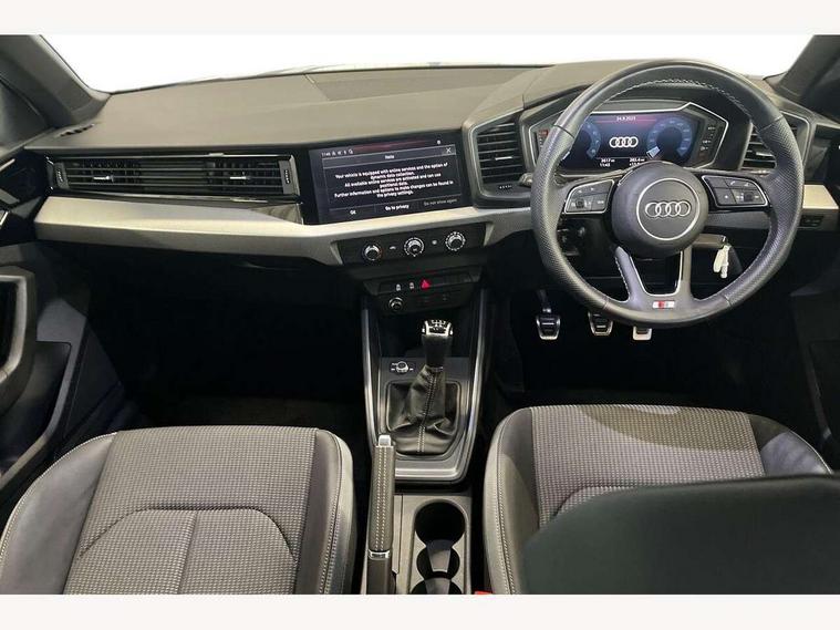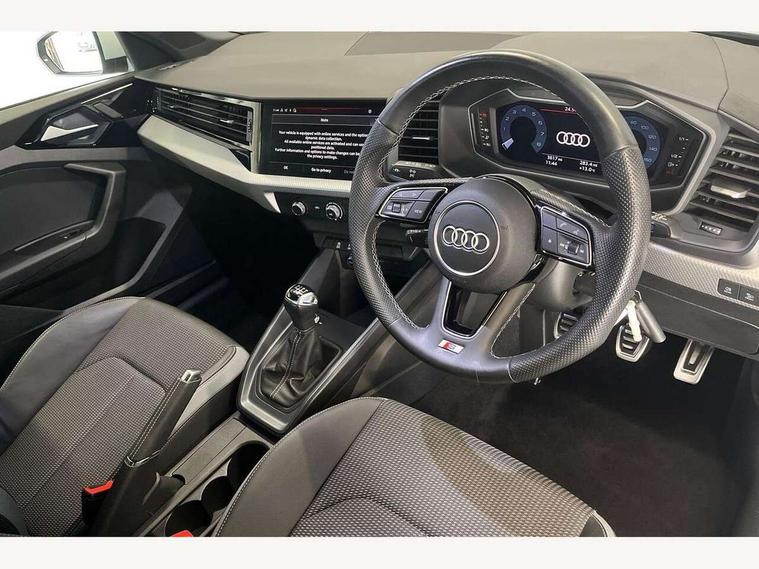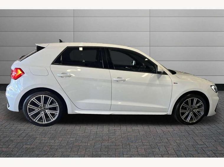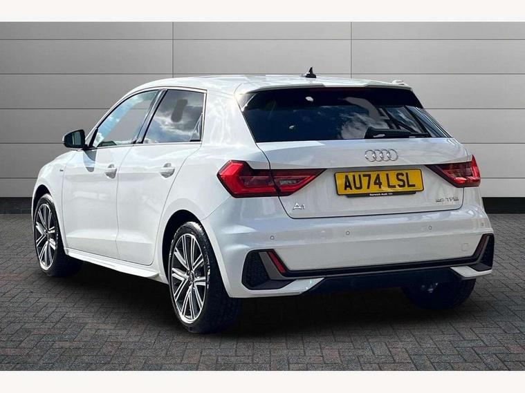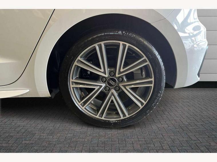10.25" Digital instrument cluster display classis style instrument dials + speed, odometer, time, outside temperature, telephone menu + fuel level warning, Advanced driver attention and drowsiness monitor, Audi connect emergency call and service, Audi remote connect and control, Audi smartphone interface, Bluetooth interface, Camera based traffic sign recognition, Cruise control, Driver's information system, Electromechanical power steering, Lane departure warning system, Rear parking sensor, Service interval indicator, Speed limiter, Start stop system with recuperation, Voice control system, Washer fluid level indicator, Sports suspension, 2 x USB type C connection points, 6 loudspeakers, DAB Digital radio, MMI radio plus with 10.1" colour MMI display screen and MMI touch, Auto dimming rear view mirror, Body coloured door mirrors, Door sill trims with aluminium inlays and S line logo in front, Electric front and rear windows, Electrically adjustable, heated, folding door mirrors with integrated LED side indicator, Front side air inlets in grained matt black and C frame in anthracite black, Headlight cleaning system, Heat insulating glass windscreen and side windows, Heated rear windscreen, High level LED brake light, LED daytime running lights, LED headlights with range control LED rear lights + dynamic rear indicators, Privacy glass, Radiator grille and rear diffuser in matt anthracite black, Radiator protective grille frame in matt aluminium silver, Rain and light sensors, Rear fog lights, Rear side wing doors, Rear wiper, S line badges on front wings, Side front spoiler lips in grained matt black, 12V socket in centre console with two cup holders, 3 rear seats with headrests, 3 seat bench in 2nd row, 3 spoke leather multi-function plus steering wheel features S badging and grips in perforated leather with contrast stitching, 40:60 Split folding rear seat or fully collapsed, Black cloth headlining, Front and rear velour black floor mats with contrast stitching in fine silver, Front head restraints, Front passenger seat, Height and reach adjustable steering wheel, Interior lighting includes roof module, front and rear reading lights and right luggage compartment lighting, ISOFIX child seat mounting for front passenger and outer rear seats including top tether attachment point of outer rear seats, Leather gear knob with aluminium trim, Leather handbrake grip, Manual air conditioning, Manual height adjustable for driver and front passenger seat, Manually adjustable lumbar support in front seats, Stainless steel pedals, Ambient lighting package - A1, Luggage compartment pack - A1, S line exterior styling pack - A1 Sportback, 3x3 point rear seatbelts, Audi pre-sense front with pedestrain and cyclist recognition, Brake assist function, Driver and front passenger airbag with front side and head airbags, Electronic Stability Control including ABS, EBD, ASR and EDL, Front passenger airbag deactivation switch, Hill hold assist, Manual rear child locks, Seatbelt height adjustment for front seats, Seatbelt monitoring, Tyre pressure loss indicator, Warning triangle and first aid kit, Anti theft alarm, Anti theft wheel bolts, Immobiliser, Remote control key with safelock, Aluminium trim for control switches, air vents and digital instrument cluster, Black dashboard, Silver grey inlays polygon structure in diamond paint finish, Structured grey accent surfaces insert of air vents, interior door handle recesses and centre console in quartz paint finish,