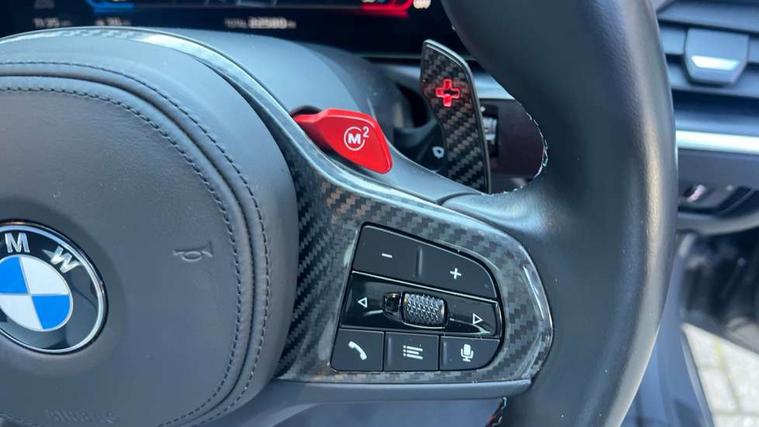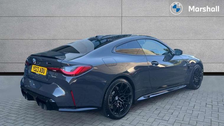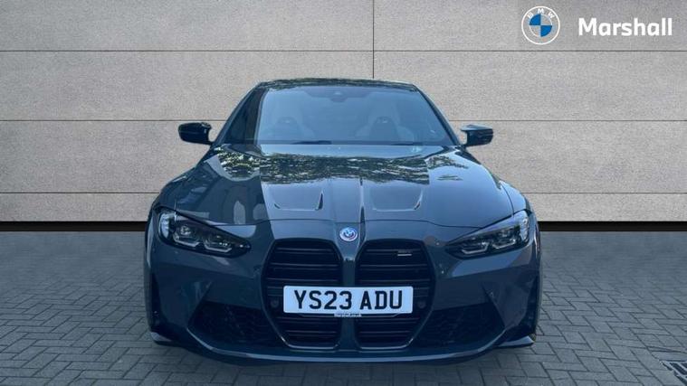 Active guard plus, Automatic start/stop system, BMW ConnectedDrive online services, BMW iDrive controller on centre console, BMW legal emergency call, BMW Live Cockpit Professional sat nav system with 12.3" instrument display and high resolution control display, BMW Teleservices, Brake pad wear indicator warning light, Condition based service, Door/boot open warning light, Driving experience switch, Electric Power Steering (EPS) with Servotronic, Instrument cluster with extended contents, Lights on warning, M drive buttons, Oil sensor for level and grade, warning by check control system, Oil temperature gauge, On board computer, On board diagnostics, Optimum shift indicator, Outside temperature display, Park distance control, Pull away assistant, Run flat indicator, Service interval indicator, Shifting point display, Speed limiter, Variable sport steering, Adaptive M Sport suspension, Double joint spring strut front axle, M Drive Professional including track mode, laptimer, traction control & Drift analyser, M Sport differential, M steptronic sport transmission with drivelogic, Safety battery terminal clamp, 8 programmable favourite buttons, Auxiliary point for auxiliary devices, BMW professional radio/CD/MP3, DAB Digital radio, Harman/Kardon loudspeaker system, Acoustic laminated side glass, Auto dimming driver's door mirror, Auto dimming rear view mirror, Automatic headlights + automatic windscreen wipers, Black chrome exhaust tailpipes, Black model designation badges, BMW high gloss shadow line with extended contents, BMW Individual shadowline lights, Body colour bumpers, Body colour door handles, Carbon fibre reinforced plastic (CFRP) roof, Day time running light, Door mirror integrated indicators, Door sill finishers with aluminium inserts, Dynamic brake lights, Electric adjustable heated door mirrors, Electric folding door mirrors, Follow me home headlights, Front and rear bumper system, Front electric windows with open and close fingertip control, anti trap facility and comfort closing, Headlight beam throw control, Heat protection, sun protection glazing, Heated washer jets, High beam assistant, High gloss black frameless kidney grille with M badge, LED number plate light, LED tail lights with 3D L-shaped LED light design, M designation, Mirror glass aspheric on driver's side, convex on passenger side, Rain sensor, Rear boot, Rear fog lights, Rear reflectors, Reversing light, Shark fin roof aerial, Third brake light, Visible VIN plate, Welcome lighting, 2 cupholders in front centre console, 2 cupholders in rear armrest, 2 rear head restraints, 2 x 12 V Power sockets (luggage compartment and front centre console), 2 x USB Type C ports for charging and data transmission in front centre console, 40:20:40 split folding rear 2 seat bench with loading system, Ambient lighting, Anthracite headlining, Battery in luggage compartment, Carbon fibre centre console incl. cover for cupholders and storage compartment, Carbon fibre decorative steering wheel finishers, Carbon fibre shift paddles, Carbon fibre strip in instrument panel on front passenger side, Centre console armrest with storage compartment, Compartment in front of cupholder, Driver/passenger sunvisors with illuminated vanity mirrors + covers, Electric front seats + driver memory, English handbook, Floor mats in velour, Footwell lighting, Front and rear door exit lights, Front door storage bins with bottle holder, Front interior light, Front isofix attachment + airbag deactivation, Front seat backrest width adjustment, Front seats lumbar support, Front/rear door armrests, Gearshift lever with embossed M badge, Heated front seats, Height adjustable front headrests, Interior mirror lighting, Isofix on 2nd row outer seats, Lockable/illuminated glovebox, Luggage compartment lighting, Multifunction steering wheel, Rake/reach adjustable steering wheel, Single front passenger seat, Storage compartment in rear doors, Storage tray and compartment with cover in centre console, Three zone automatic air conditioning, Toolkit located in luggage compartment, Wireless charging tray, Additional storage compartment pack - M4, Connected package professional - M4, High gloss shadowline exterior trim pack - M4, 4 x 3 point seatbelts, ABS/EBD, Automatic Stability Control (ASC), Brake energy regeneration, Brake fade compensation, Compound structure brake discs, Cornering brake control (CBC), Crash sensor, Curtain airbags, Driver/Front Passenger airbags, Dry braking, Dynamic brake control, Dynamic Stability Control with M Dynamic mode, Dynamic Traction Control - DTC, Electromechanical parking brake, Electronic differential lock control (EDLC), Front and rear head airbags, Front seat side impact airbags, Front seatbelt pretensioners + load limiters, Hill start assist, M Sport seat belts, Seat occupancy detection for driver and passenger side, Seatbelt warning, Side impact protection, Two tone horn, Tyre pressure sensor, Warning triangle and first aid kit, Centre lock switch, Closing system with central locking, Digital key, Electronic immobiliser, Remote central locking, Thatcham cat 1 remote alarm, Vehicle Key with 4 buttons including the integrated key, Galvanic finish to control surrounds, High gloss black interior trim, Tyre repair kit,