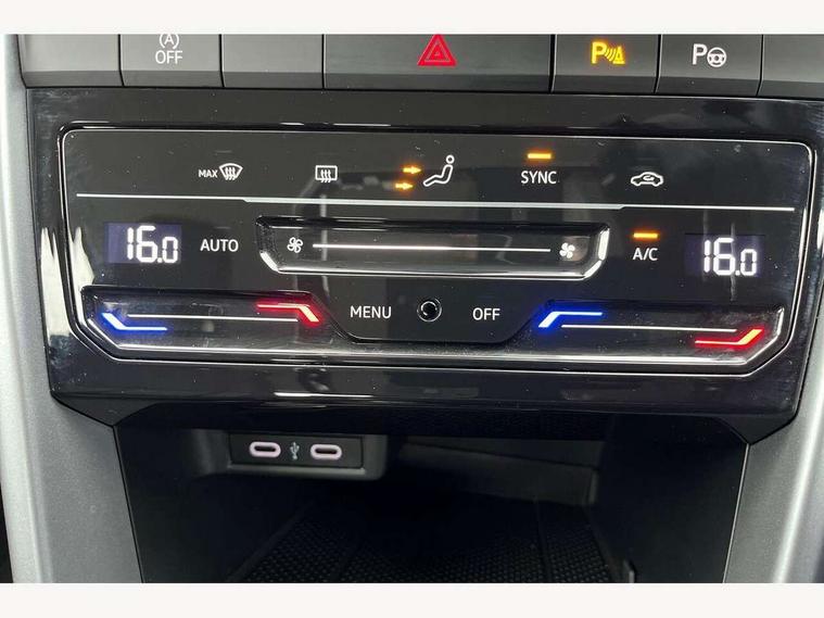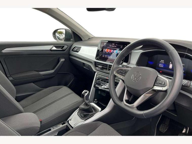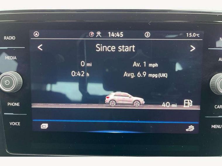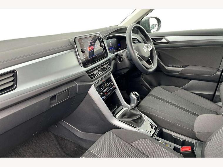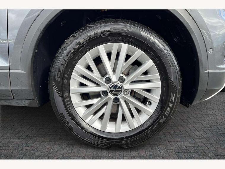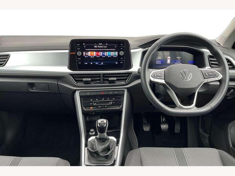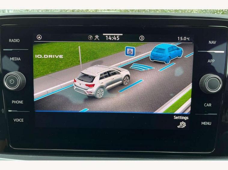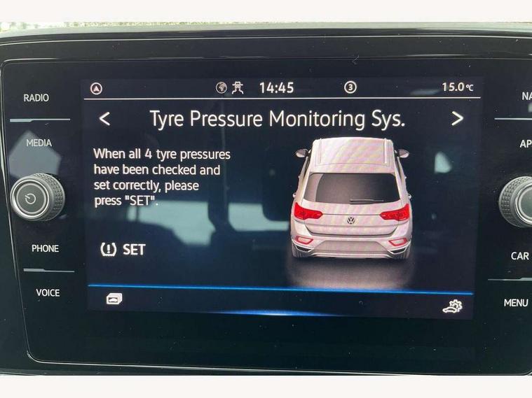 Bluetooth mobile phone interface, Driver alert system with fatigue detection, Driver tips and journey analysis, Emergency call service, Lane keeping system Lane Assist, Modified key software - reduce switch off time for key status change to Long no motion, Online services, Park assist including front and rear parking sensors, Power assisted speed sensitive steering, Service interval indicator, Tailgate/trunk lid release from outside, Think blue trainer driver tips and journey analysis, Warning sound and light for front seatbelts unfastened, Wireless app connect, Battery regeneration during braking, Front shock absorption, Rear shock absorption chassis with increased ride height, Start/stop function with battery regeneration, DAB Digital radio, Diversity antenna for FM reception, Front and rear 6 speakers, Music playback - MP3, WMA and AAC files, Premium USB cable in choice of either Apple or Android smartphone compatibility, SD card slot, Simultaneous pairing of 2 compatible mobile devices, Title and cover art display, We Connect and We Connect Plus functionality, 3rd brake light, Auto dimming interior rear view mirror, Automatic hazard lights activation under emergency braking, Automatic headlight control with LED separate daytime running lights with coming/leaving home function, Black roof rails, Body coloured bumpers and radiator grille with chrome trim and front fog lamps with chrome bezel, Body coloured exterior mirror housings and door handles, Extended roof spoiler, Exterior mirrors aspherical on driver side, convex on front passenger side, External USB type C socket and charging sockets, Front windscreen wiper with intermittent wipe and 4 position delay, Heated rear window, LED Headlights, LED rear combination lamps, LED rear number plate lights, LED tail lamp rear comination lamps, Power windows with comfort operation and circuit breaker, Rain sensor, Rear exhaust tailpipe, Rear fog light on one side and reversing lights on both sides, Rear side wing doors, Rear wash/wipe with intermittent wipe setting, Remote electrically foldable door mirrors, puddle lights and reverse activated passenger's door mirror, 12V power socket in centre console, 3 rear head restraints, 3 seat bench in 2nd row, 4 load lashing points in luggage compartment, Air care climatronic air conditoning system with active combination filter and 2-zone temperature control, Ambient lighting with mirror logo projection, Cloth upholstery, Door and side trim panel in cloth, Drawer under drivers seat, Driver/front passenger seat height adjustment, Front centre armrest, Front comfort sports seats, Front cupholders x 2, Front reading light, Instrument lighting, white adjustable panel illumination, Interior light delay, Isofix child seat preparation, Leather gearshift handle, Load-through provision with cup holder when folded down ('Unsplit rear seat bench, split folding backrest, with centre armrest), Luggage compartment lighting, Lumbar support for driver's and front passengers seat, Non-folding front passenger seat backrest, Single front passenger seat, Storage compartment in left and right luggage area, Storage compartment in rear doors, Storage compartments in driver and front passenger doors, Sunvisors with illuminated vanity mirrors, Variable boot floor, height adjustable and removable, Driver assistance pack without proactive passenger protection - T-Roc, 3 point height adj front seatbelts + pretensioners, 3 point seatbelts in outer rear with ECE label, ABS, Child locks on rear doors, Driver and front passenger airbag with front passenger airbag deactivation, Driver and front passenger safety-optimised head restraints, Drivers seatbelt reminder, Electronic parking brake, Electronic Stability Control (ESC) inc EDL (Electronic Differential Lock) and ASR (Traction Control), Front and rear passengers curtain airbag system including front side airbags, Front assist with city emergency braking and pedestrian monitoring, Front disc brakes, Front seat side impact airbags, Hill start assist, Predictive pedestrian protection, Rear disc brakes, Single tone horn, Tyre pressure loss indicator, Volkswagen roadside assistance, Alarm with interior protection, Anti-theft alarm system with interior monitoring, backup horn, and towing protection, Remote central locking with SAFELOCK, radio remote control with 2 remote control folding keys, Pewter matt decorative inserts for intrument panel, centre console and door panels at the front, Trims for alloy wheels,