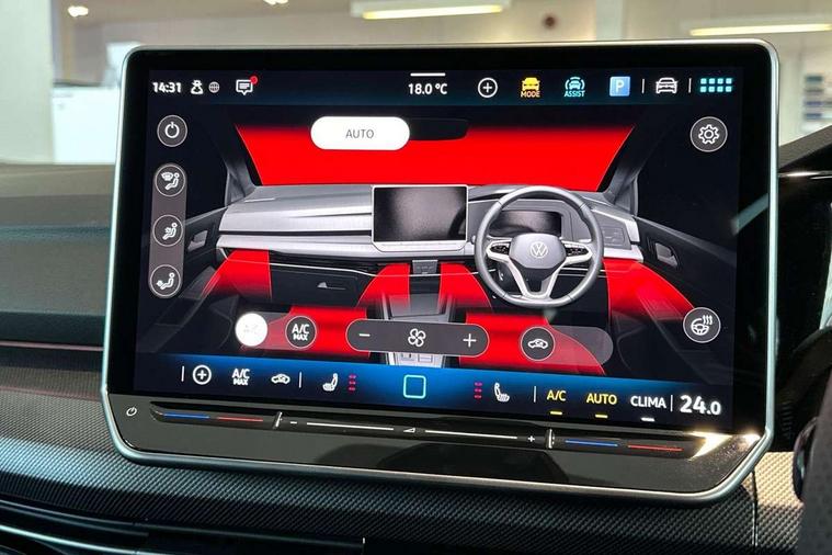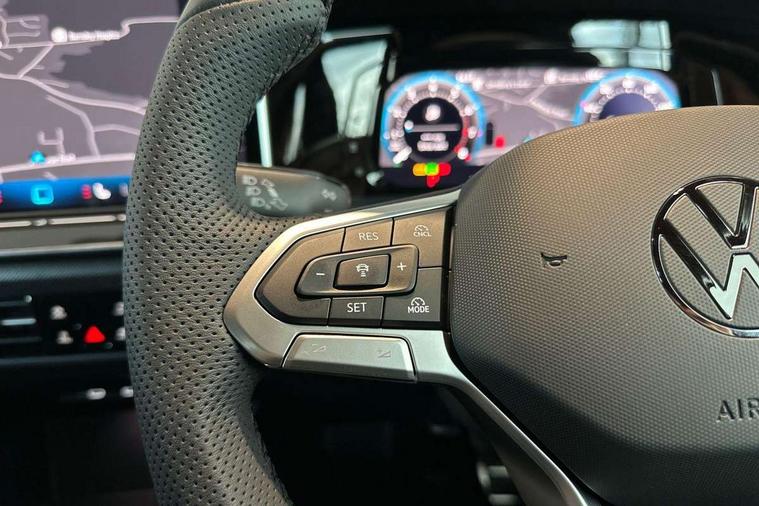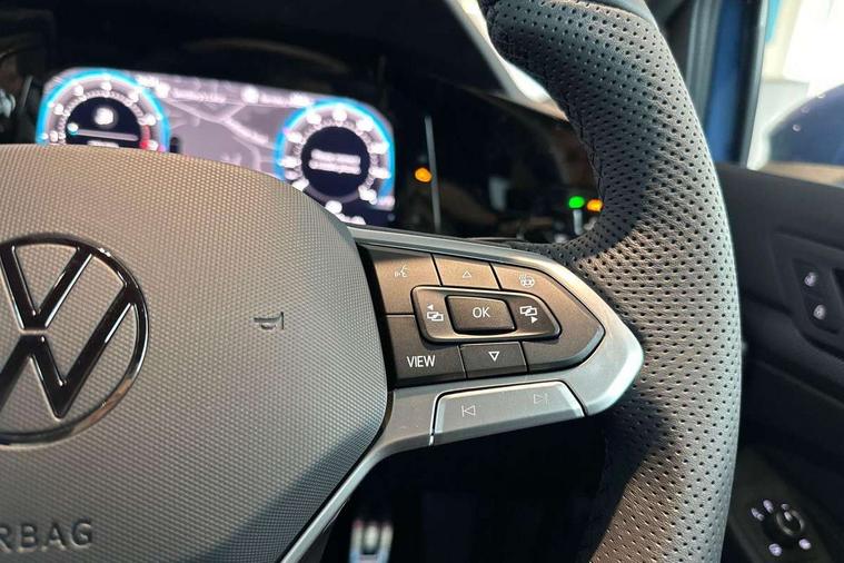 Activated carbon canister, Adaptive cruise control (ACC), Advanced driver attention and drowsiness monitor, Dynamic road sign display, Dynamic steering, E-Sim card for online connectivity, eCall emergency call system, Multi-color Digital cockpit pro, selection of different info profile possible, Multifunction front facing camera for distance control, Navigation system, Oncoming vehicle braking when turning including swerve support, Preparation for light assist system, Speed limiter, Speedo, rev counter, electronic odometer, trip, service interval display, exterior temperature and fuel gauge, Traffic jam assist, Voice enhancer and voice control, Warning signal and warning light for front and rear seatbelts not fastened, We connect plus preparation, We connect preparation, Wireless app connect, Hybrid propulsion system, Petrol Particulate Filter, Start-stop system with battery regeneration (recuperation - energy recovery during braking), XDS electronic differential lock for improved traction and handling, 2 USB C ports in front, 2 USB charging sockets on the centre console in the rear charging capacity upto 45W, Comfort telephony + wireless charging, without wireless aerial connection, Digital radio reception (DAB), Diversity antenna for FM reception, Gaming platform via car app, Infotainment system with 12.9" display, Mobile phone interface with inductive charging feature, 3rd brake light, Auto headlights, Automatic headlamp activation with Coming home and Leaving home feature, Body colored bumpers in R-Line style, Body colour door handles, Exterior ambient lighting with illuminated door handles, Exterior mirrors convex on the left and aspherical on the right, Front and rear electric windows, Heat insulating windshield made of laminated glass, LED daytime running lights, Rear exhaust tailpipe, Rear fog light on one side and reversing lights on both sides, Rear side wing doors, Rear windscreen washer and wiper with interval delay, Remote electrically foldable door mirrors, puddle lights and reverse activated passenger's door mirror, Welcome light with surround lighting, 12V socket in front centre console, 12V socket in luggage compartment, 3 rear head restraints, 3 seat bench in 2nd row, Ambient lighting with 30 colour incl. LED light unit in front footwell with selectable light colour, Brushed stainless steel pedals, Carpet mats, front and rear, Chrome plated radiator grille inserts, air vent surrounds and light switch surrounds, Door insert, side trim panel and arm support in leatherette, Front centre armrest, Front seat lumbar support adjuster, Integrated front head restraints, ISOFIX anchors for child seats on outer rear bench seats and on front passanger seat compatible for i-Size, Luggage compartment lighting, Manual height adjustable front seats, Plastic gear knob, Premium sports seats in front, Rear cupholder and loadthough, Sardegna cloth upholstery with front and outer rear seats Art Velour inner sides of bolsters, Single front passenger seat, Soul black instrument panel, Split folding backrest with centre armrest and unsplit rear seat bench, Storm grey roof lining, Sun visors with illuminated vanity mirrors, 3 point height adj front seatbelts + pretensioners, 3 rear three point seatbelts, ABS, Autonomous emergency braking front assist with pedestrian and cyclist monitoring, Child locks on rear doors, Driver and front passenger airbag with front passenger airbag deactivation, Electronic parking brake with auto hold, ESC (Electronic Stability Control), Extended pedestrian protection measures, Hill start assist, Rear disc brakes, Two tone horn, Tyre pressure loss indicator, Volkswagen roadside assistance, Anti theft wheel bolts, Preparation for alcohol interlock, Decorative inserts carbon grey for dashboard and front door trim panels,