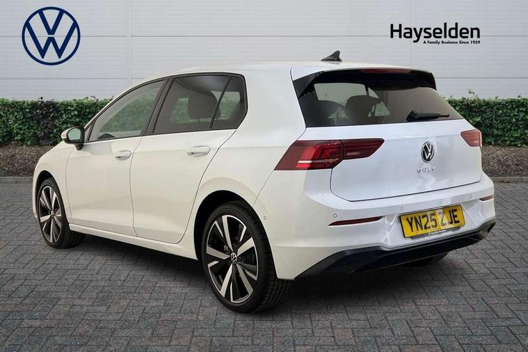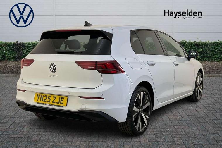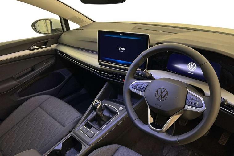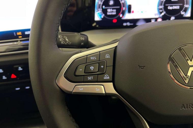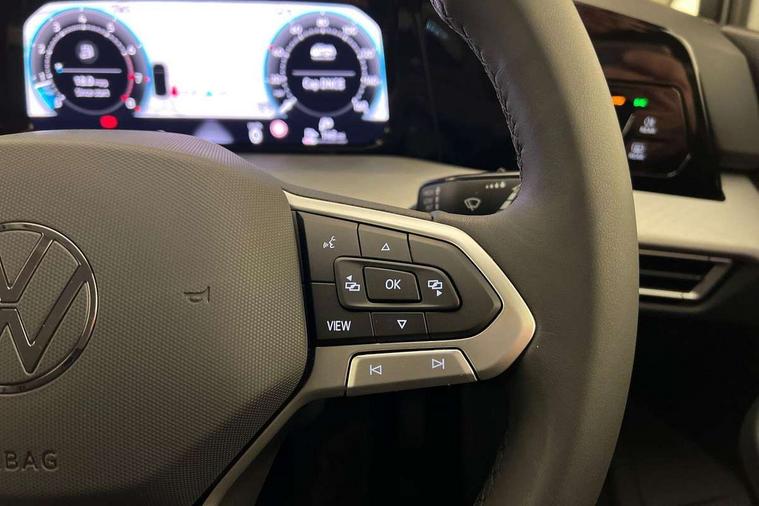 Activated carbon canister, Adaptive cruise control (ACC), Advanced driver attention and drowsiness monitor, Dynamic road sign display, E-Sim card for online connectivity, eCall emergency call system, Multi-color Digital cockpit pro, selection of different info profile possible, Multifunction front facing camera for distance control, Navigation system, Oncoming vehicle braking when turning including swerve support, Preparation for light assist system, Speed limiter, Speedo, rev counter, electronic odometer, trip, service interval display, exterior temperature and fuel gauge, Voice enhancer and voice control, Warning signal and warning light for front and rear seatbelts not fastened, We connect plus preparation, We connect preparation, Wireless app connect, Petrol Particulate Filter, Start-stop system with battery regeneration (recuperation - energy recovery during braking), XDS electronic differential lock for improved traction and handling, 2 USB C ports in front, 2 USB charging sockets on the centre console in the rear charging capacity upto 45W, Comfort telephony + wireless charging, without wireless aerial connection, Digital radio reception (DAB), Diversity antenna for FM reception, Gaming platform via car app, Infotainment system with 12.9" display, Mobile phone interface with inductive charging feature, 3rd brake light, Auto dimming rear view mirror, Auto headlights, Automatic headlamp activation with Coming home and Leaving home feature, Body colour door handles, Body colour door mirrors, Exterior ambient lighting with illuminated door handles, Exterior mirrors convex on the left and aspherical on the right, Front and rear electric windows, Heat insulating windshield made of laminated glass, LED daytime running lights, Rain sensor, Rear exhaust tailpipe, Rear fog light on one side and reversing lights on both sides, Rear side wing doors, Rear tinted glass 65% light absorbing from B pillar backwards, Rear windscreen washer and wiper with interval delay, Remote electrically foldable door mirrors, puddle lights and reverse activated passenger's door mirror, Standard bumpers, Welcome light with surround lighting, 12V socket in front centre console, 12V socket in luggage compartment, 3 rear head restraints, 3 seat bench in 2nd row, Chrome plated radiator grille inserts, air vent surrounds and light switch surrounds, Front centre armrest, Front head restraints, ISOFIX anchors for child seats on outer rear bench seats and on front passanger seat compatible for i-Size, Leather gearshift handle, Luggage compartment lighting, Rear cupholder and loadthough, Single front passenger seat, Soul black instrument panel, Split folding backrest with centre armrest and unsplit rear seat bench, Standard pedal cluster, Storm grey roof lining, Sun visors with illuminated vanity mirrors, Parking and comfort pack - Golf Estate/Hatchback, 3 point height adj front seatbelts + pretensioners, 3 rear three point seatbelts, ABS, Autonomous emergency braking front assist with pedestrian and cyclist monitoring, Child locks on rear doors, Driver and front passenger airbag with front passenger airbag deactivation, Electronic parking brake with auto hold, ESC (Electronic Stability Control), Extended pedestrian protection measures, Rear disc brakes, Two tone horn, Tyre pressure loss indicator, Volkswagen roadside assistance, Alarm with interior protection, Anti theft wheel bolts, Keyless start with SAFE lock, Preparation for alcohol interlock, Nature cross brushed decorative inserts for dashboard and front door panels,