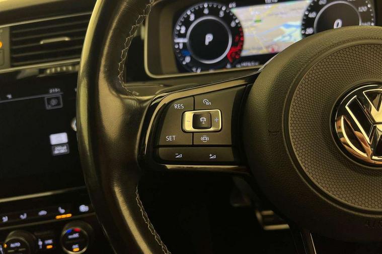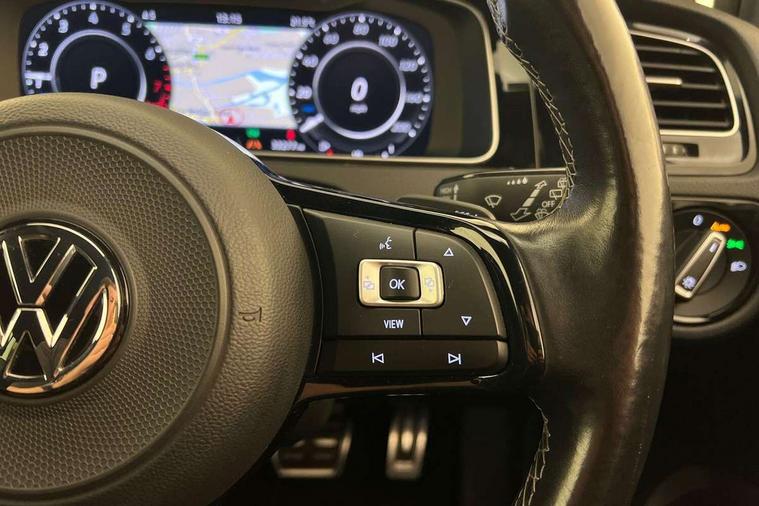 'Lights On' Reminder warning buzzer, 8" colour touch screen, ACC - Adaptive cruise control with front assist, forward collision warning, distance monitoring, city emergency brake and speed limiter, Bluetooth telephone and audio connection for compatible devices, Brake pad wear indicator warning light, Driver alert system, Driving Mode Selection with four preset modes - Eco, normal, sport or individual modes, Multifunction computer with visual gear change recommendation for fuel consumption, Progressive power assisted steering, Rear view camera, Speedo, rev counter, electronic odometer, trip, service interval display, exterior temperature and fuel gauge, Think blue trainer driver tips and journey analysis, Ultrasonic front and rear optical and audible parking sensors, Unique R instrument cluster, Warning buzzer and light for front seatbelts unfastened, Anti-tramp function, Battery regeneration during braking, Lowered sports suspension, XDS electronic differential lock, DAB Digital radio receiver, Driver Personalisation profile selection, MDI multi device interface, MP3/WMA compatability, Premium USB cable in choice of either Apple or Android smartphone compatibility, SD card slot, SMS Functionality, Title and cover art display, USB charging socket, Volkswagen media control, Anthracite wheel arch protection, Automatic coming/leaving home lighting function, Black rear diffuser, Body colour door handles, Body colour front and rear bumpers, Body colour rear roof spoiler, Chrome trimmed front air intake surround, Dusk sensor + automatic driving lights, Electrically adjustable and heated door mirrors, Front and rear electric windows, Fully galvanised body, Heated rear windscreen, High level 3rd brake light incorporating LED Technology, LED daytime running lights, LED rear lights, LED rear number plate lights, Rain sensor and automatic dimming interior rear view mirror, Rear fog lamp, Rear tinted glass 65% light absorbing from B pillar backwards, Rear window aerial, Rear window wash/wipe with intermittent wipe, Reflectors in all doors, Twin exhaust tailpipes x2, Unique R badging, Unique R design key, Unique R radiator grille with matt chrome strip, Windscreen wipers/ intermittent wipe + 4 position delay, 12V socket in luggage compartment, 3 rear headrests, 3 spoke steering wheel, 4 load lashing points in luggage compartment, 60/40 split folding rear seat backrest and flat folding into boot floor, Ambient lighting in front door armrest, light strips below trim in front doors and reflectors in front and rear doors, Bag hook in luggage compartment x 2, Black decorative sleeve on gear handles, Black roof lining, Climate control - 2 zone electronic air conditioning with automatic air recirculation and allergy filter, Cooled glovebox, Cover for storage compartment in centre, Dust/pollen filter, Front + rear carpet mats, Front centre armrest with storage compartment and two rear air vents, Front footwell illumination, Front seat back storage pockets, Grab handles front x 2, rear x 2 with integrated coat hooks, Height and reach adjustable steering wheel, Illuminated door sills, Illuminated vanity mirrors, Instrument lighting white adjustable panel illumination, Interior light delay, Isofix preparation for 2 rear child seats, LED front and rear reading lights X 2, Load through provision with rear centre armrest and cupholders x2, Luggage compartment cover with stowable convenience opening, Luggage compartment lighting, Multifunction leather steering wheel with R Logo and leather trimmed gear knob including paddle shift, Overhead storage box, Stainless steel pedals in clutch, brake and accelerator, Storage box in luggage compartment, Storage compartment in roof console with cover, Storage compartments in front doors, Storage compartments in rear doors, Sun visors, Variable boot floor, height adjustable and removable, Convenience Pack - Golf, Mirror pack - Golf, Winter pack - Golf, 3 rear three point seatbelts, Airbags - Driver and rear passenger curtain, driver knee, front side impact, driver and passenger airbag with passenger deactivation switch, Anti-lock Braking System (ABS) with Hydraulic Brake Assist (HBA), Automatic post collision braking system, Child locks on rear doors, Driver/Passenger optimised head restraints, Electronic parking brake with auto hold, Electronic stability control (ESC) including Electronic differential lock (EDL) and ASR (Traction control) with deactivation via infotainment system, Front ventilated disc brakes and rear disc brakes, Pre crash preventive occupant protection, Predictive pedestrian protection, Three point height adjustable front seatbelts with tensioners, Tyre pressure loss indicator, Volkswagen roadside assistance, Alarm with interior protection and deactivation via infotainment system, Electronic engine immobiliser, Keyless entry with start/stop button on centre console, Carbon touch decorative inserts in dash and door panels, Chrome plated air vent surround, Chrome-plated light switch surround, Piano black decorative inserts in centre console, Full size wheel trims, Steel space saver spare wheel,
