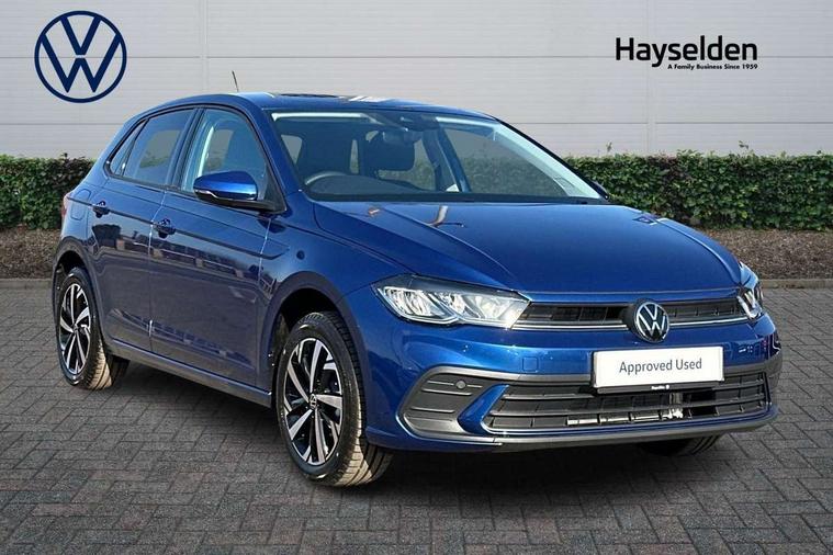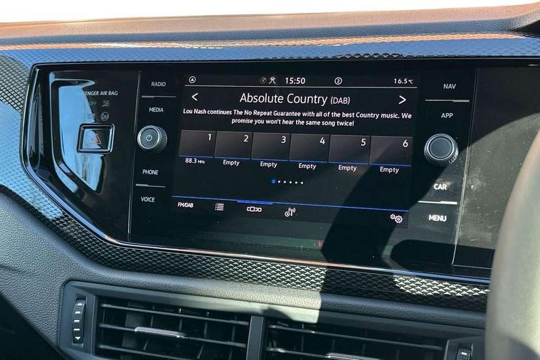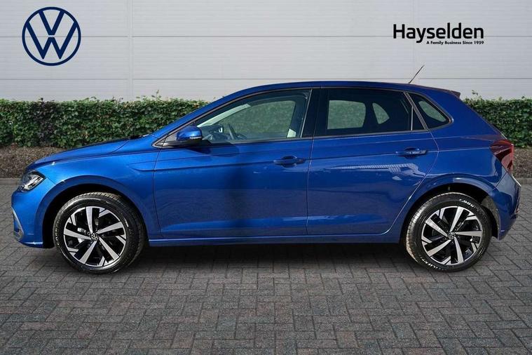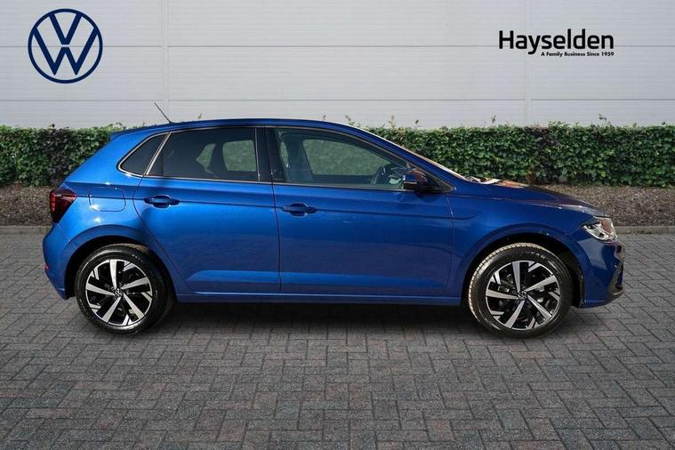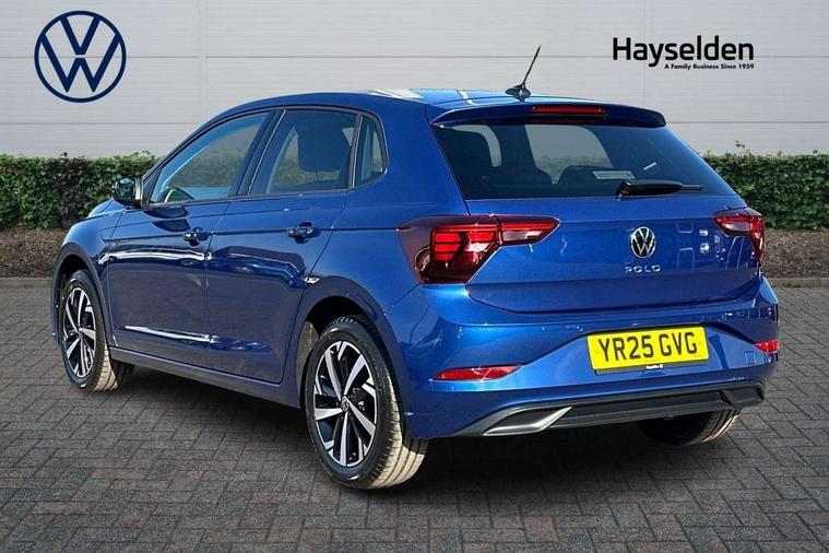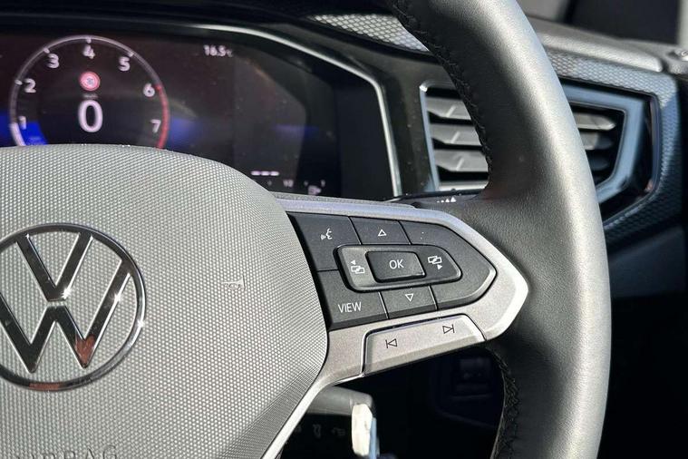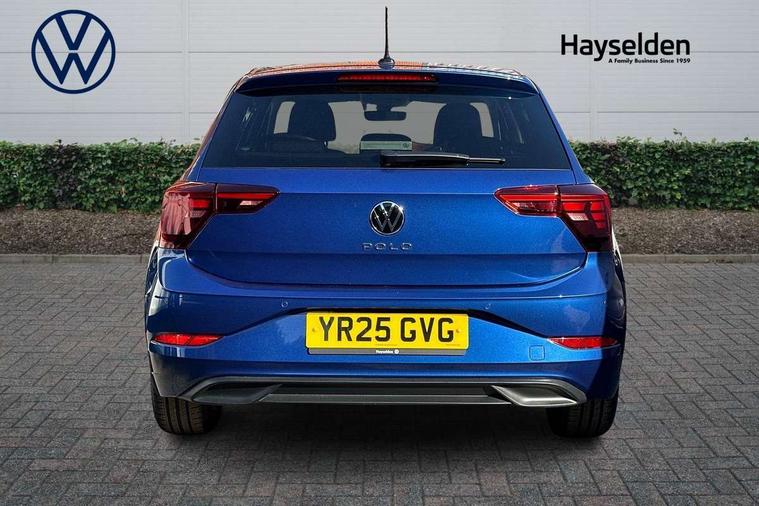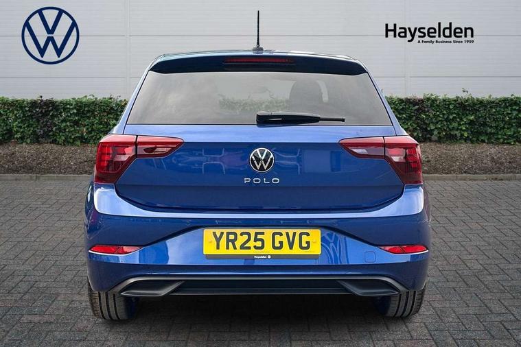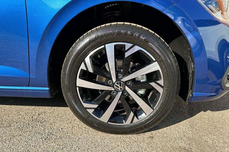 Adaptive cruise control without follow-to-stop and speed limiter, Advanced driver attention and drowsiness monitor, Bluetooth mobile phone interface, Dynamic road sign display, Emergency call service, Multifunction front facing camera for distance control, Park distance control, Power assisted speed sensitive steering, Preparation for navigation system with media and internet package, Preparation for We connect and We connect plus, Rear view camera, Speedo and rev counter, electronic odometer, trip, service interval display and exterior temperature gauge, Standard rear axle, Travel Assist - Lane keeping system and traffic jam assist, Travel assist including emergency assist, Trip computer, Warning signal and warning light for front and rear seatbelts not fastened, Washer fluid level indicator, Wireless app connect, Front wheel drive, Rear shock absorpion, Start-stop system with battery regeneration (recuperation - energy recovery during braking), DAB Digital radio, Diversity antenna for FM reception, Front and rear 6 speakers, Automatic dimming interior rear view mirror, Automatic headlight control with LED separate daytime running lights with coming/leaving home function, Body colour bumpers with chrome inserts, Body colour door handles, Body colour door mirrors, Electric front windows, Engine badge deletion, Headlight range adjustment, Heat insulating and laminated safety glass windshield, LED Headlights, LED rear combination lamps, Power folding adjustable/heated exterior mirrors and front passenger exterior mirror lowering function, Rain sensor, Rear electric windows, Rear fog light, Rear side wing doors, Rear tinted glass from B-pillar backwards approx 65% tinted, Rear windscreen washer and wiper with interval delay, Third brake light, 12V power socket in centre console, 2 front and 2 rear reading lights with switch off delay and dimmer, 2 USB-C ports in the front, 2 USB-C charging sockets on the center console in the rear, 3 rear head restraints, 60/40 split folding rear seat and rear seat bench not split, Ceramique roof lining, Chrome plated radiator grille inserts, air vent surrounds and light switch surrounds, Door and side trim panel, Driver and front passenger seat height adjustment, Driver/passenger sunvisors with illuminated vanity mirrors, Front centre armrest, Front seat backrest storage pockets, Front standard seats, Handbrake lever handle in leather, Hartley/Thomas cloth upholstery, Headliner in recycled material, Isofix child seat preparation easy-fit (for two outer rear seats, and front passenger seat) compatible with I-size, Leather trimmed gear knob, Luggage compartment cover, Luggage compartment lighting, Removable luggage compartment floor, Single front passenger seat, Standard climatic zones, Standard pedal cluster, Three spoke leather wrapped multifunction steering wheel, Light and vision pack - Polo, 3 point height adj front seatbelts + pretensioners, 3 point seat belt for centre rear seat, 3 point seatbelts, outer rear with ECE lable, ABS, Driver and front passenger airbag with front passenger airbag deactivation, Drivers and front passengers safety optimised head restraints, ESC (Electronic stability control) + EDL (Electronic Differntial lock) and ASR (Traction control), Extended and predictive pedestrian/ cyclist protection, Front assist with autonomous emergency braking (for Adaptive Cruise Control ACC up to 130 mph), Front curtain and side airbags with center airbag, Front disc brakes, Hill hold control, Manual child lock in rear doors, Rear drum brakes, Single tone horn, Tyre pressure loss indicator, Alarm with interior protection, Anti-theft alarm system with interior monitoring, backup horn, and towing protection, Anti-theft wheel bolts, Electronic engine immobiliser, Lava stone black gloss/matt decorative inserts in dash and front door panels, 16" Torsby alloy wheels, Low rolling resistance tyres,