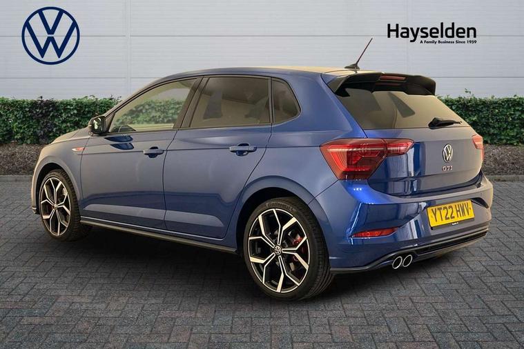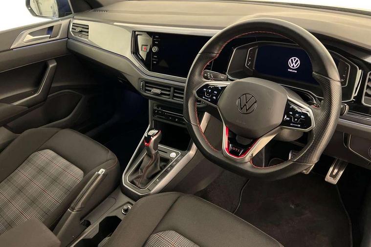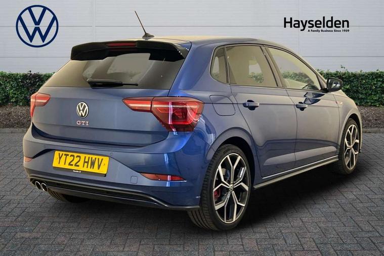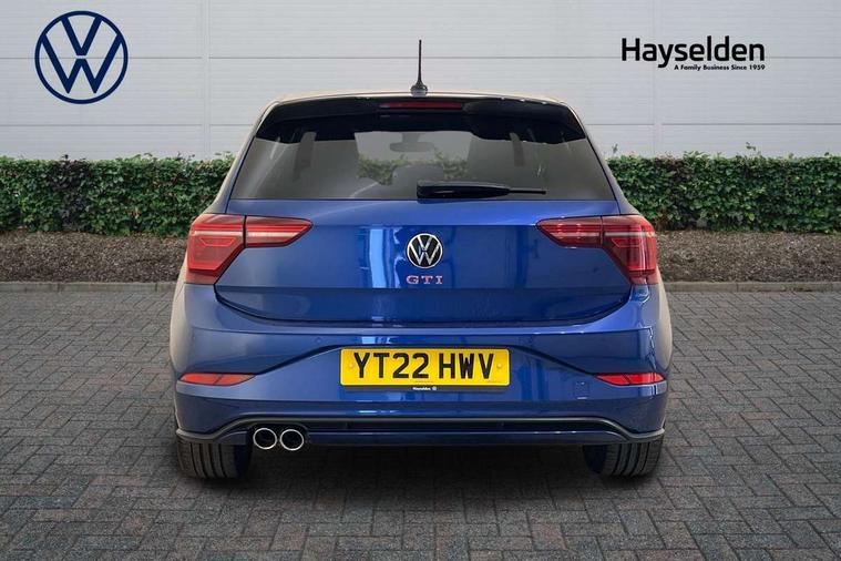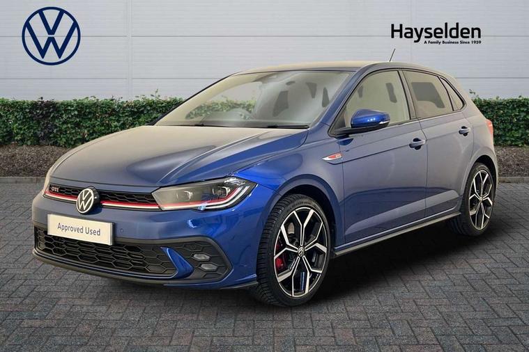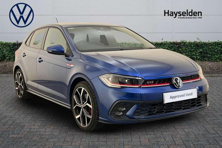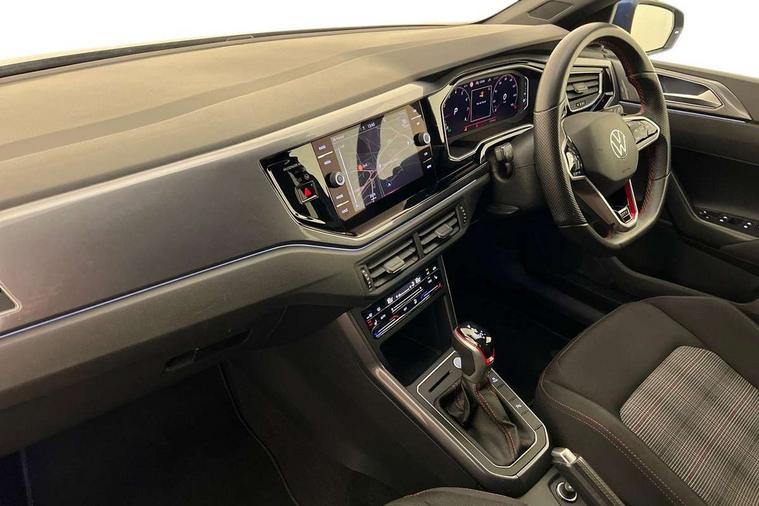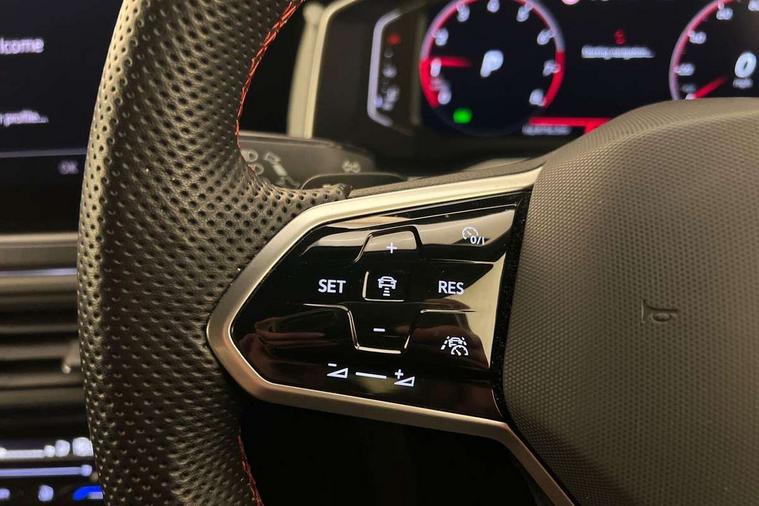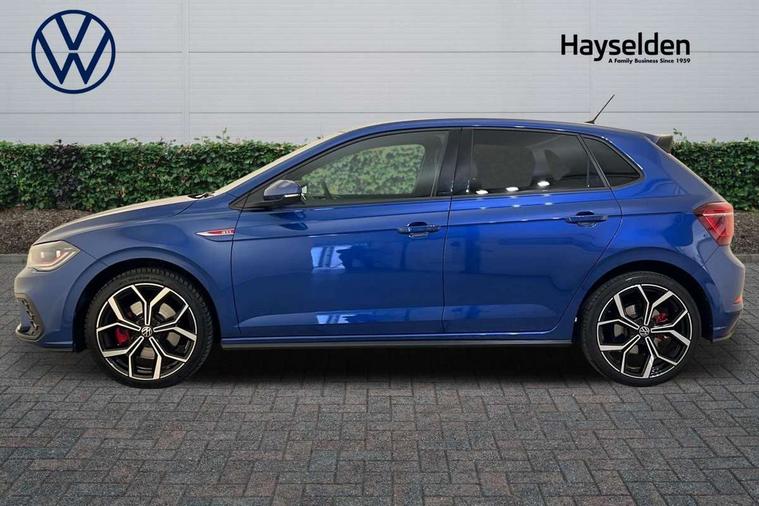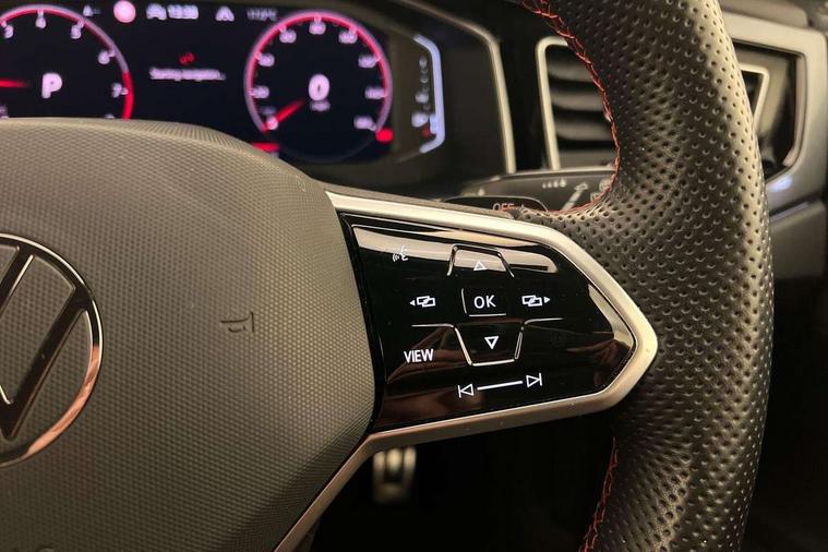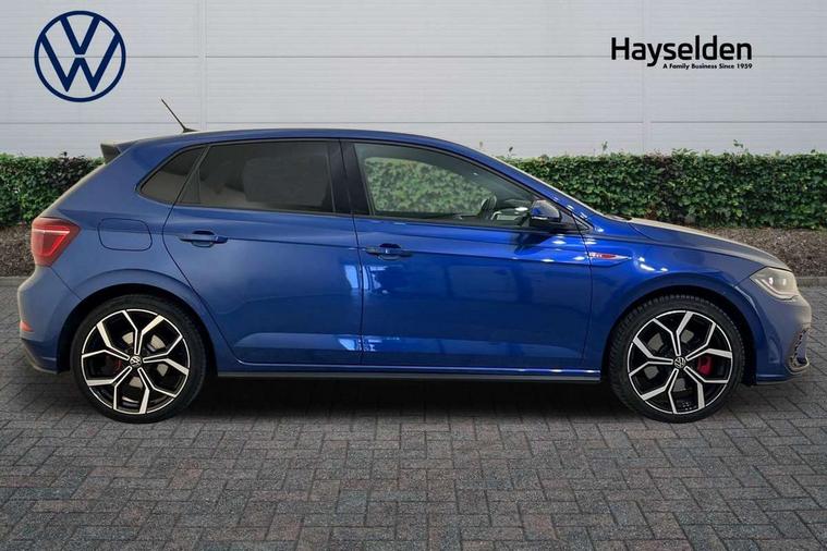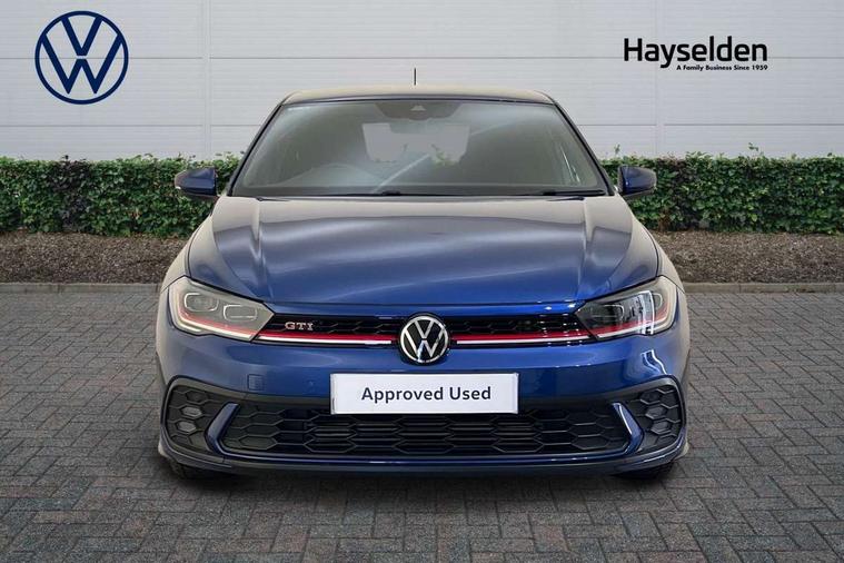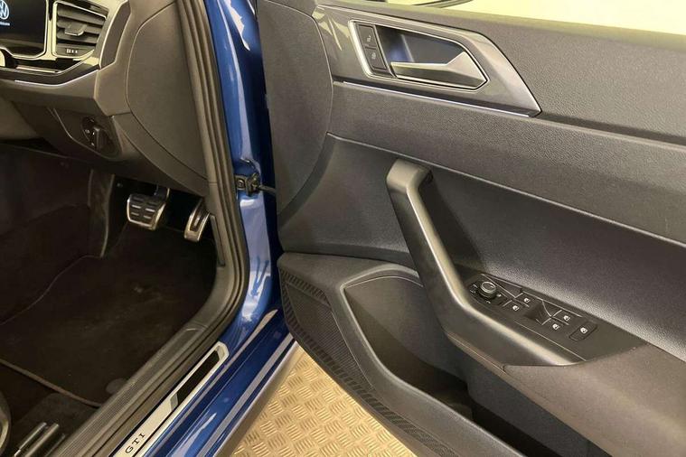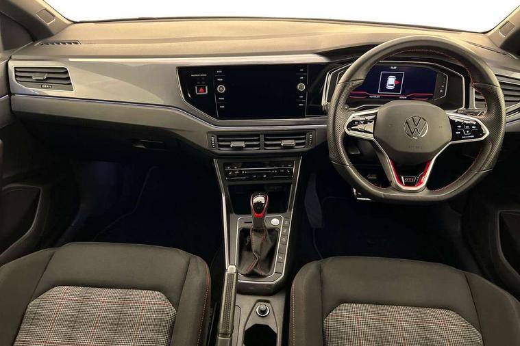 Adaptive cruise control with follow-to-stop and speed limiter, Bluetooth mobile phone interface, Digital Cockpit Pro with 10.25" Display, Driver alert system, Dynamic road sign display, Eco mode, Emergency call service, Power assisted speed sensitive steering, Preparation for We connect and We connect plus, Speedo and rev counter, electronic odometer, trip, service interval display and fuel gauge, Travel Assist - Lane keeping system and traffic jam assist, Travel assist including emergency assist, Trip computer, Warning signal and warning light for front and rear seatbelts not fastened, Washer fluid level indicator, Wireless app connect, Adaptive chassis control, Front wheel drive, Heavy duty rear axle, Rear shock absorpion sports version, Sports select suspension lowered by 15mm, Start-stop system with battery regeneration (recuperation - energy recovery during braking), DAB Digital radio, Diversity antenna for FM reception, Front and rear 6 speakers, Body colour bumpers, Body colour door handles, Electric front windows, Front scuff plates in aluminium with GTI logo, Heat insulating darkened glass in side and rear windows, Heat insulating glass windscreen, Power folding adjustable/heated exterior mirrors and front passenger exterior mirror lowering function, Rear electric windows, Rear fog light, Rear side wing doors, Rear windscreen washer and wiper with interval delay, Sport bumpers with air intakes with honeycomb structure, Third brake light, Twin chrome exhaust tailpipes, 12V power socket in centre console, 2 USB-C ports in the front, 2 USB-C charging sockets on the center console in the rear, 3 rear head restraints, 60/40 split folding rear seat and rear seat bench not split, Air care climatronic air conditoning system with active combination filter and 2-zone temperature control, Black roof lining, Ceramique headliner, Chrome plated radiator grille inserts, air vent surrounds and light switch surrounds, Door and side trim panel, Driver and front passenger seat height adjustment, Driver/passenger sunvisors with illuminated vanity mirrors, Front + rear carpet mats, Front centre armrest, Front footwell illumination, Front seat backrest storage pockets, GTI sports gearshift knob in aluminium leather, Handbrake lever handle in leather, Isofix child seat preparation easy-fit (for two outer rear seats, and front passenger seat) compatible with I-size, LED interior light with switch off delay and dimmer, 2 reading lights front and rear, Luggage compartment cover, Luggage compartment floor, Luggage compartment lighting, Single front passenger seat, Stainless steel pedals, Standard pedal cluster, Three spoke leather wrapped multifunction sports steering wheel with shifting paddles, IQ LED matrix headlights pack - Polo, Light and sight pack - Polo GTI, Sports suspension pack - Polo, 3 point height adj front seatbelts + pretensioners, 3x3 point rear seatbelts, ABS, Driver and front passenger airbag with front passenger airbag deactivation, Drivers and front passengers safety optimised head restraints, ESC (Electronic stability control) + EDL (Electronic Differntial lock) and ASR (Traction control), Extended and predictive pedestrian/ cyclist protection, Front and rear disc brakes with red brake calipers, Front curtain and side airbags with center airbag, Hill hold control, Manual child lock in rear doors, Two tone horn, Tyre pressure loss indicator, Alarm with interior protection, Anti-theft alarm system with interior monitoring, backup horn, and towing protection, Anti-theft wheel bolts, Electronic engine immobiliser, Chrome applications on rotary light, mirror adjustment, window regulator switches, outlet with frame in black, Low rolling resistance tyres,