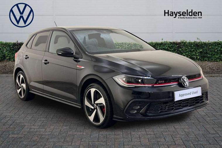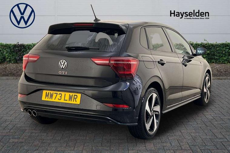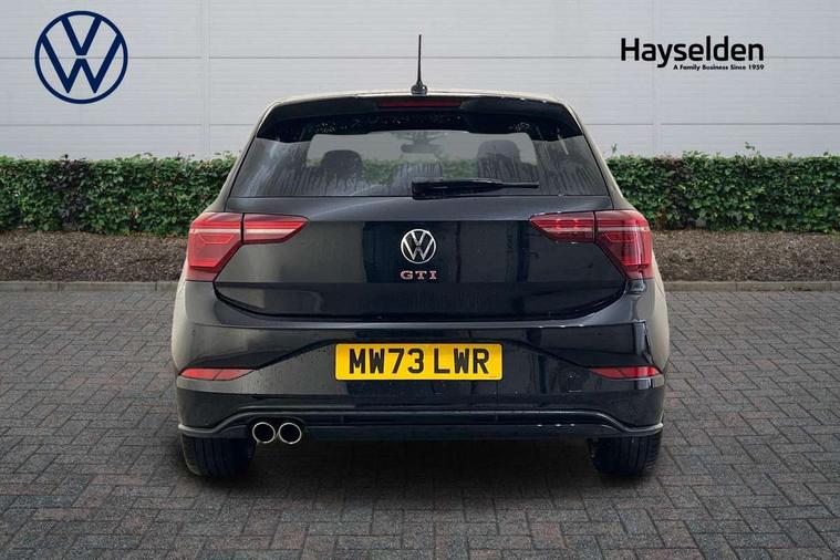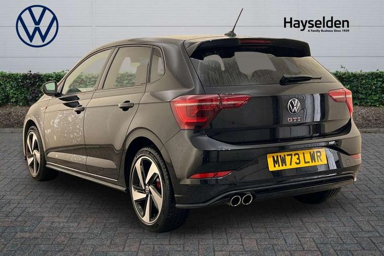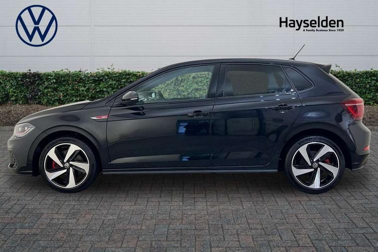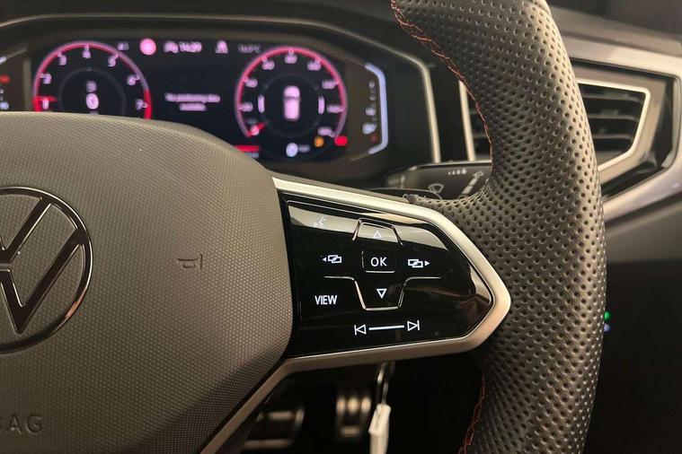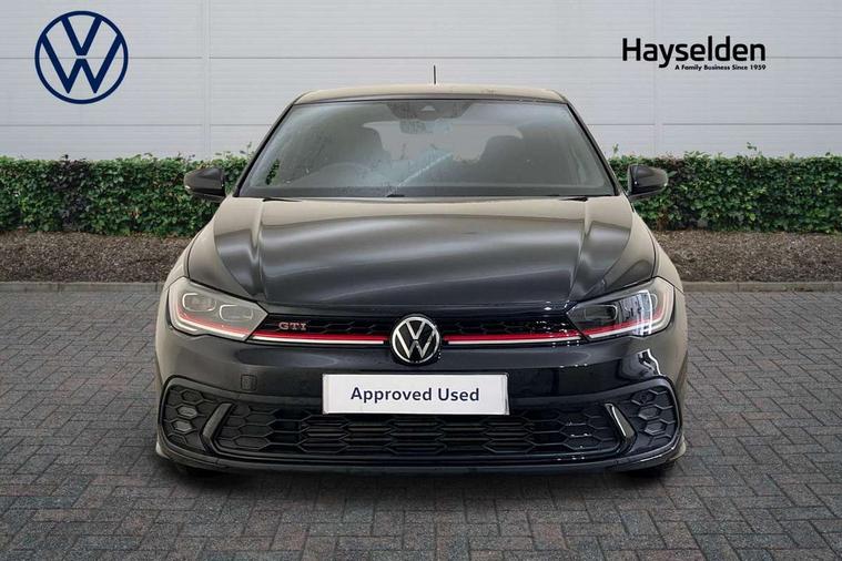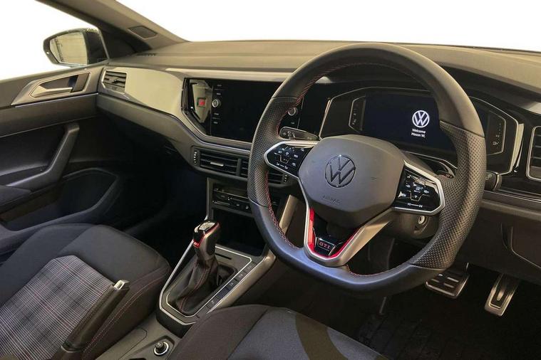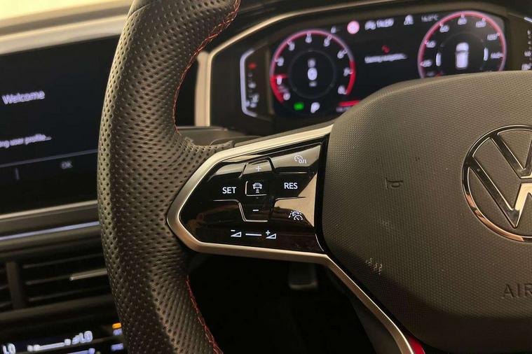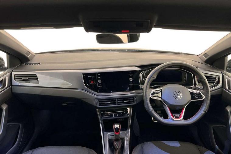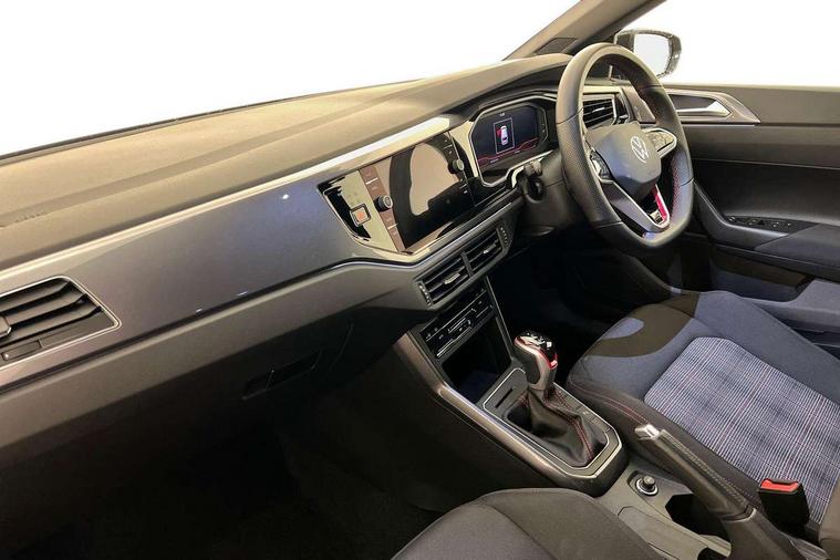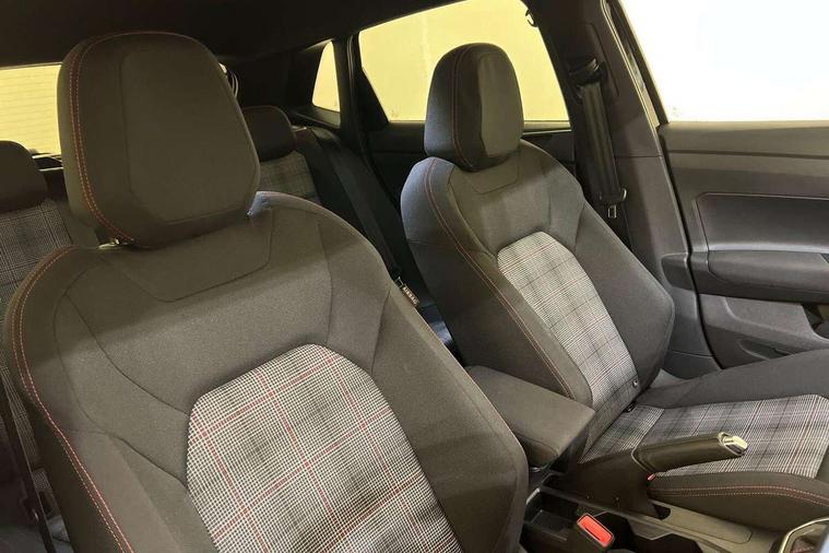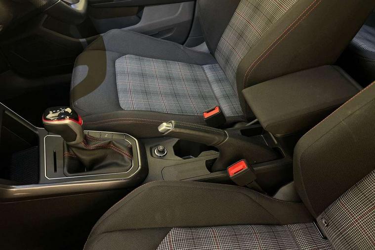 Adaptive cruise control with follow-to-stop and speed limiter, Bluetooth mobile phone interface, Digital Cockpit Pro with 10.25" Display, Driver alert system, Dynamic road sign display, Eco mode, Emergency call service, Power assisted speed sensitive steering, Preparation for We connect and We connect plus, Speedo and rev counter, electronic odometer, trip, service interval display and fuel gauge, Travel Assist - Lane keeping system and traffic jam assist, Travel assist including emergency assist, Trip computer, Warning signal and warning light for front and rear seatbelts not fastened, Washer fluid level indicator, Wireless app connect, Adaptive chassis control, Front wheel drive, Heavy duty rear axle, Rear shock absorpion sports version, Sports select suspension lowered by 15mm, Start-stop system with battery regeneration (recuperation - energy recovery during braking), DAB Digital radio, Diversity antenna for FM reception, Front and rear 6 speakers, Body colour bumpers, Body colour door handles, Electric front windows, Front scuff plates in aluminium with GTI logo, Heat insulating darkened glass in side and rear windows, Heat insulating glass windscreen, Power folding adjustable/heated exterior mirrors and front passenger exterior mirror lowering function, Rain sensor, Rear electric windows, Rear fog light, Rear side wing doors, Rear windscreen washer and wiper with interval delay, Sport bumpers with air intakes with honeycomb structure, Third brake light, Twin chrome exhaust tailpipes, 12V power socket in centre console, 2 USB-C ports in the front, 2 USB-C charging sockets on the center console in the rear, 3 rear head restraints, 60/40 split folding rear seat and rear seat bench not split, Air care climatronic air conditoning system with active combination filter and 2-zone temperature control, Black roof lining, Chrome plated radiator grille inserts, air vent surrounds and light switch surrounds, Door and side trim panel, Driver and front passenger seat height adjustment, Driver/passenger sunvisors with illuminated vanity mirrors, Front + rear carpet mats in recycled material, Front centre armrest, Front footwell illumination, Front seat backrest storage pockets, GTI sports gearshift knob in aluminium leather, Handbrake lever handle in leather, Headliner in recycled material, Isofix child seat preparation easy-fit (for two outer rear seats, and front passenger seat) compatible with I-size, LED interior light with switch off delay and dimmer, 2 reading lights front and rear, Luggage compartment cover, Luggage compartment floor, Luggage compartment lighting, Single front passenger seat, Stainless steel pedals, Standard pedal cluster, Three spoke leather wrapped multifunction sports steering wheel with shifting paddles, IQ LED matrix headlights pack - Polo, Light and sight pack - Polo GTI, 3 point height adj front seatbelts + pretensioners, 3x3 point rear seatbelts, ABS, Driver and front passenger airbag with front passenger airbag deactivation, Drivers and front passengers safety optimised head restraints, ESC (Electronic stability control) + EDL (Electronic Differntial lock) and ASR (Traction control), Extended and predictive pedestrian/ cyclist protection, Front and rear disc brakes with red brake calipers, Front curtain and side airbags with center airbag, Hill hold control, Manual child lock in rear doors, Two tone horn, Tyre pressure loss indicator, Alarm with interior protection, Anti-theft alarm system with interior monitoring, backup horn, and towing protection, Anti-theft wheel bolts, Electronic engine immobiliser, Chrome applications on rotary light, mirror adjustment, window regulator switches, outlet with frame in black, Low rolling resistance tyres,