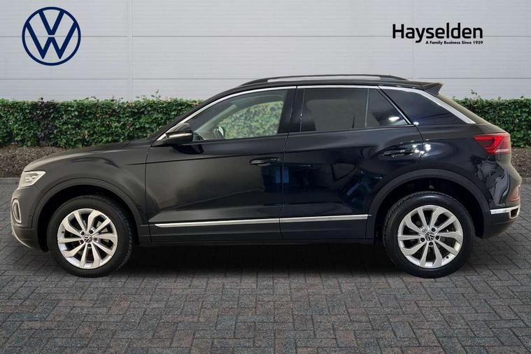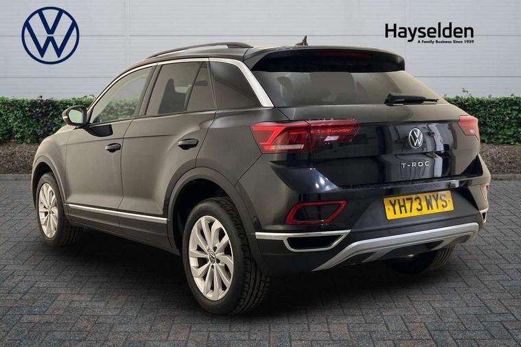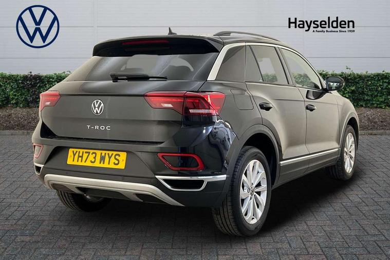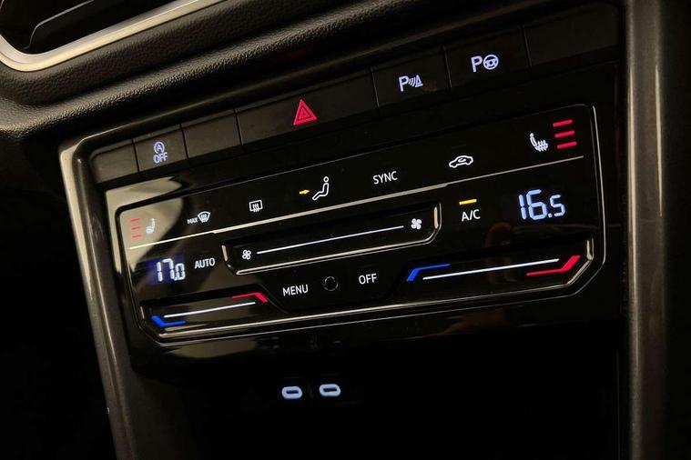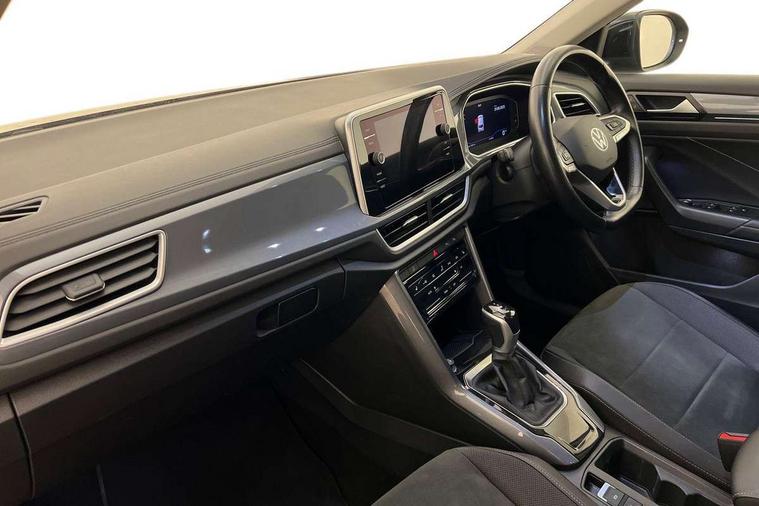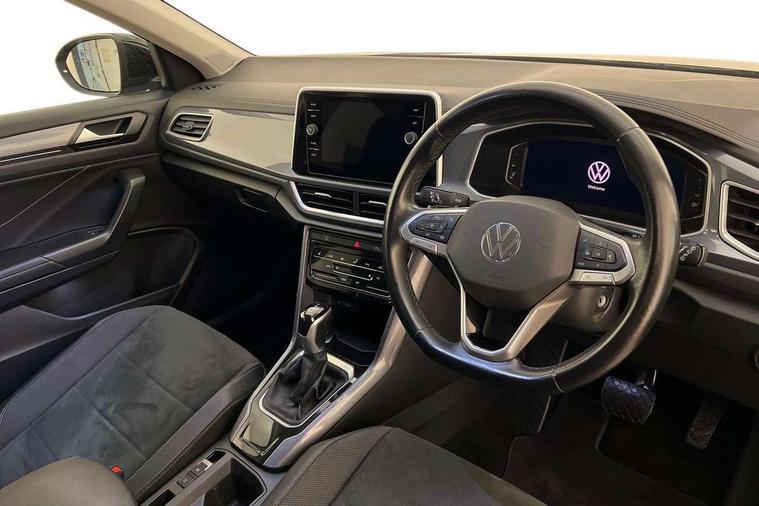 10.25" Digital cockpit pro, Bluetooth mobile phone interface, Driver alert system with fatigue detection, Driver tips and journey analysis, Emergency call service, Lane keeping system Lane Assist, Modified key software - reduce switch off time for key status change to Long no motion, Online services, Park assist including front and rear parking sensors, Service interval indicator, Tailgate/trunk lid release from outside, Think blue trainer driver tips and journey analysis, Warning sound and light for front seatbelts unfastened, Wireless app connect, Battery regeneration during braking, Start/stop function with battery regeneration, Diversity antenna for FM reception, Music playback - MP3, WMA and AAC files, Premium USB cable in choice of either Apple or Android smartphone compatibility, SD card slot, Simultaneous pairing of 2 compatible mobile devices, Title and cover art display, We Connect and We Connect Plus functionality, 3rd brake light, Auto dimming interior rear view mirror, Automatic hazard lights activation under emergency braking, Automatic headlight control with LED separate daytime running lights with coming/leaving home function, Body colour sports bumpers with silver metallic underbody fascia, Dynamic headlight range control with self adjusting whilst driving, Extended roof spoiler, Exterior mirrors aspherical on driver side, convex on front passenger side, External USB type C socket and charging sockets, Front windscreen wiper with intermittent wipe and 4 position delay, Heated rear window, LED rear combination lamps, LED rear number plate lights, LED tail lamp rear comination lamps, Light mode for poor weather, rain, fog or snow, Power windows with comfort operation and circuit breaker, Rain sensor, Rear exhaust tailpipe, Rear fog light on one side and reversing lights on both sides, Rear side wing doors, Rear wash/wipe with intermittent wipe setting, Remote electrically foldable door mirrors, puddle lights and reverse activated passenger's door mirror, 12V power socket in centre console, 3 rear head restraints, 3 seat bench in 2nd row, 4 load lashing points in luggage compartment, Air care climatronic air conditoning system with active combination filter and 2-zone temperature control, Chrome plated radiator grille inserts, air vent surrounds and light switch surrounds, Door and side trim panel with leatherette insert, Drawer under drivers seat, Front + rear carpet mats, Front centre armrest, Front comfort sports seats, Front cupholders x 2, Front footwell illumination, Instrument lighting, white adjustable panel illumination, Interior ambient lighting and surround lighting, Interior light delay, Isofix child seat preparation, Leather gearshift handle, LED interior light with switch off delay/dimmer and 2 front/rear LED reading lights, Load-through provision with cup holder when folded down ('Unsplit rear seat bench, split folding backrest, with centre armrest), Luggage compartment lighting, Non-folding front passenger seat backrest, Single front passenger seat, Storage compartment in left and right luggage area, Storage compartment in rear doors, Storage compartments in driver and front passenger doors, Sunvisors with illuminated vanity mirrors, Variable boot floor, height adjustable and removable, Driver assistance pack without proactive passenger protection - T-Roc, 3 point height adj front seatbelts + pretensioners, 3 point seatbelts in outer rear with ECE label, ABS, Child locks on rear doors, Driver and front passenger airbag with front passenger airbag deactivation, Driver and front passenger safety-optimised head restraints, Drivers seatbelt reminder, Electronic parking brake, Electronic Stability Control (ESC) inc EDL (Electronic Differential Lock) and ASR (Traction Control), Front and rear passengers curtain airbag system including front side airbags, Front assist with city emergency braking and pedestrian monitoring, Front seat side impact airbags, Predictive pedestrian protection, Rear disc brakes, Single tone horn, Tyre pressure loss indicator, Volkswagen roadside assistance, Anti-theft alarm system with interior monitoring, backup horn, and towing protection, Remote central locking with SAFELOCK, radio remote control with 2 remote control folding keys, Trims for alloy wheels,